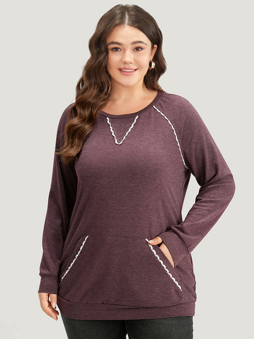 Plain Heather Guipure Lace Raglan Sleeve Pocket Sweatshirt