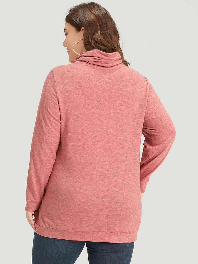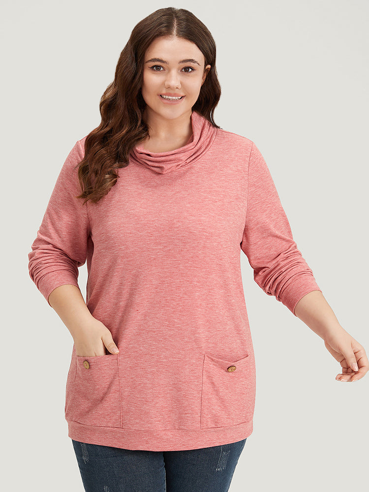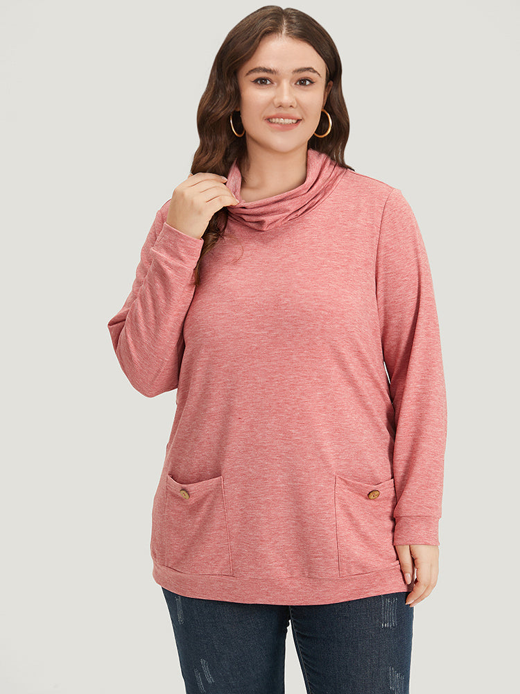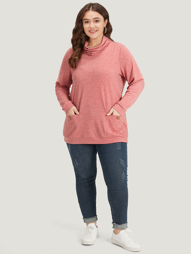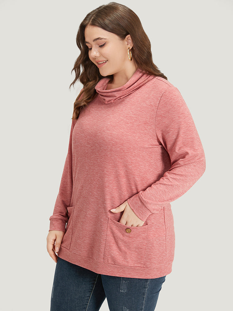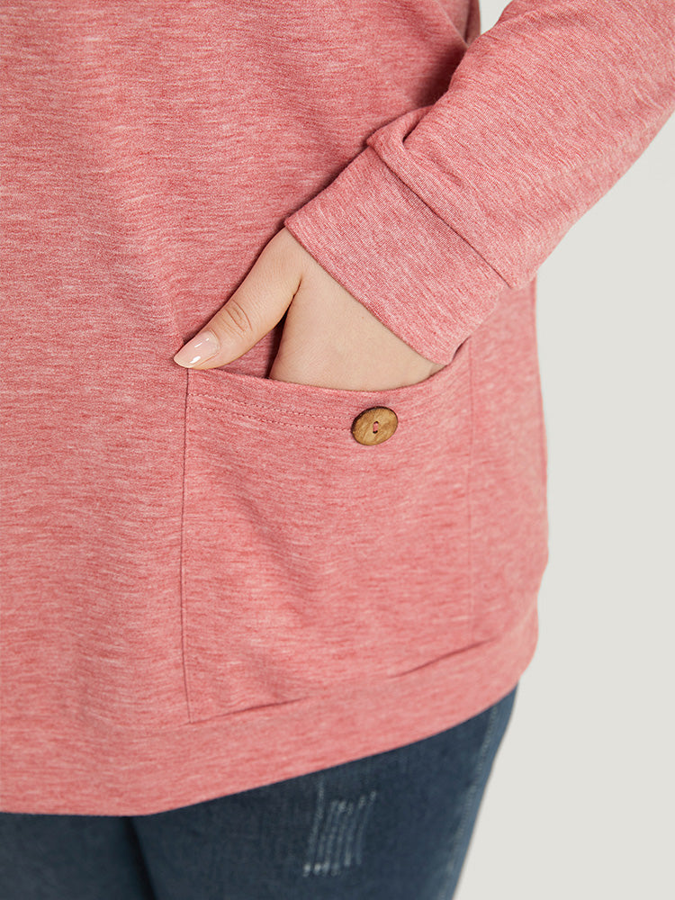 Plain Heather Turtleneck Pocket Button Detail Sweatshirt