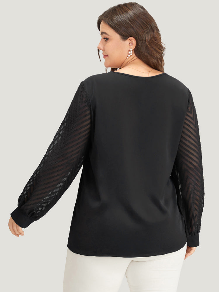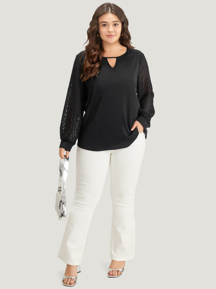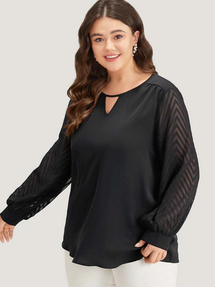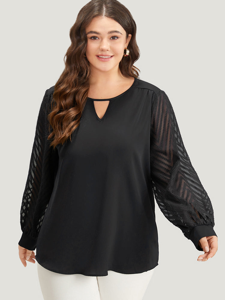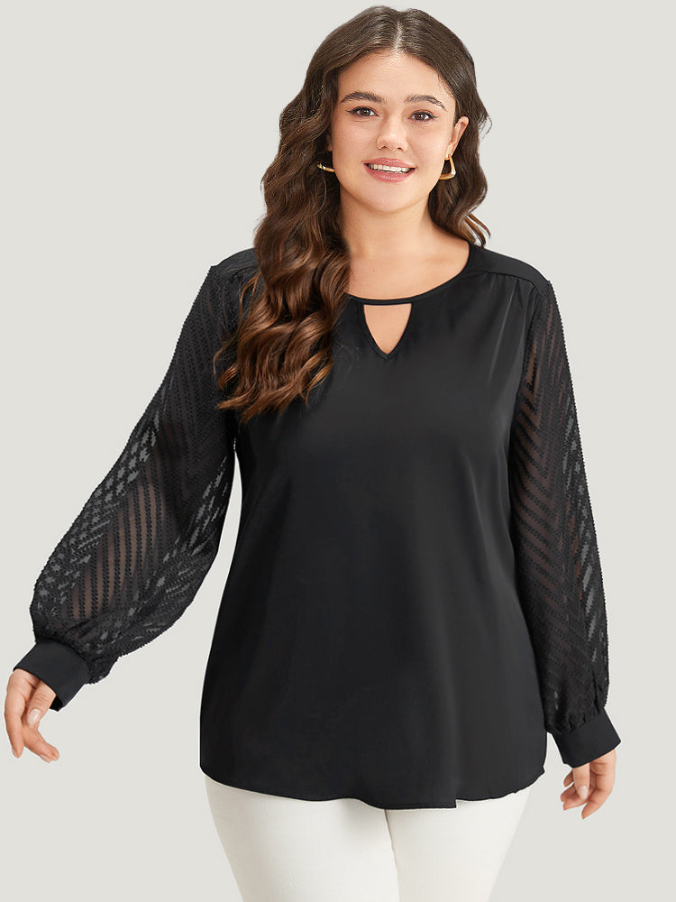Plain Keyhole Lace Patchwork Lantern Sleeve Blouse
