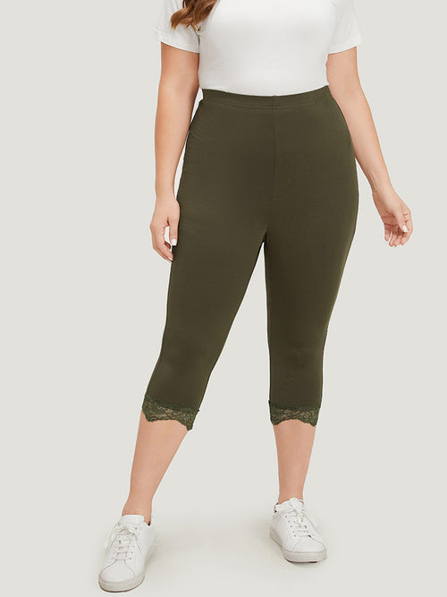 Plain Lace Patchwork High Rise Leggings