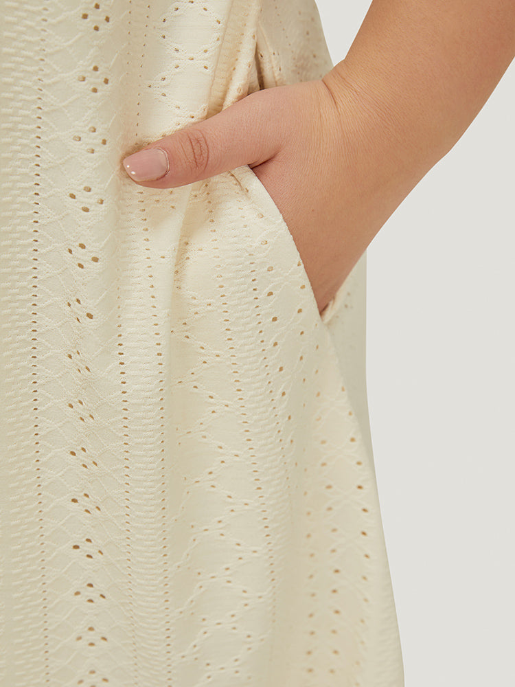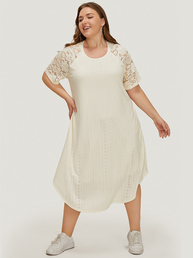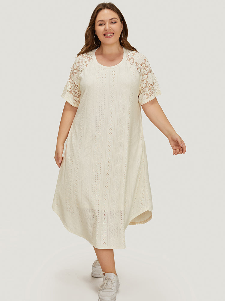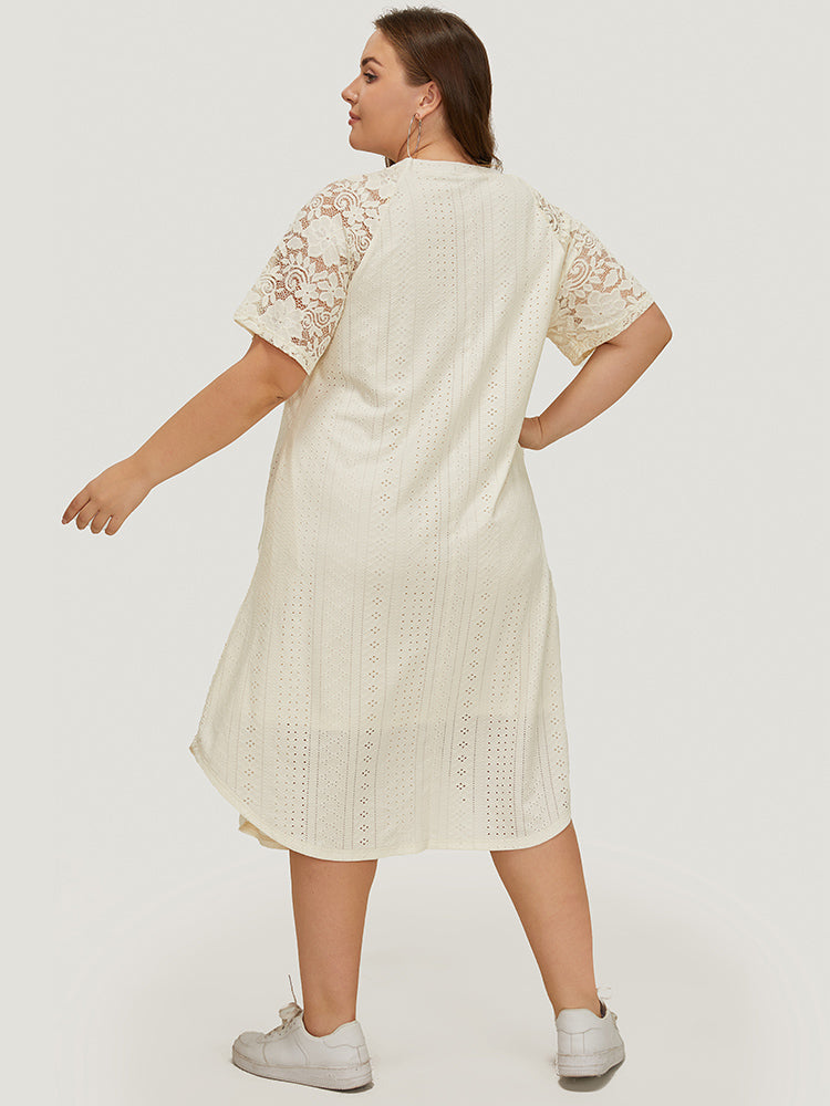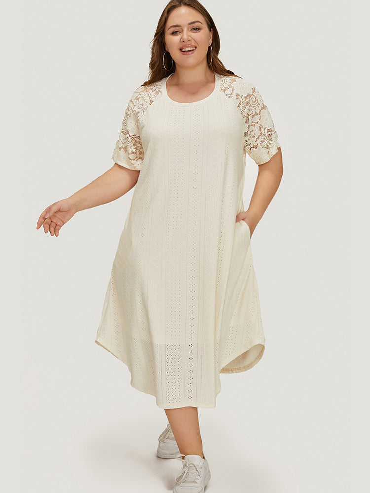 Plain Lace Sleeve Pocket Arc Hem Broderie Anglaise Dress