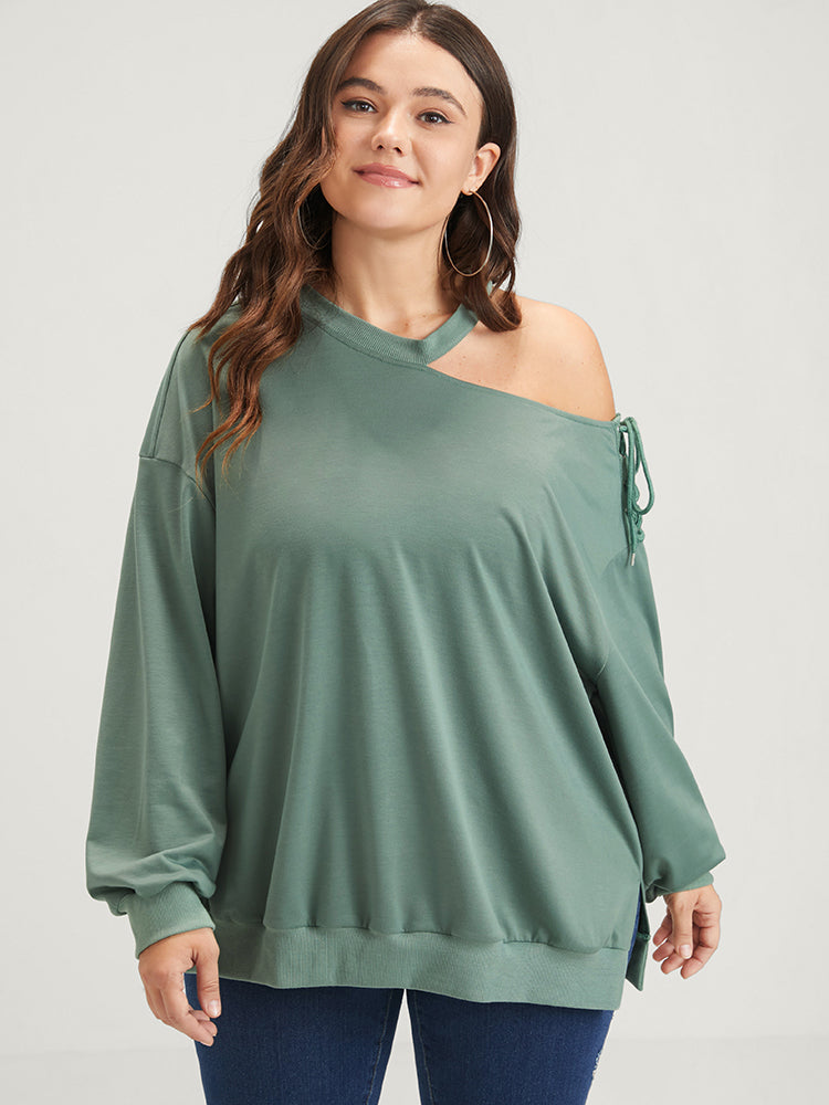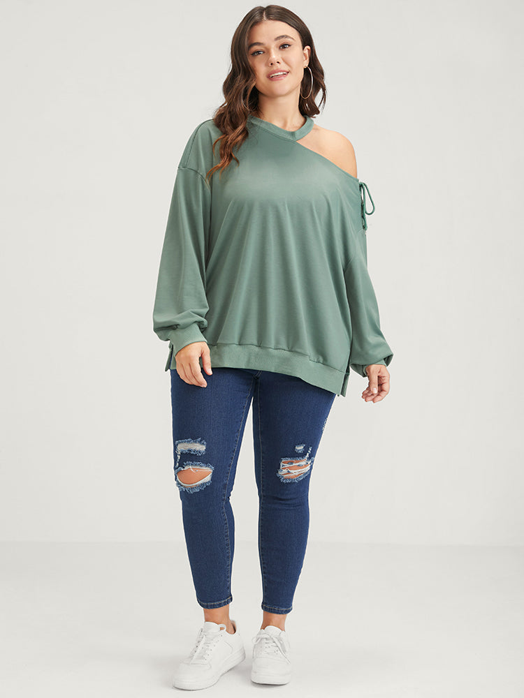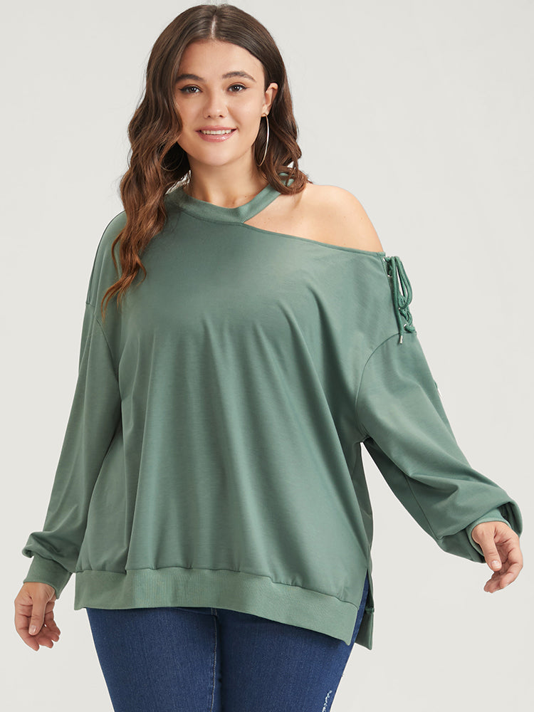 Plain Lace Up Asymmetrical One Shoulder Sweatshirt