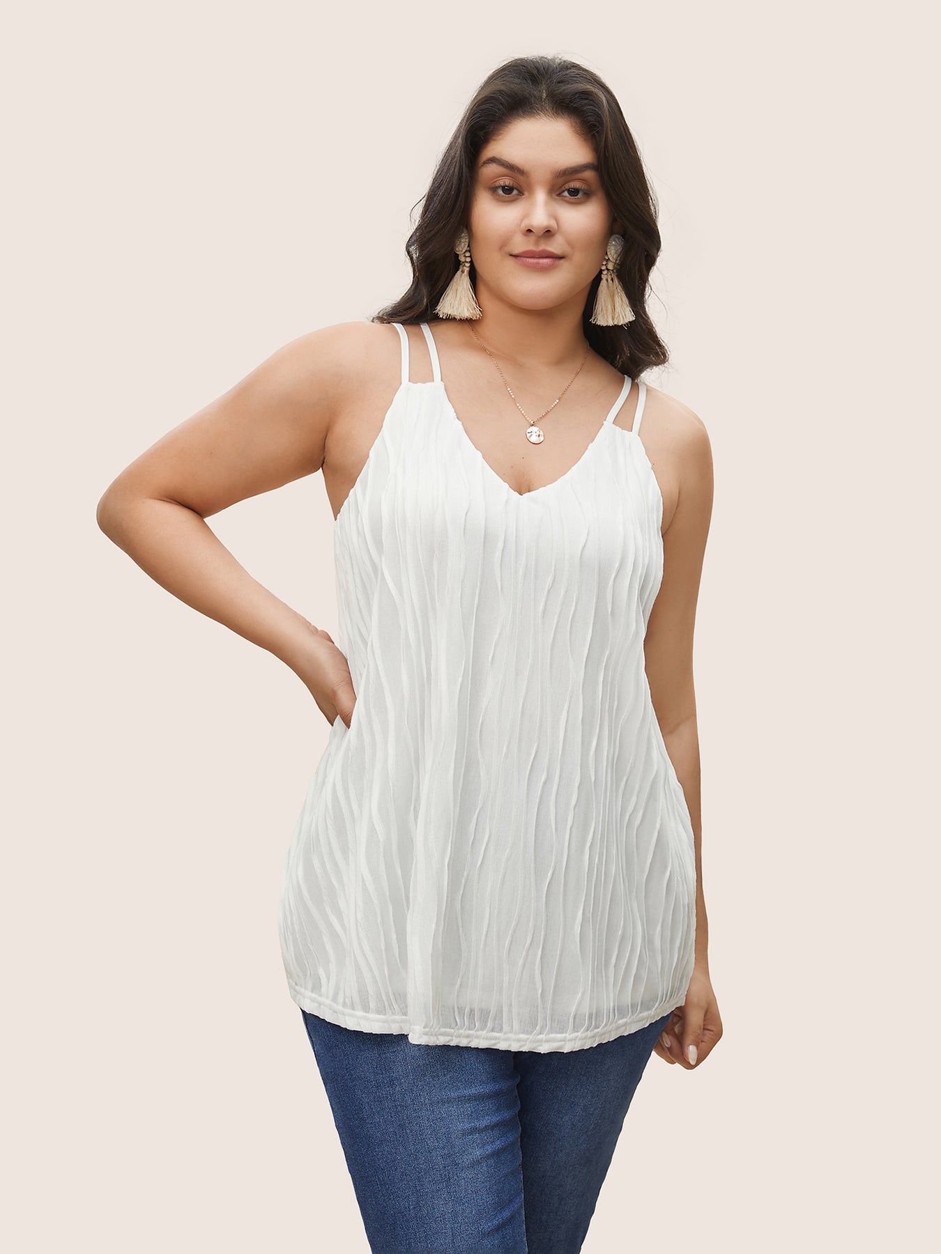 Plain Plisse Deep V Neck Cami Top