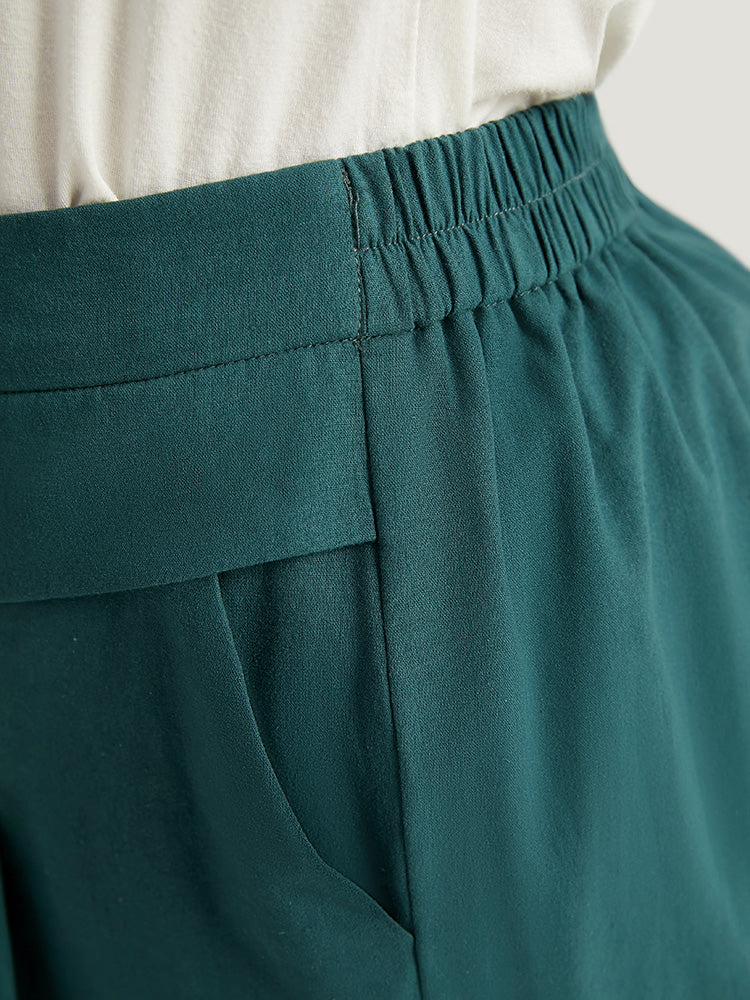 Plain Pocket Elastic Waist Plicated Detail Pants