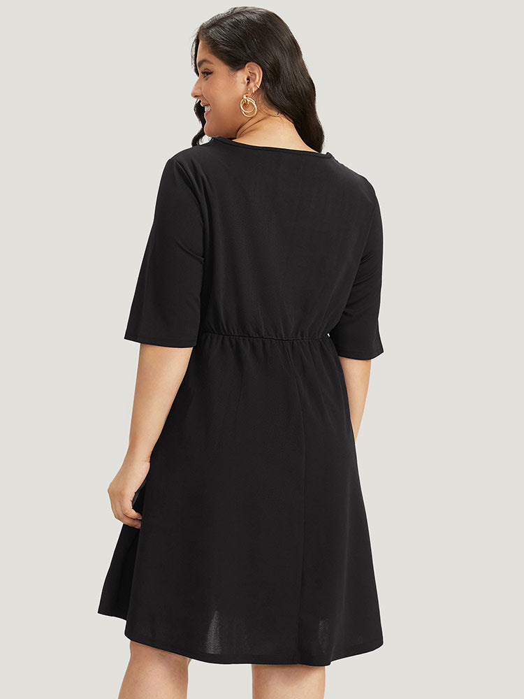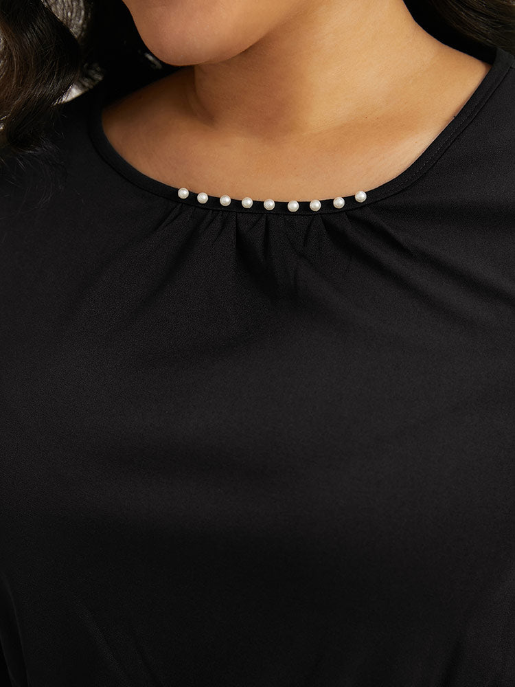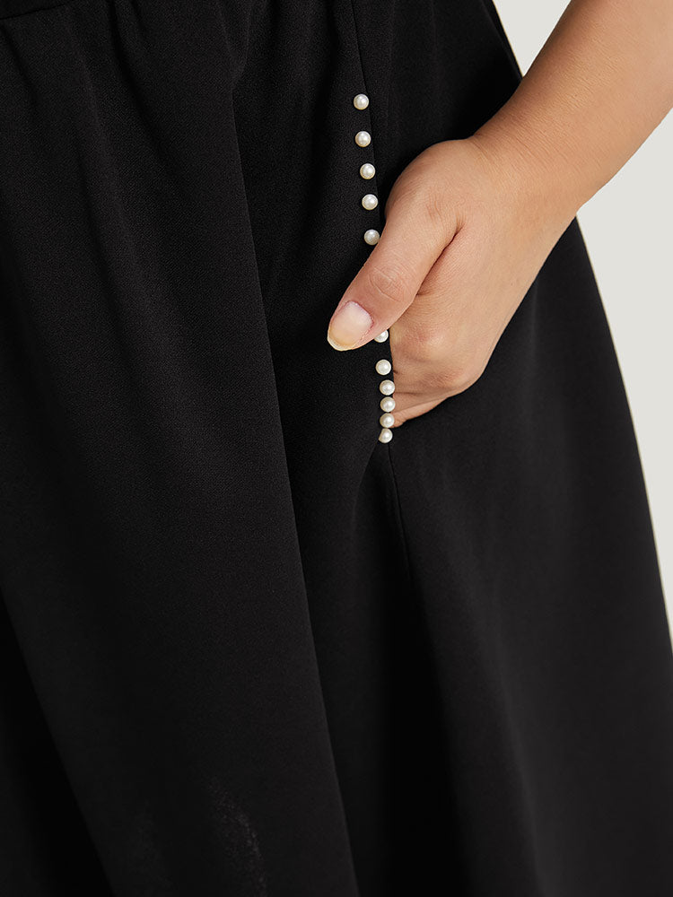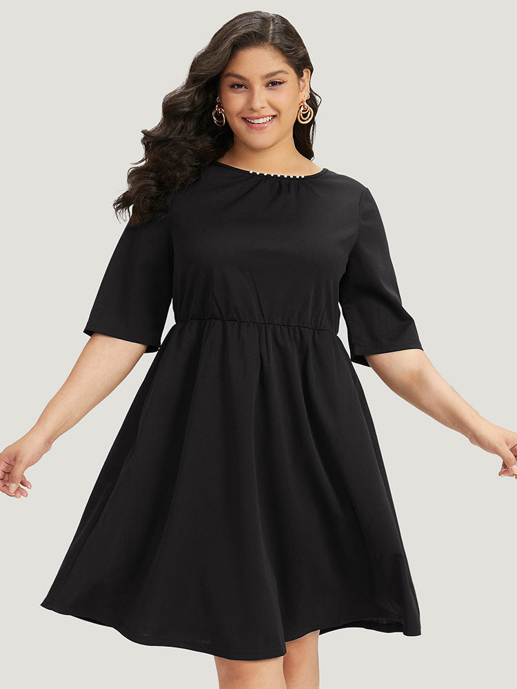 Plain Pocket Pearl Beaded Detail Gathered Dress