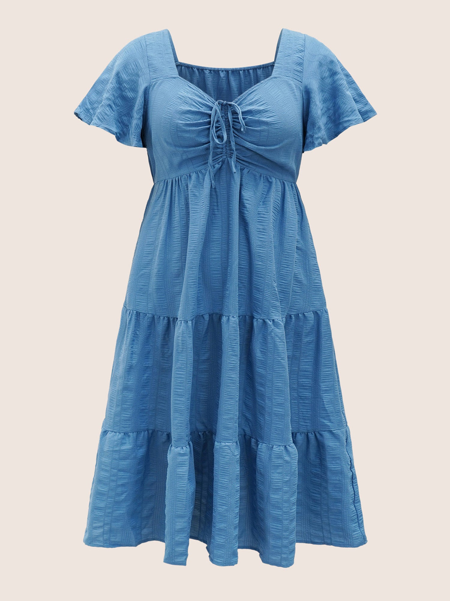 Plain Ruched Drawstring Pocket Ruffle Tiered Dress