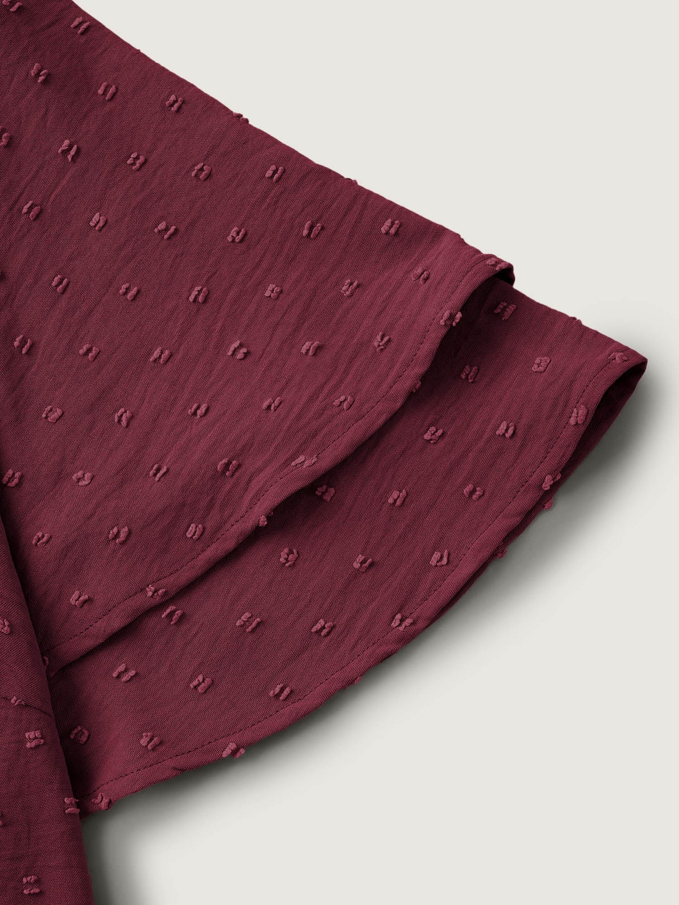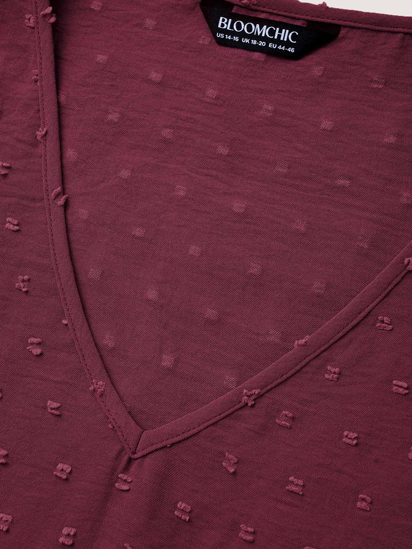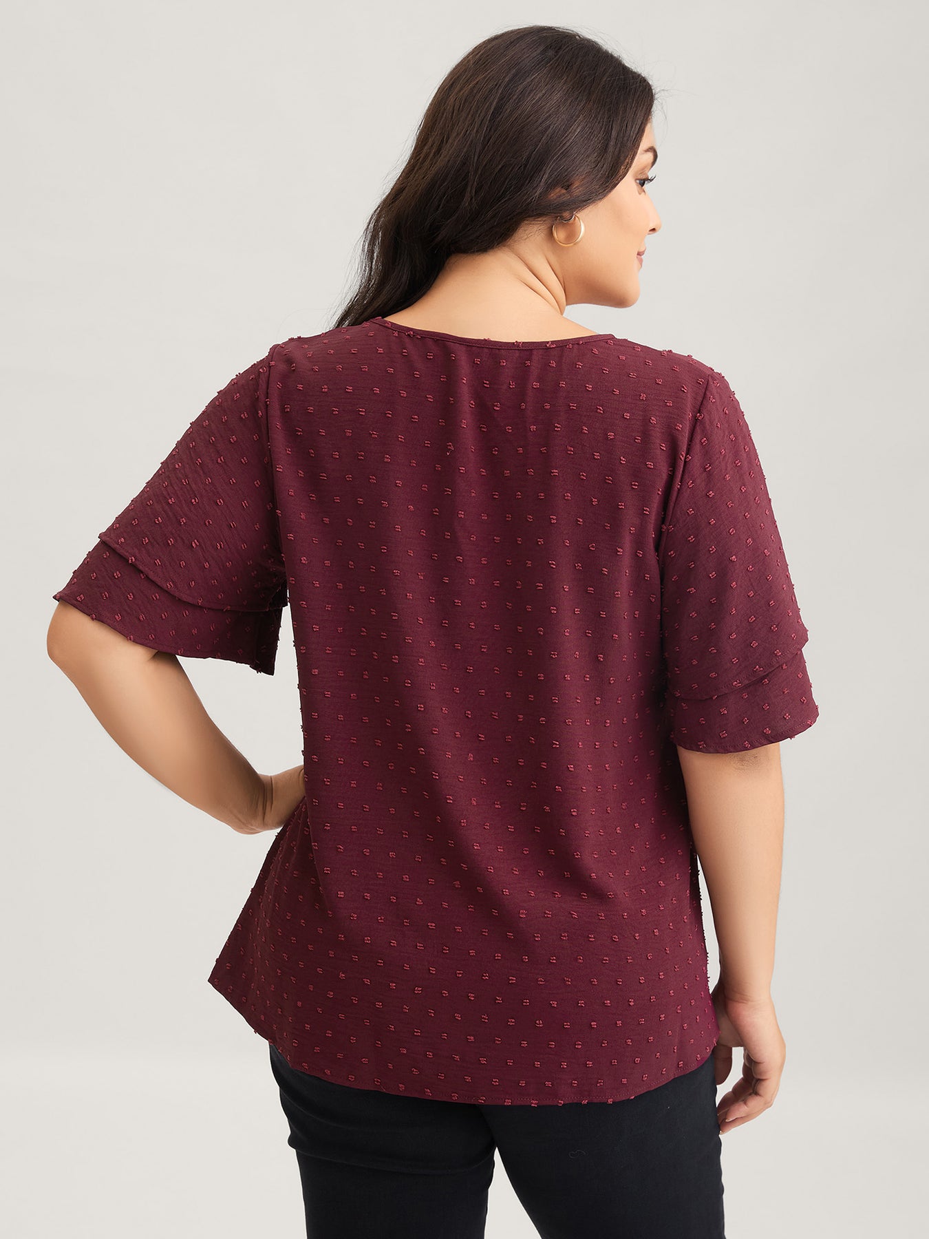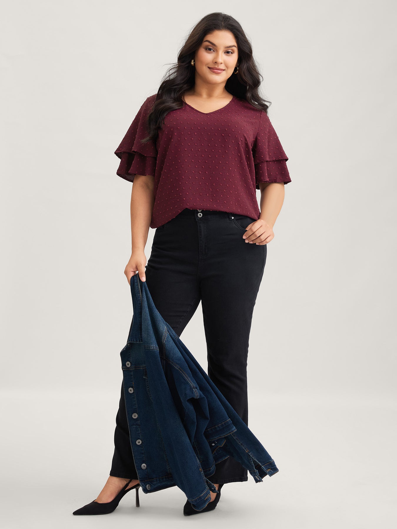 Plain Ruffle Tiered Sleeve V Neck Polka Dot Blouse