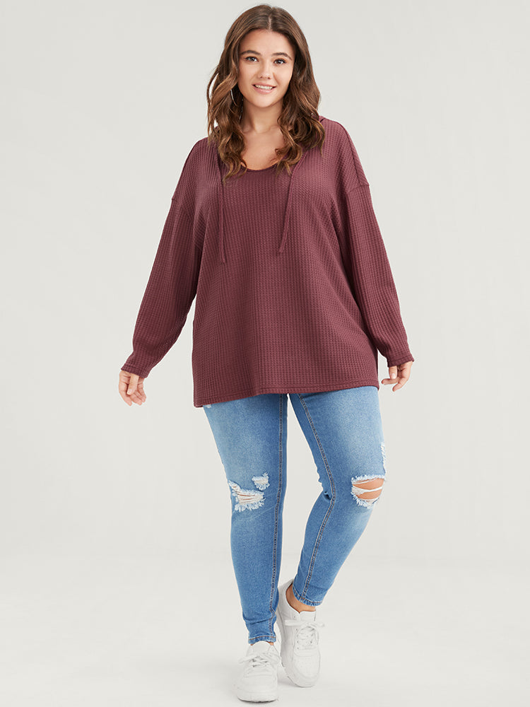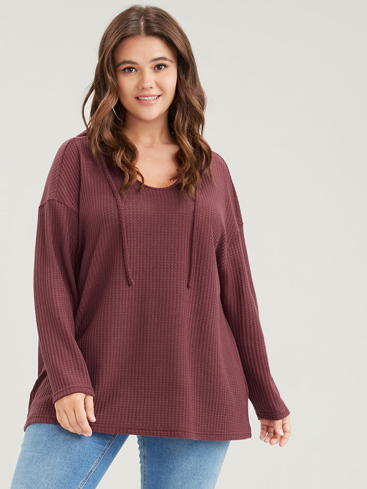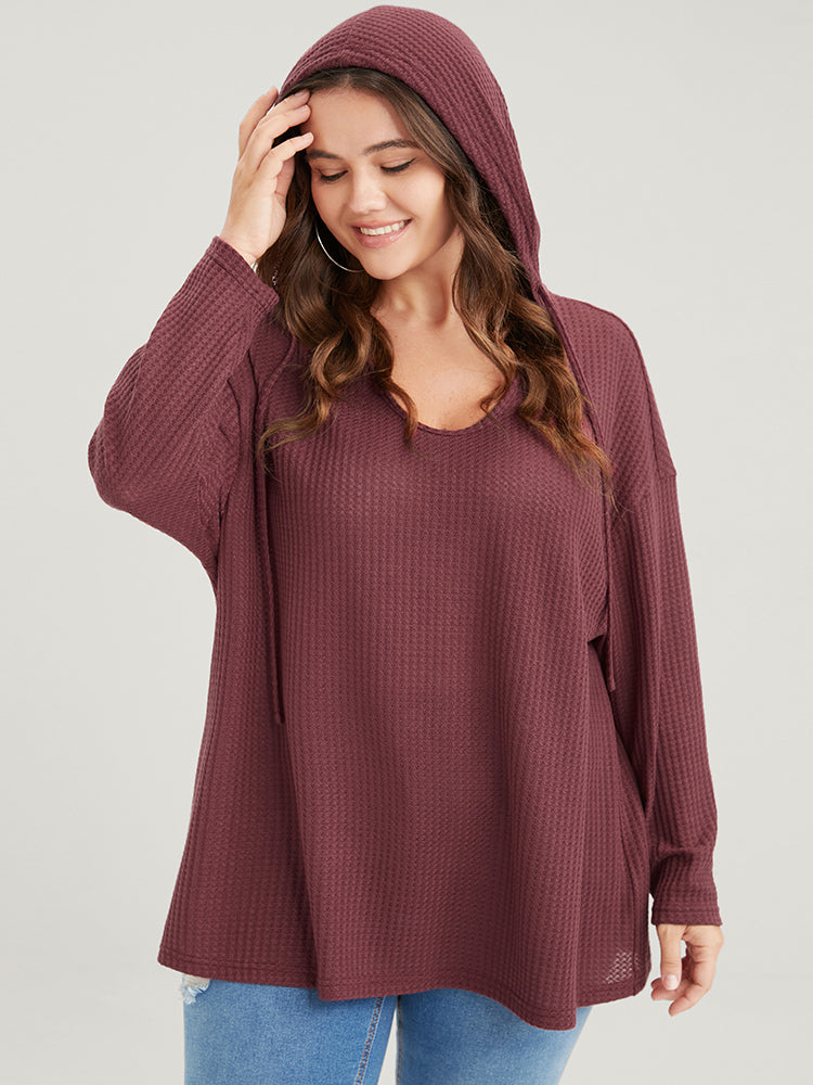 Plain Ties Waffle Knit Hooded Sweatshirt