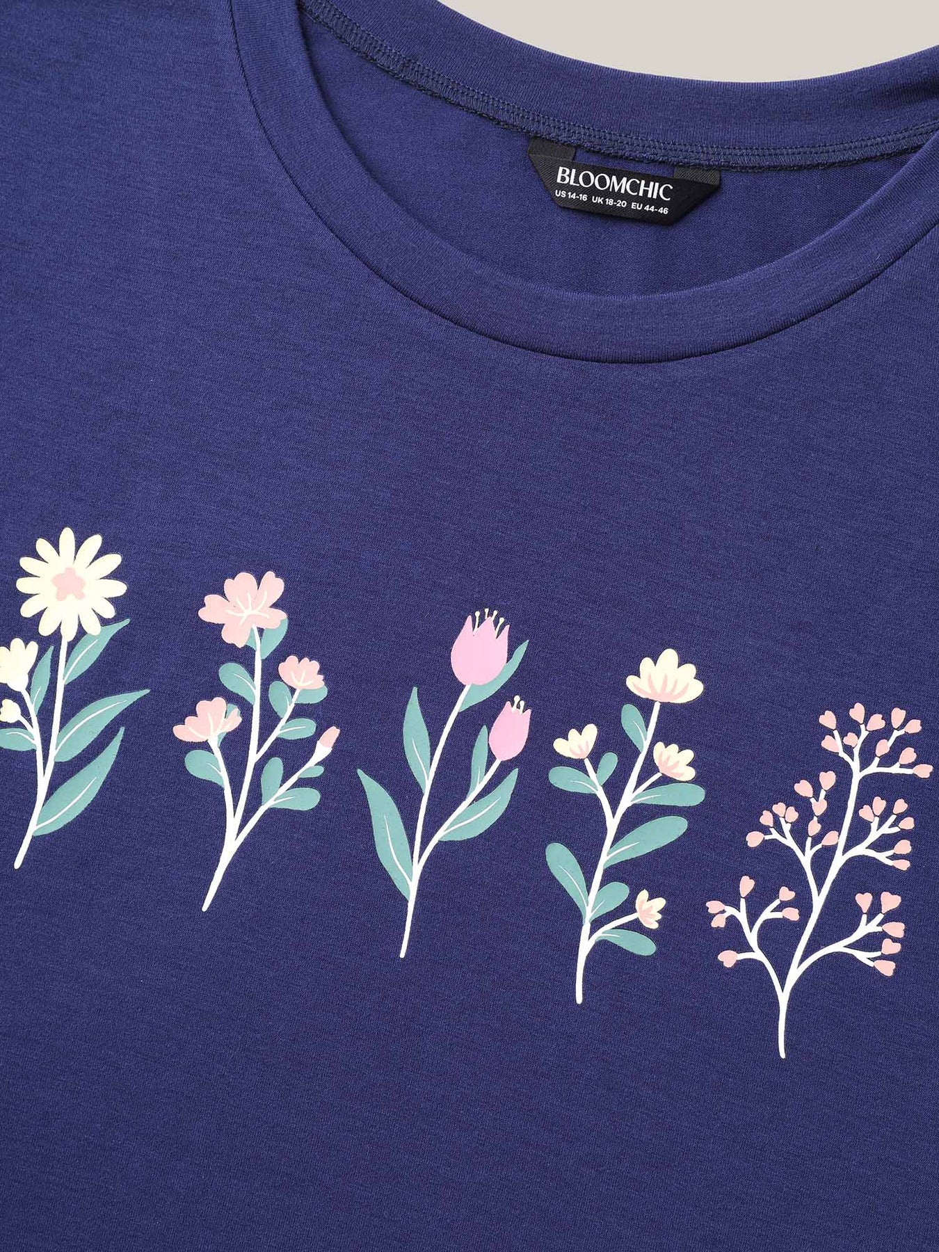 Plants Print Stretchy Crew Neck T-Shirt