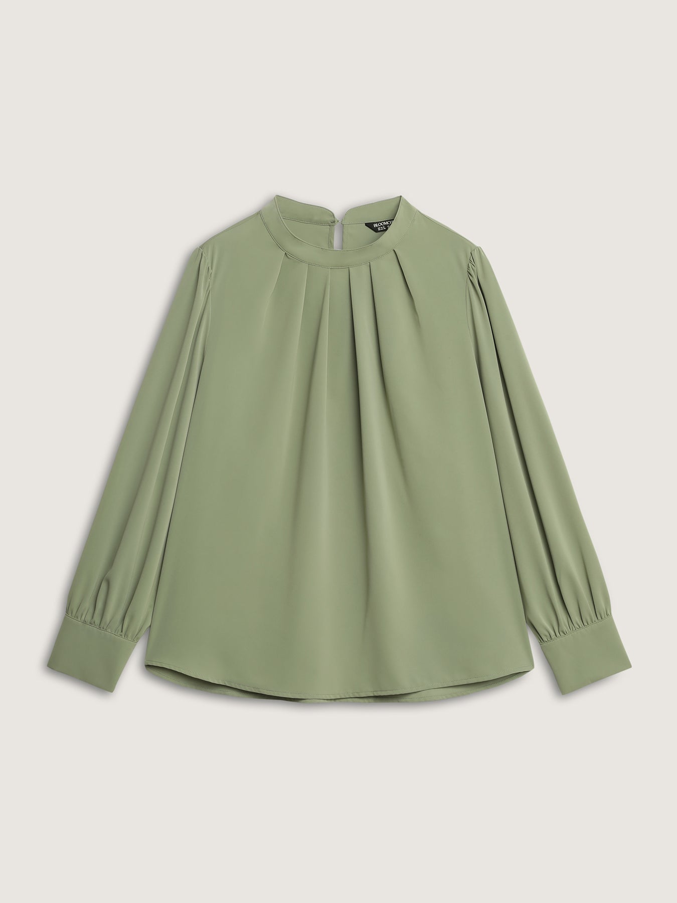 Pleated High Neckline Solid Blouse