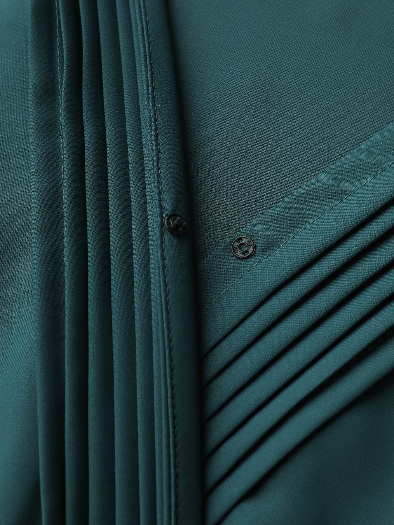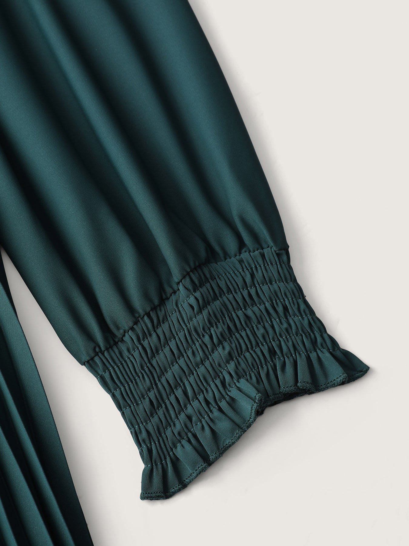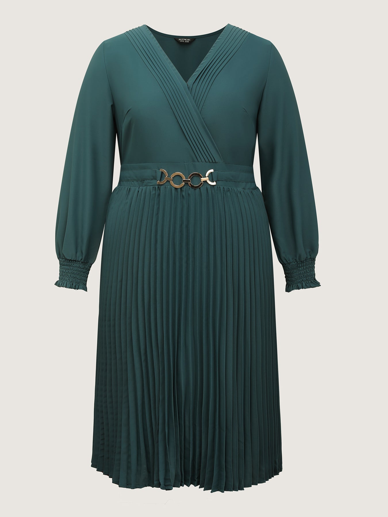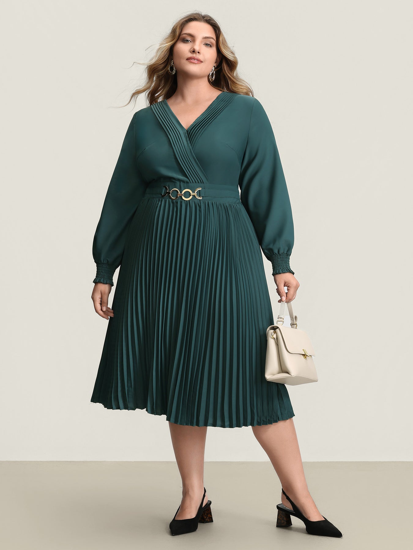 Pleated Wrap Neckline Shirred Waist Midi Dress