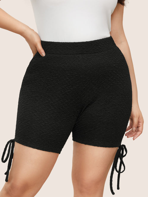 Plisse Tie Knot Elastic Waist High Rise Leggings