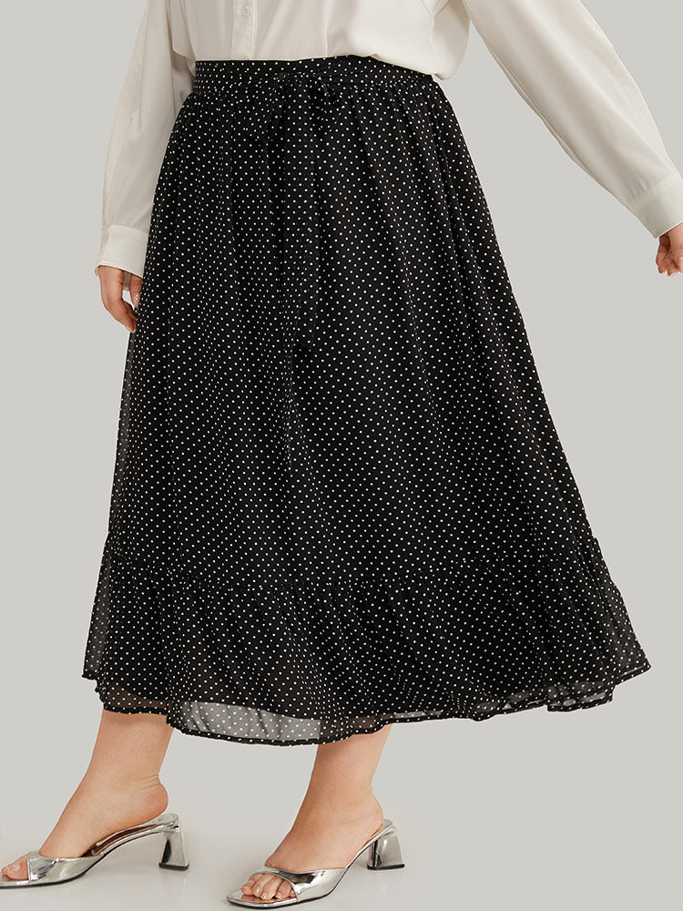Polka Dot Bowknot Ties Ruffles Skirt