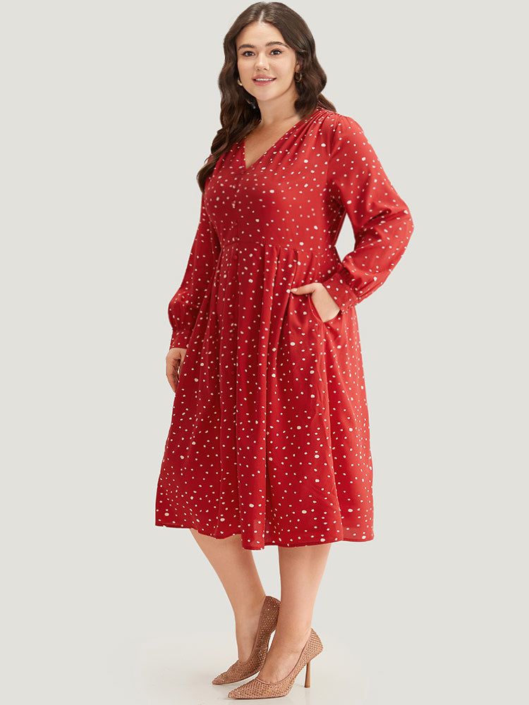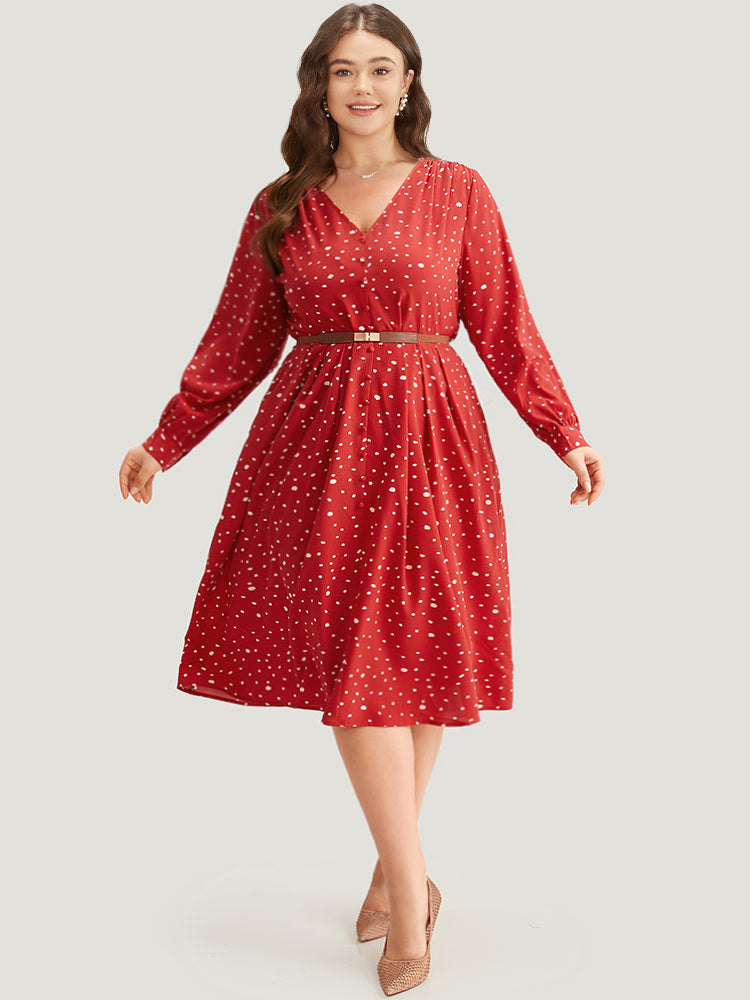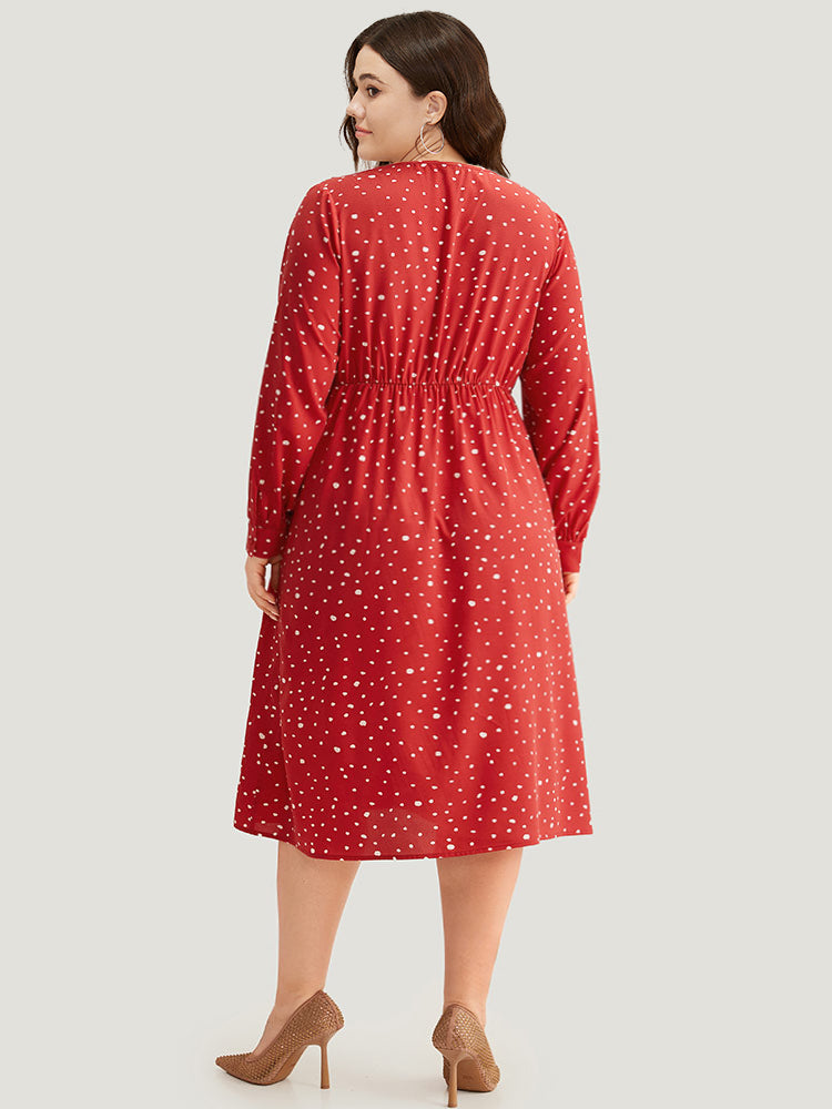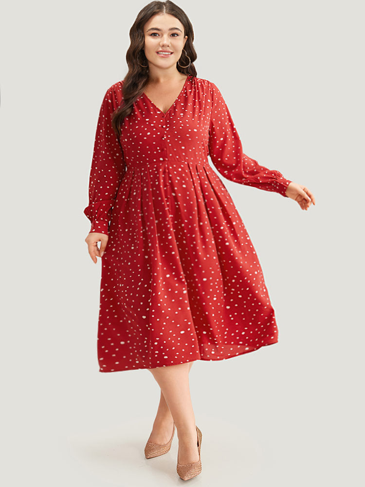 Polka Dot Button Detail Pleated Dress