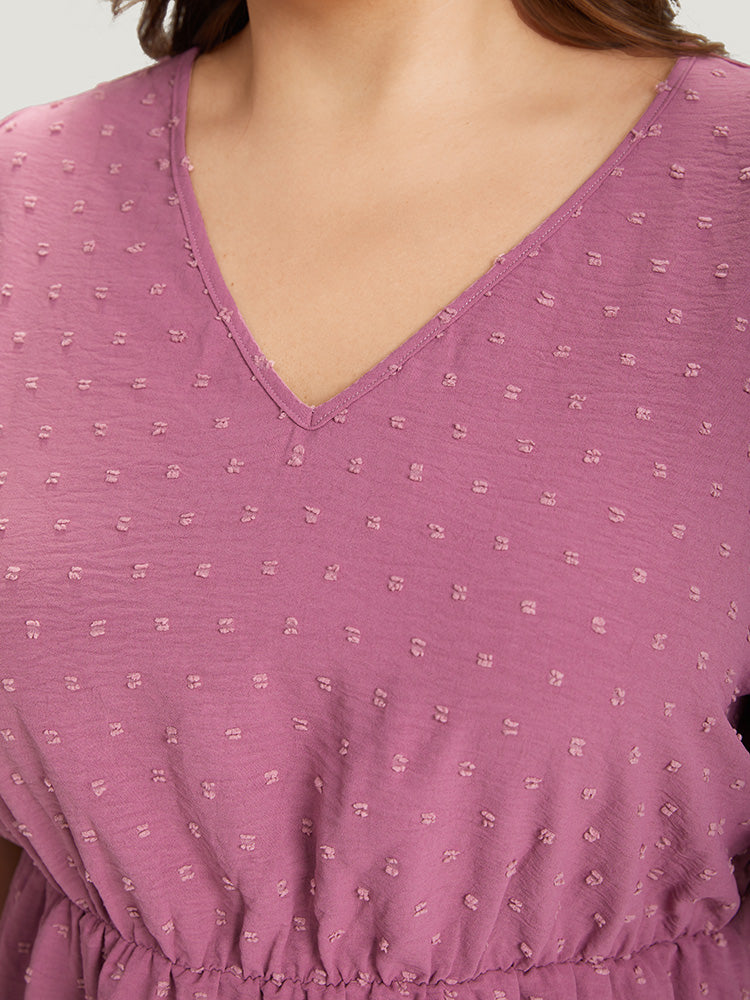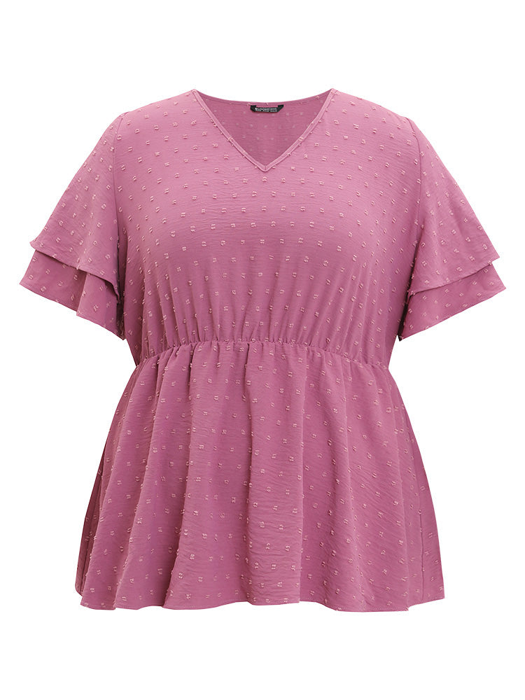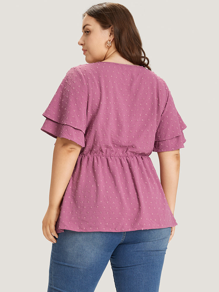 Polka Dot Elastic Waist Ruffle Sleeve Layered Blouse