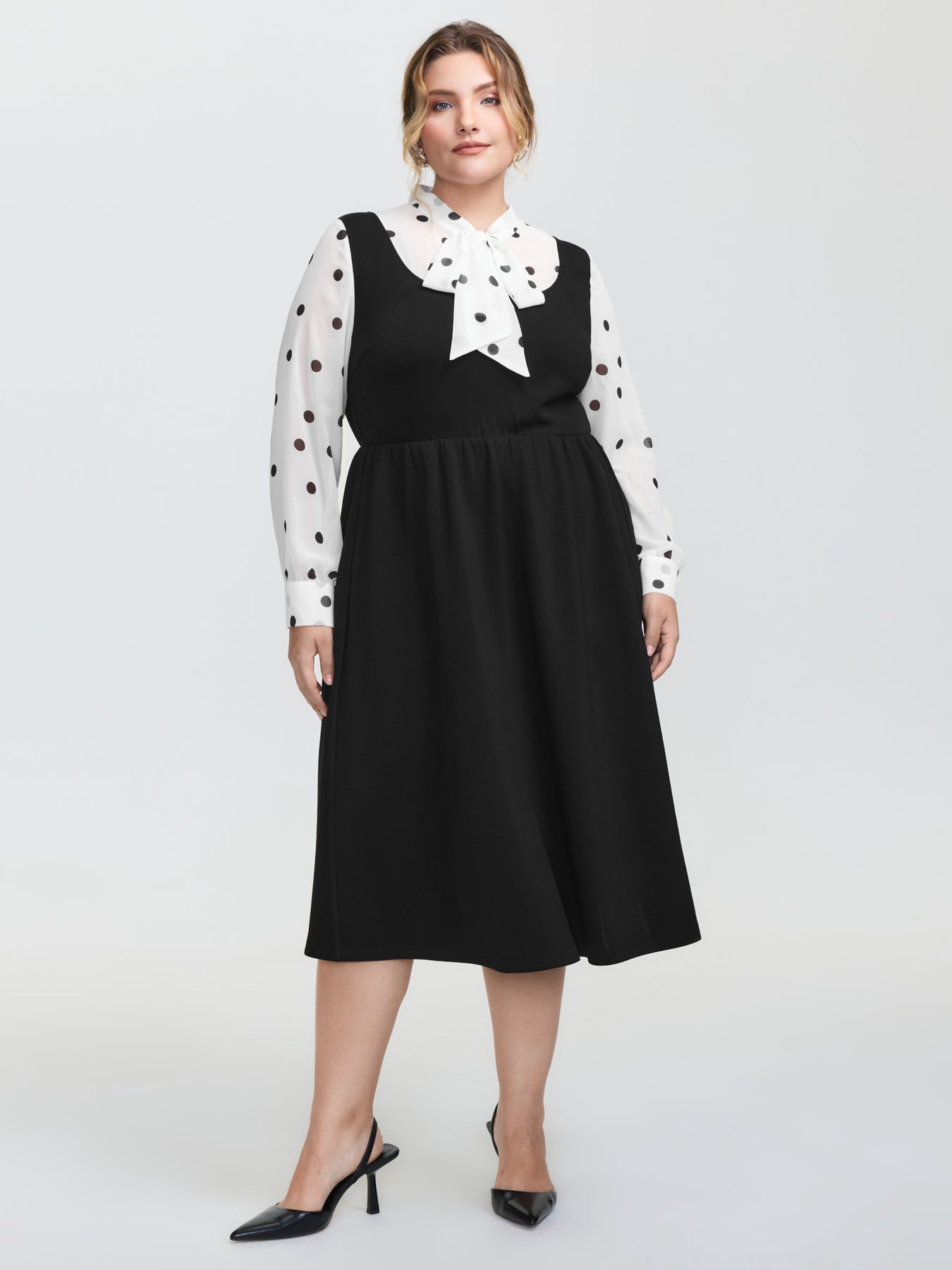 Polka Dot Neck Tie Midi Dress
