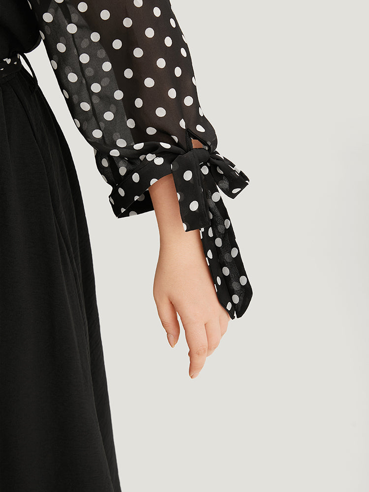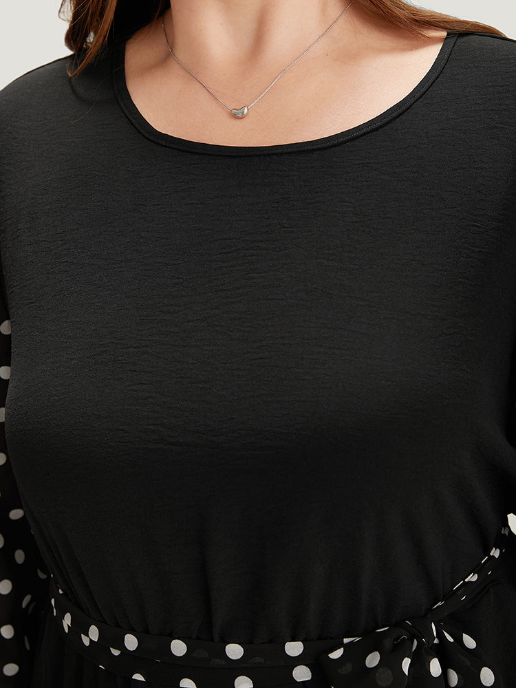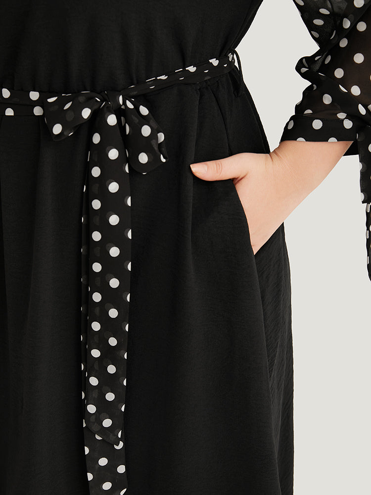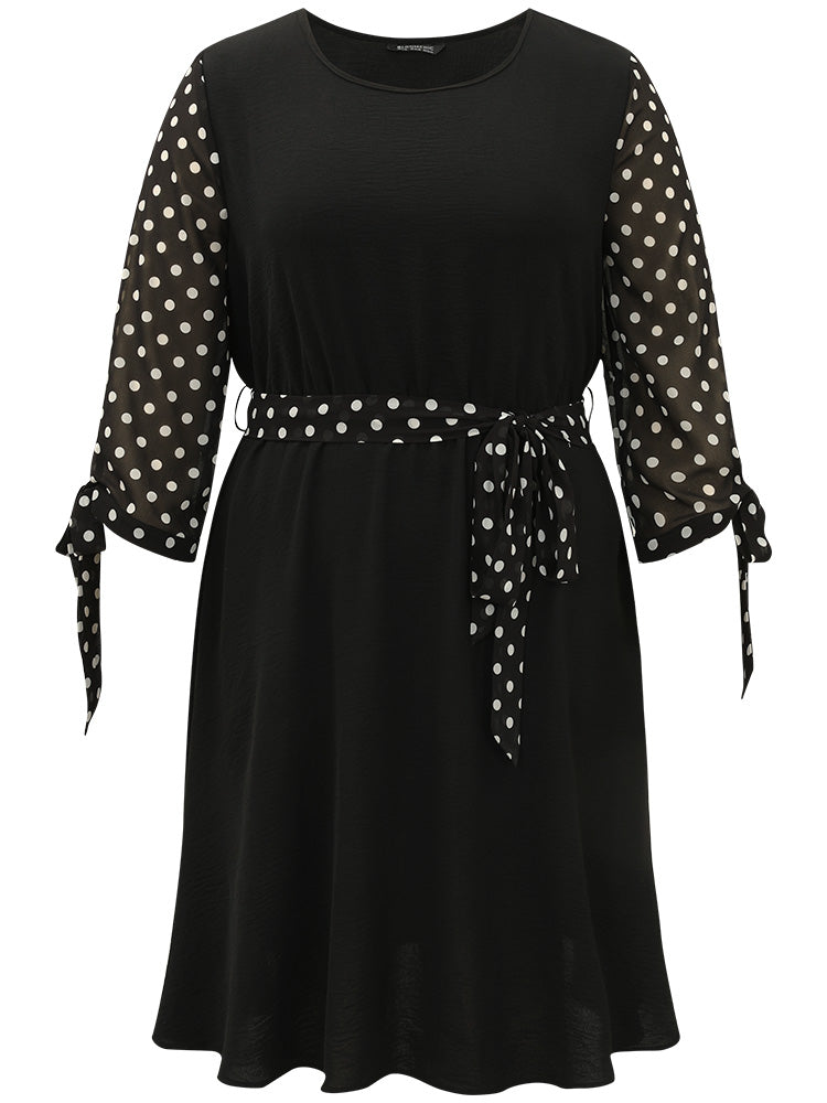 Polka Dot Patchwork Mesh Belted Bowknot Dress