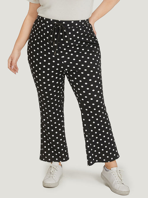 Polka Dot Print Pocket Ties Bootcut Sweatpants