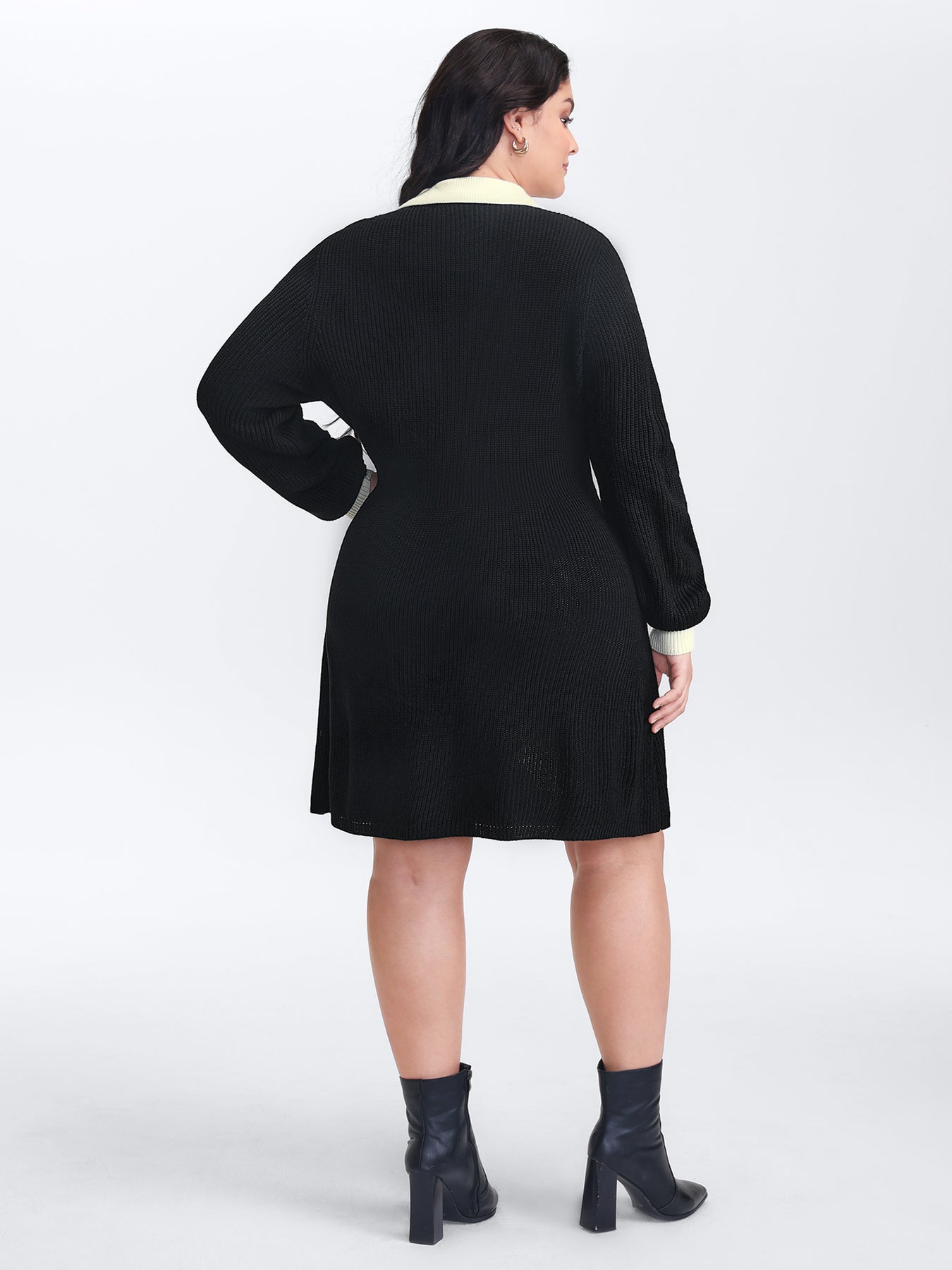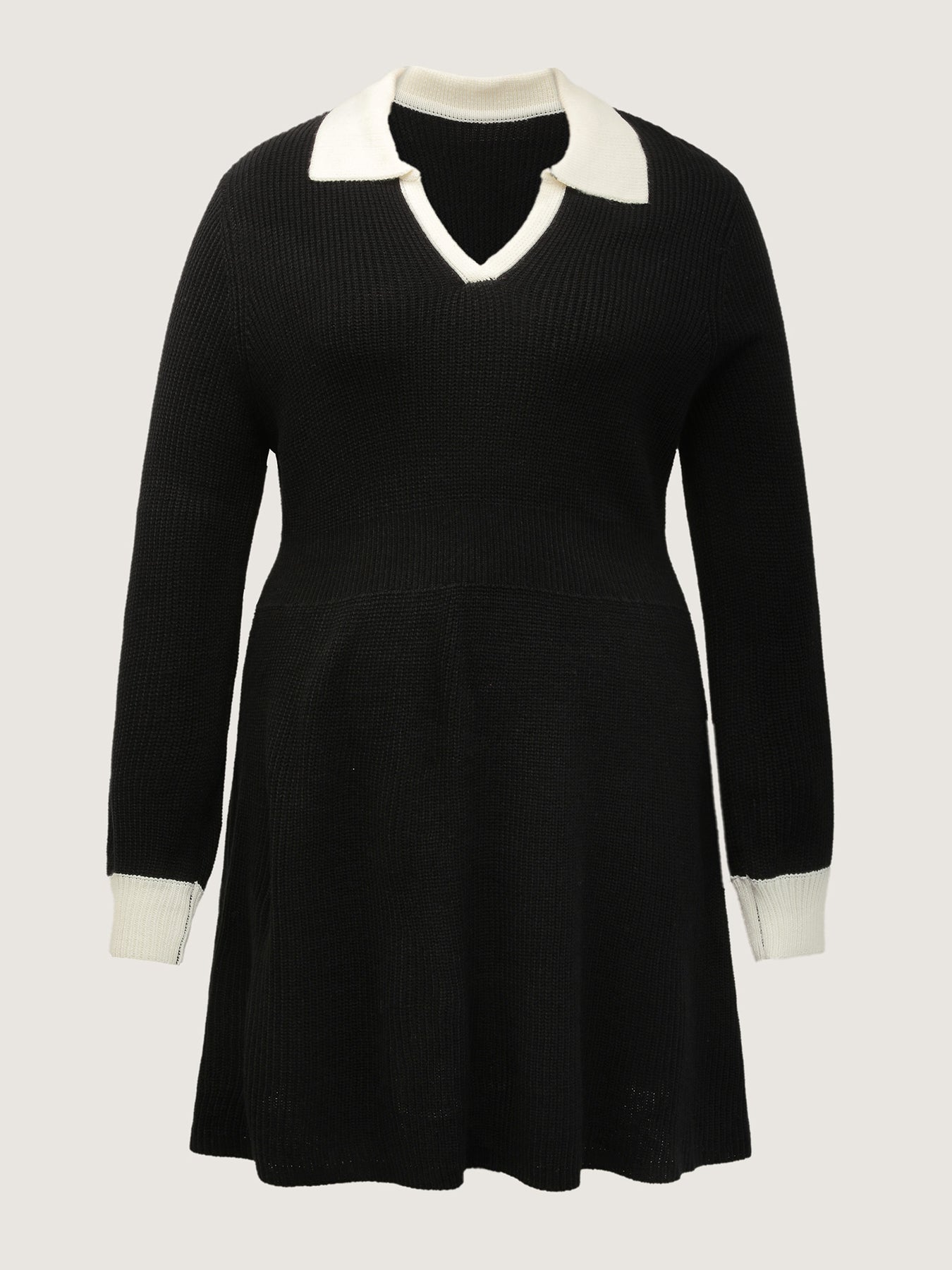 Polo Collar Textured Waist Defining Knit Dress