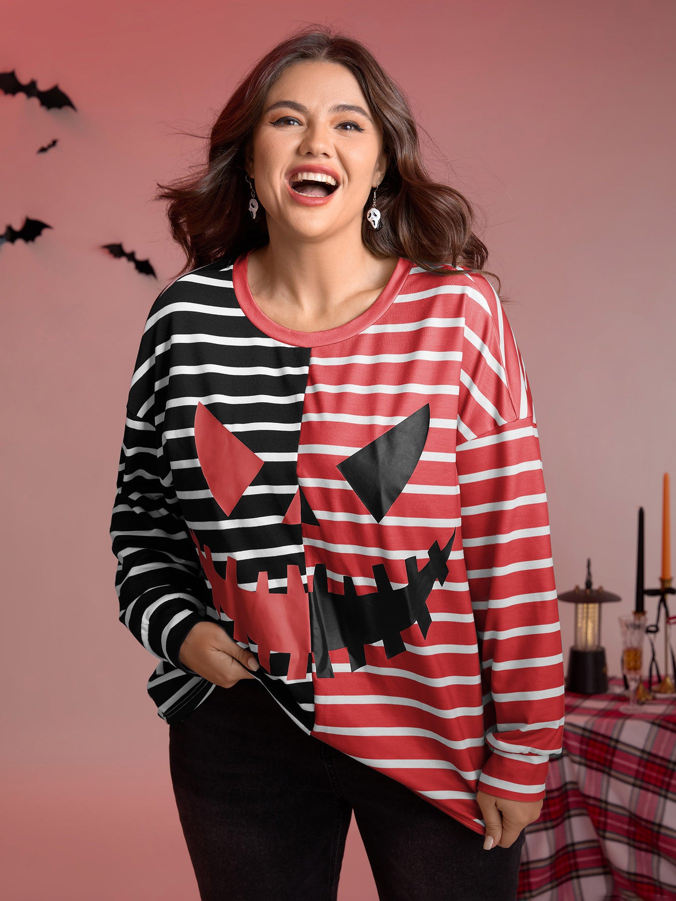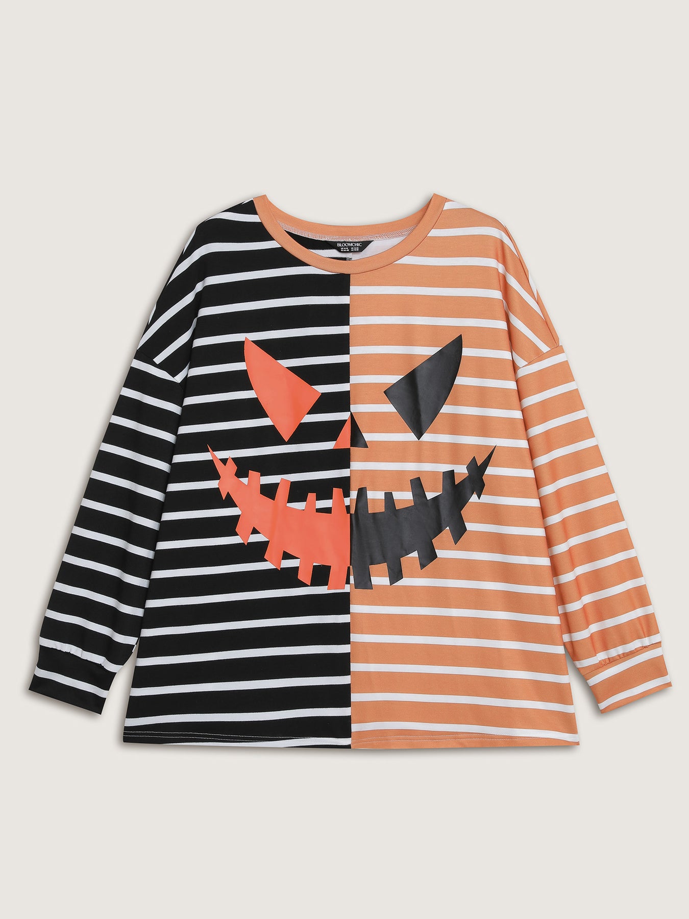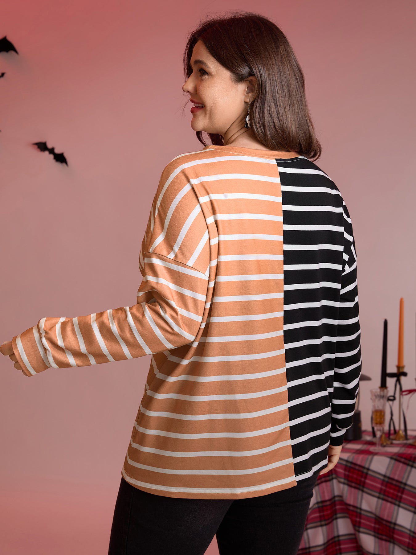 Pumpkin Contrast Stripes Full Sleeve Sweatshirt
