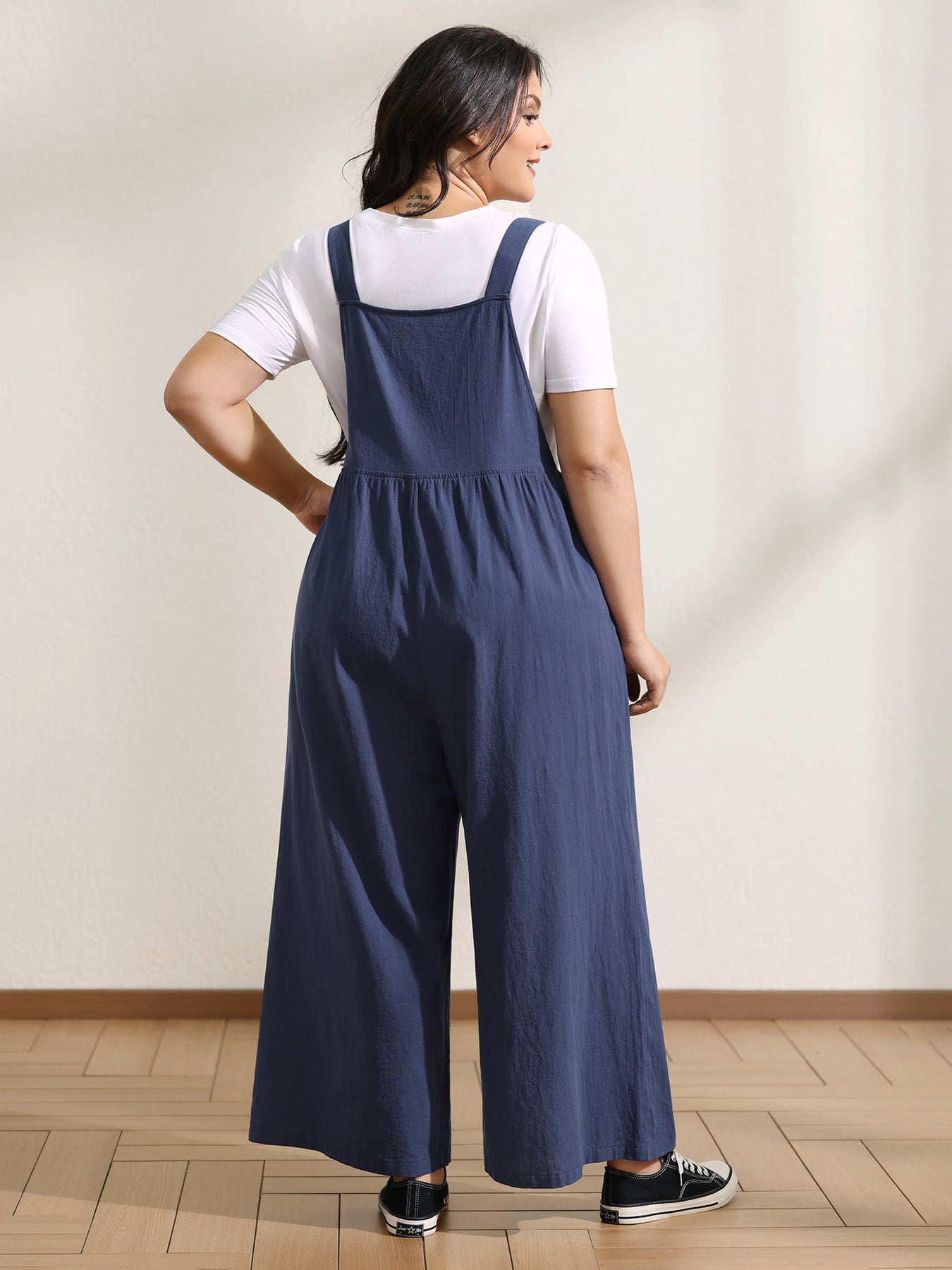 Pure Cotton Floral Embroidery Overall Jumpsuit