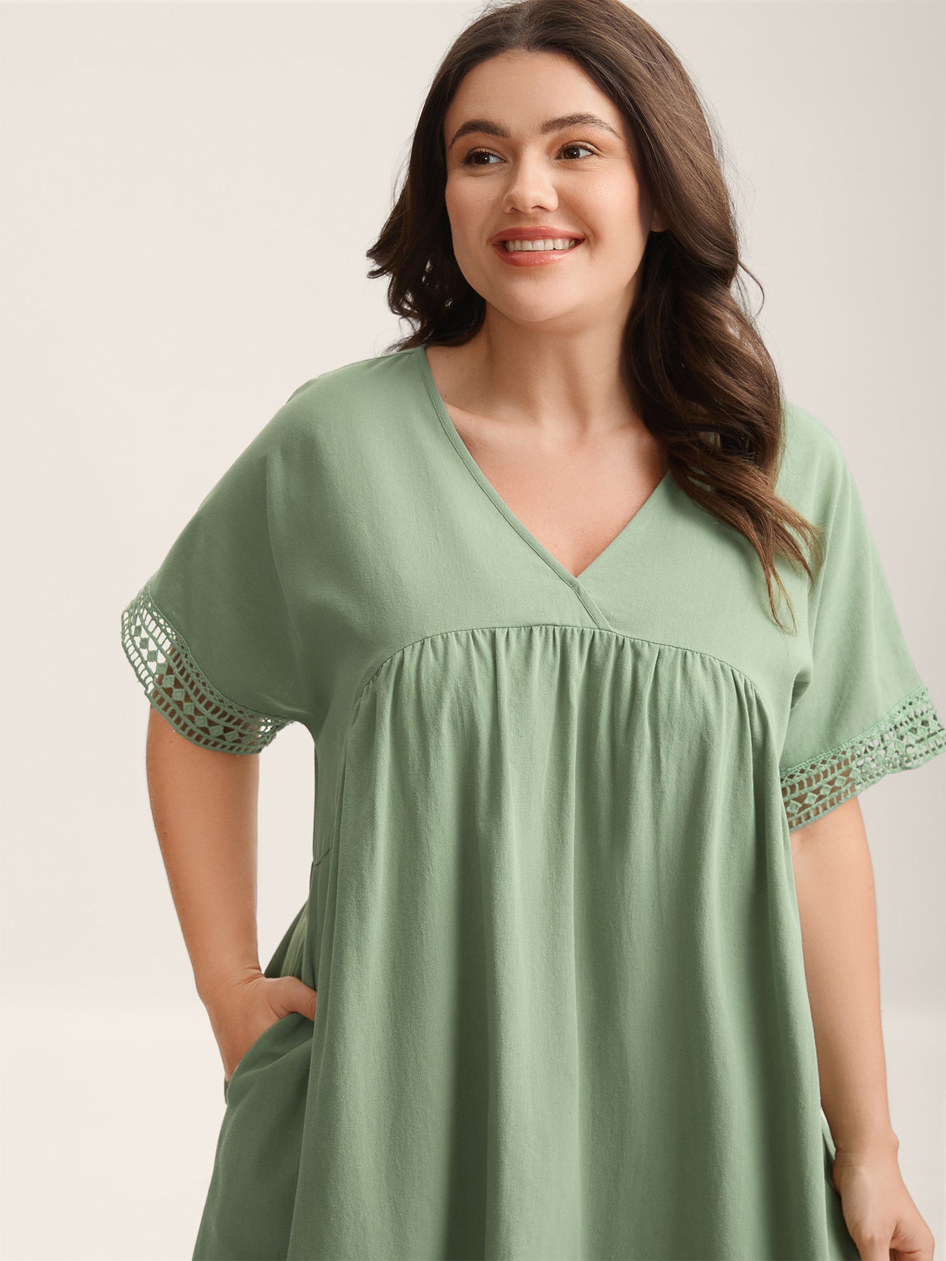 Pure Cotton Lace Trim Sleeve Midi Dress