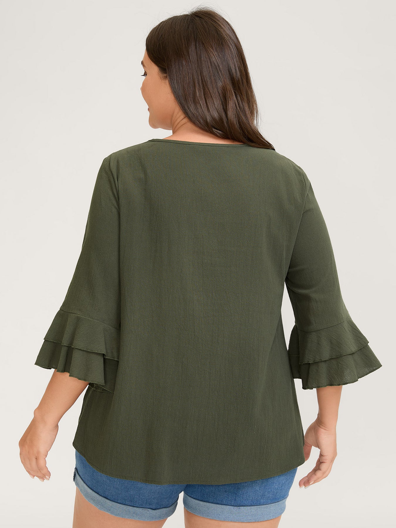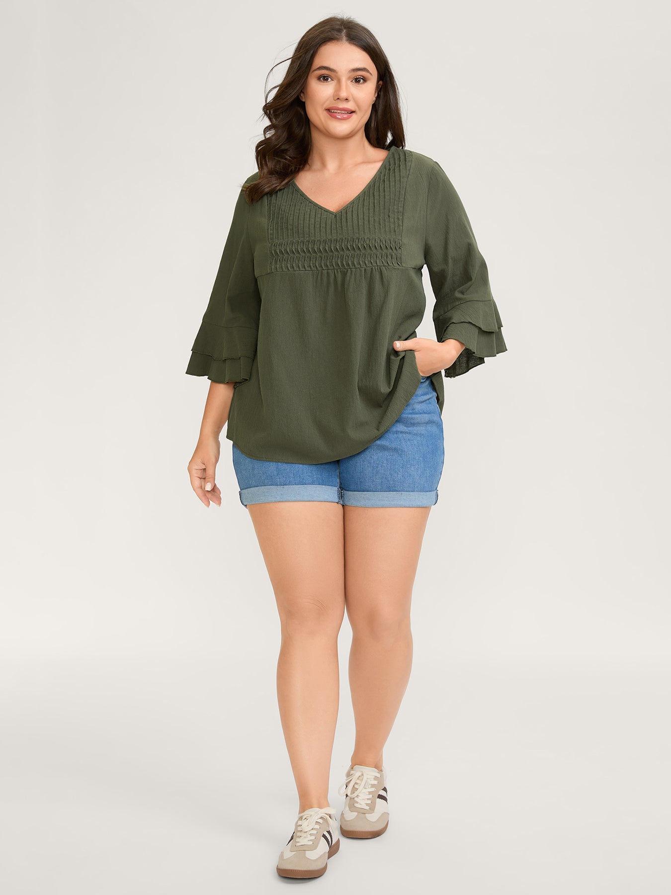 Pure Cotton Pleated V-Neck Blouse