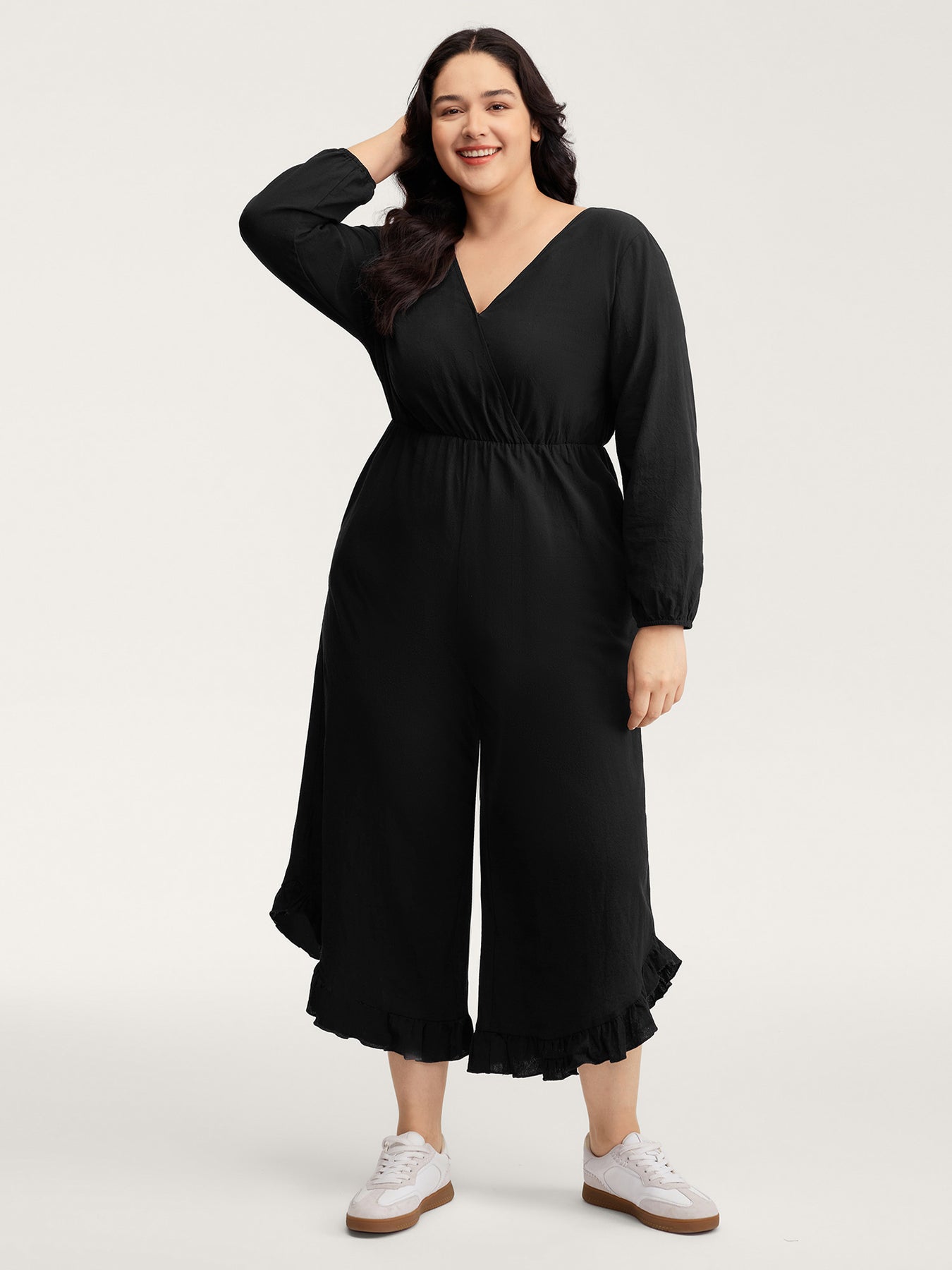 Pure Cotton Ruffled Hem Pockets Jumpsuit