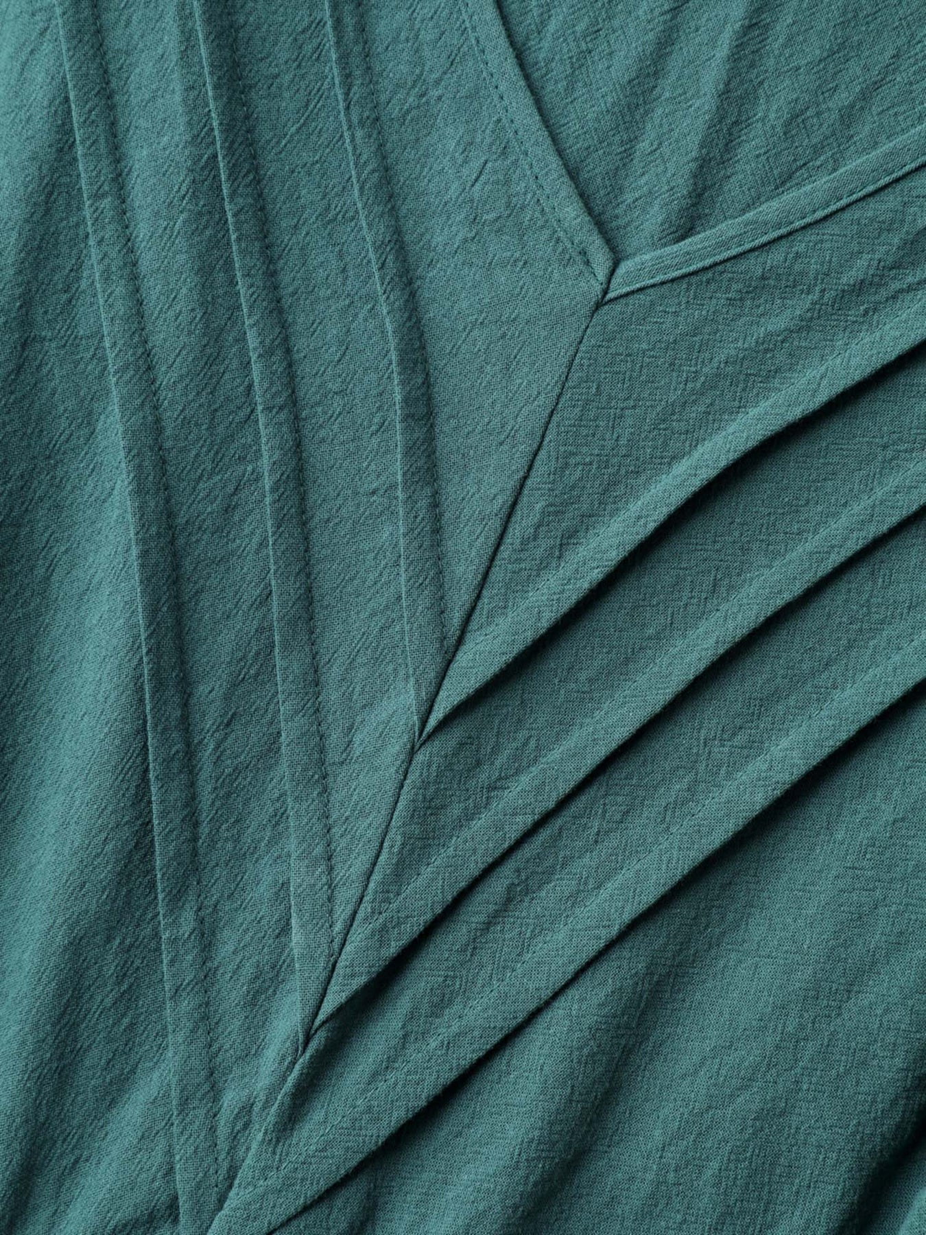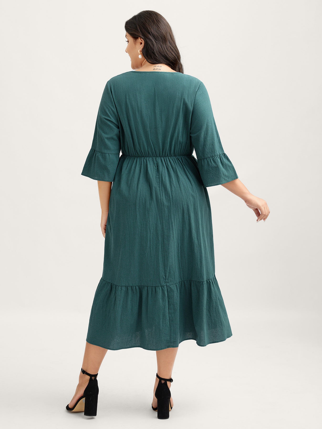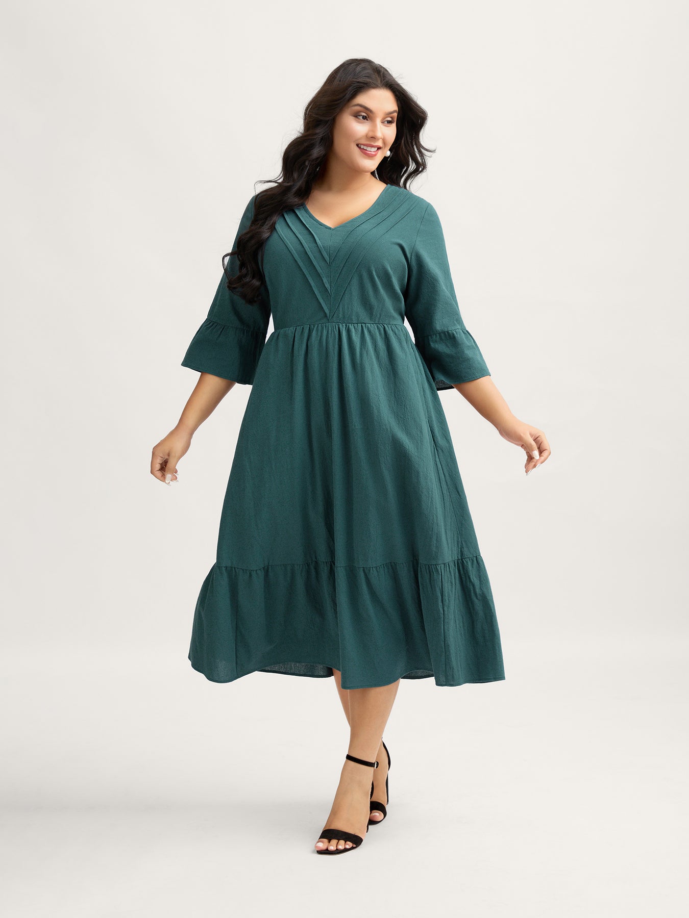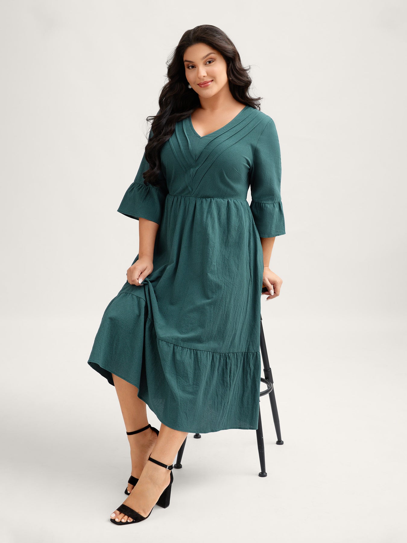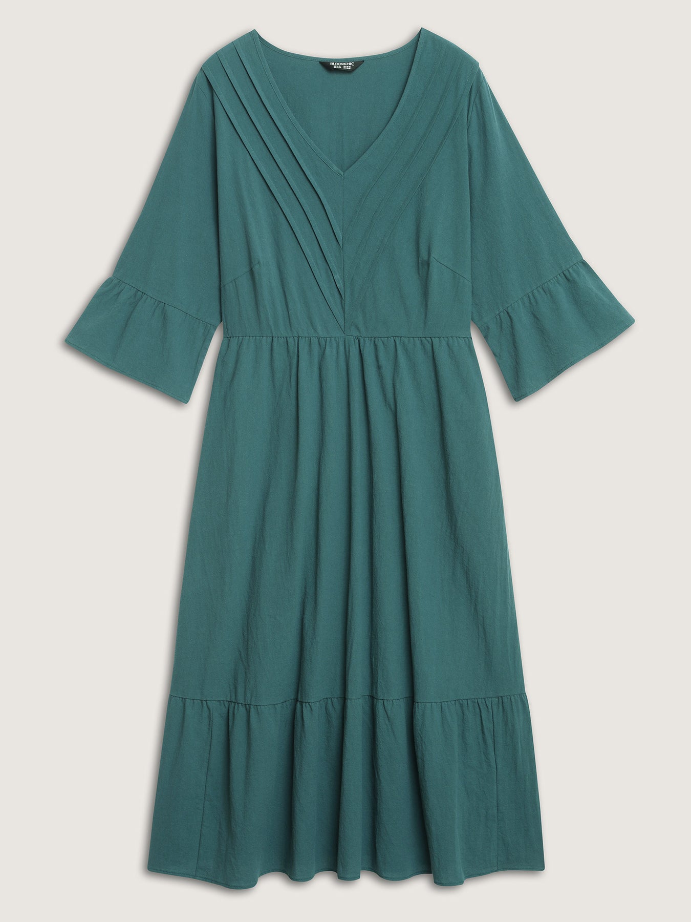 Pure Cotton Toothpick Pleats Tiered Midi Dress