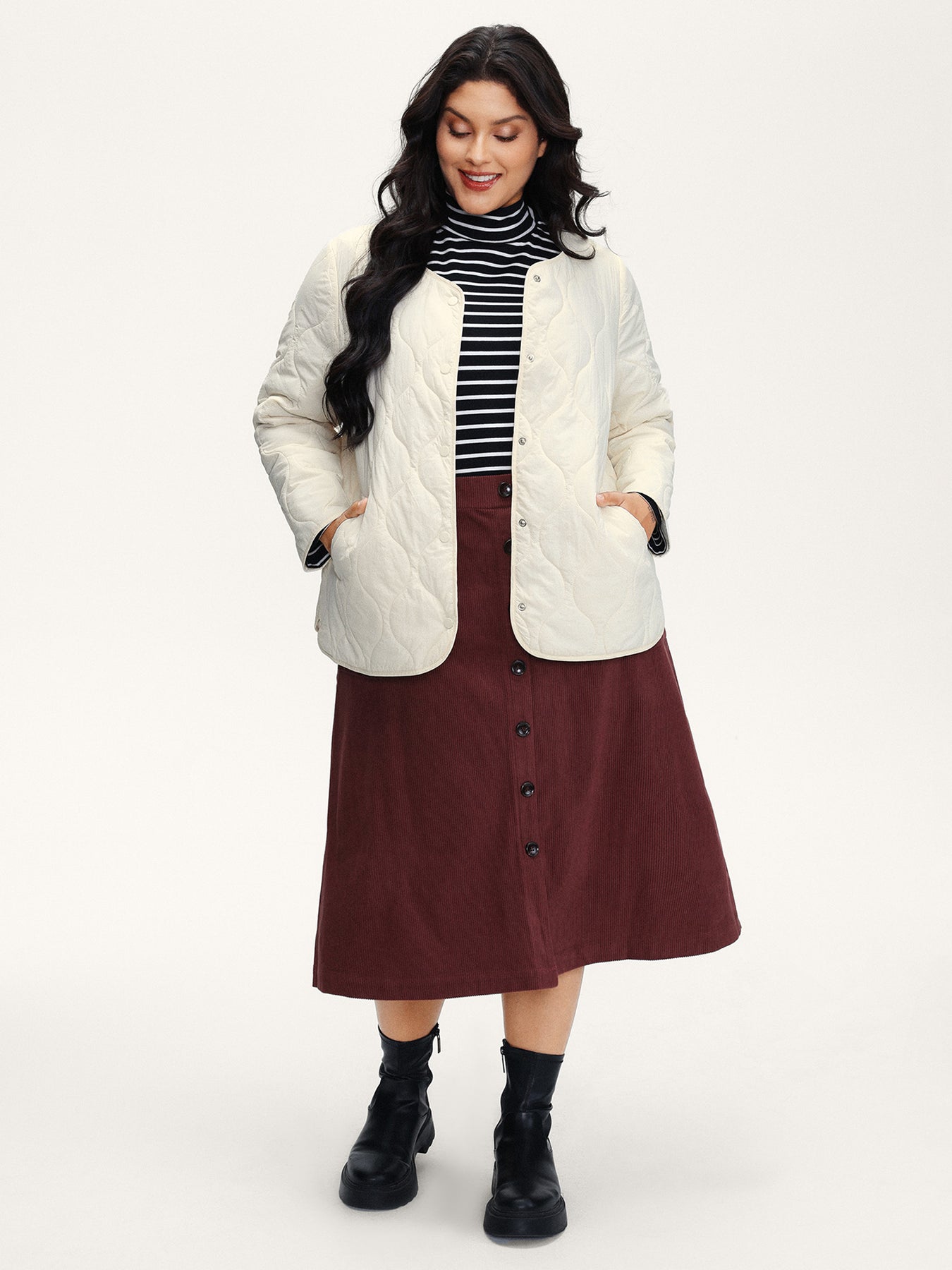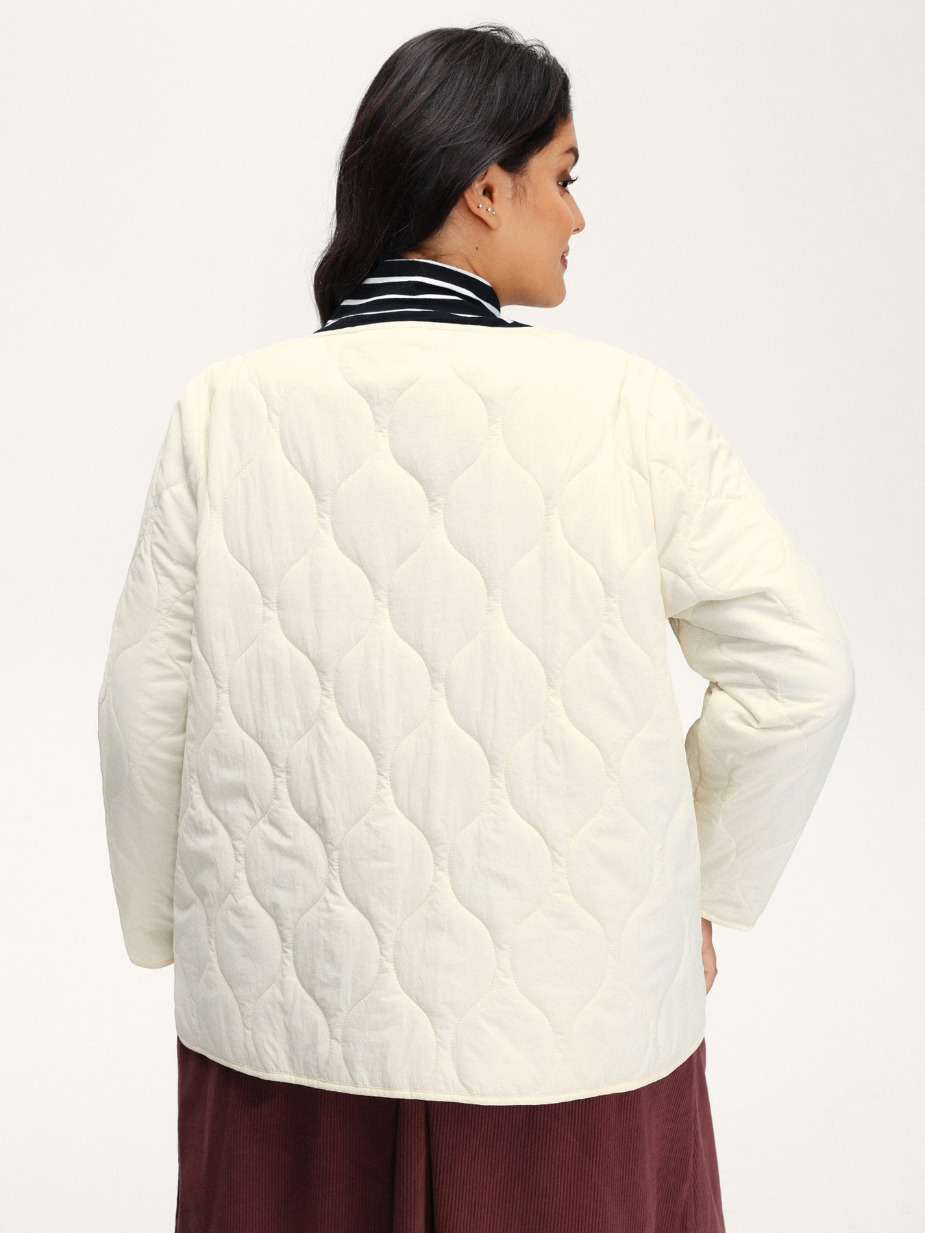 Quilted Cotton Button Round Neck Jacket