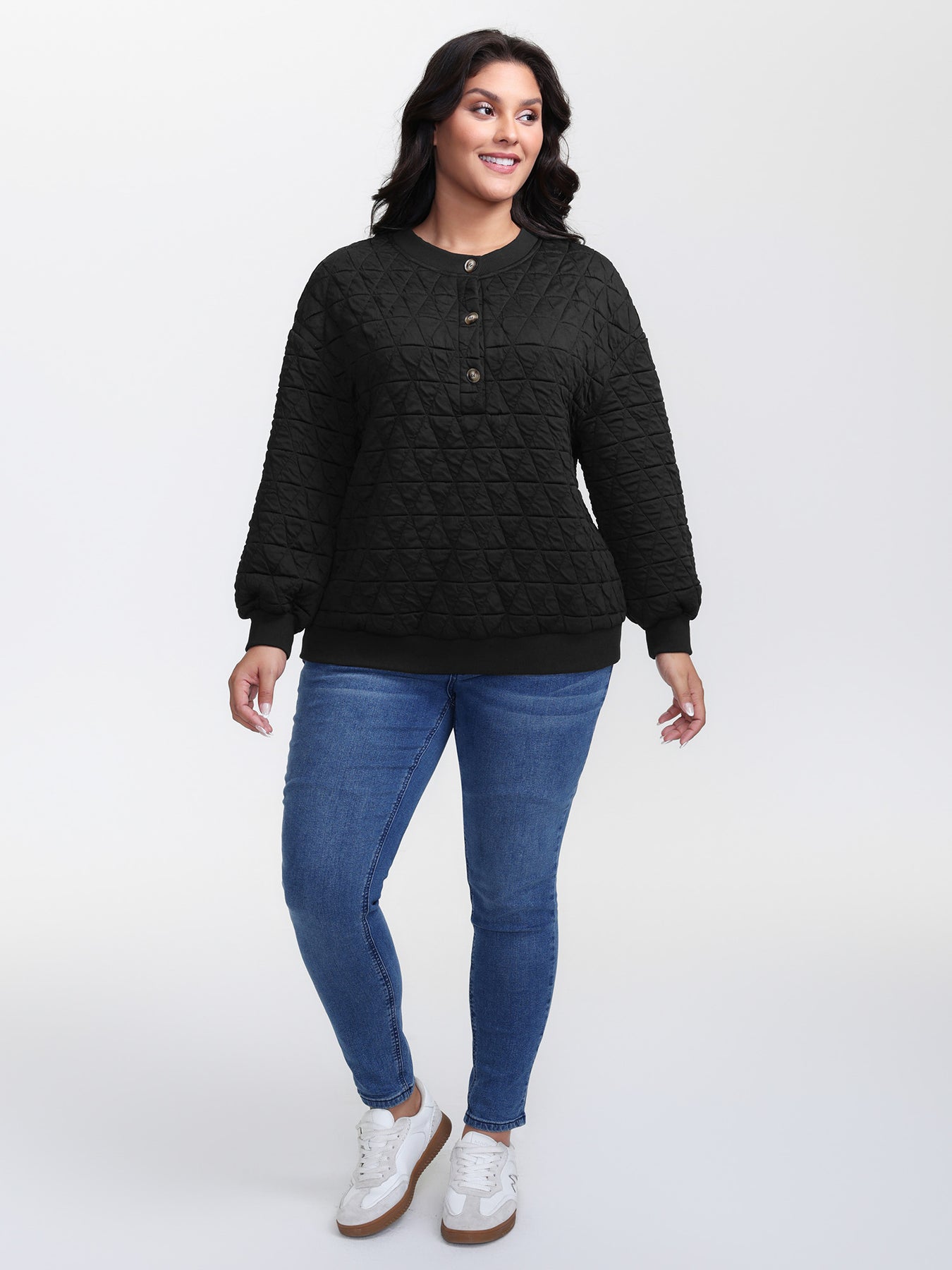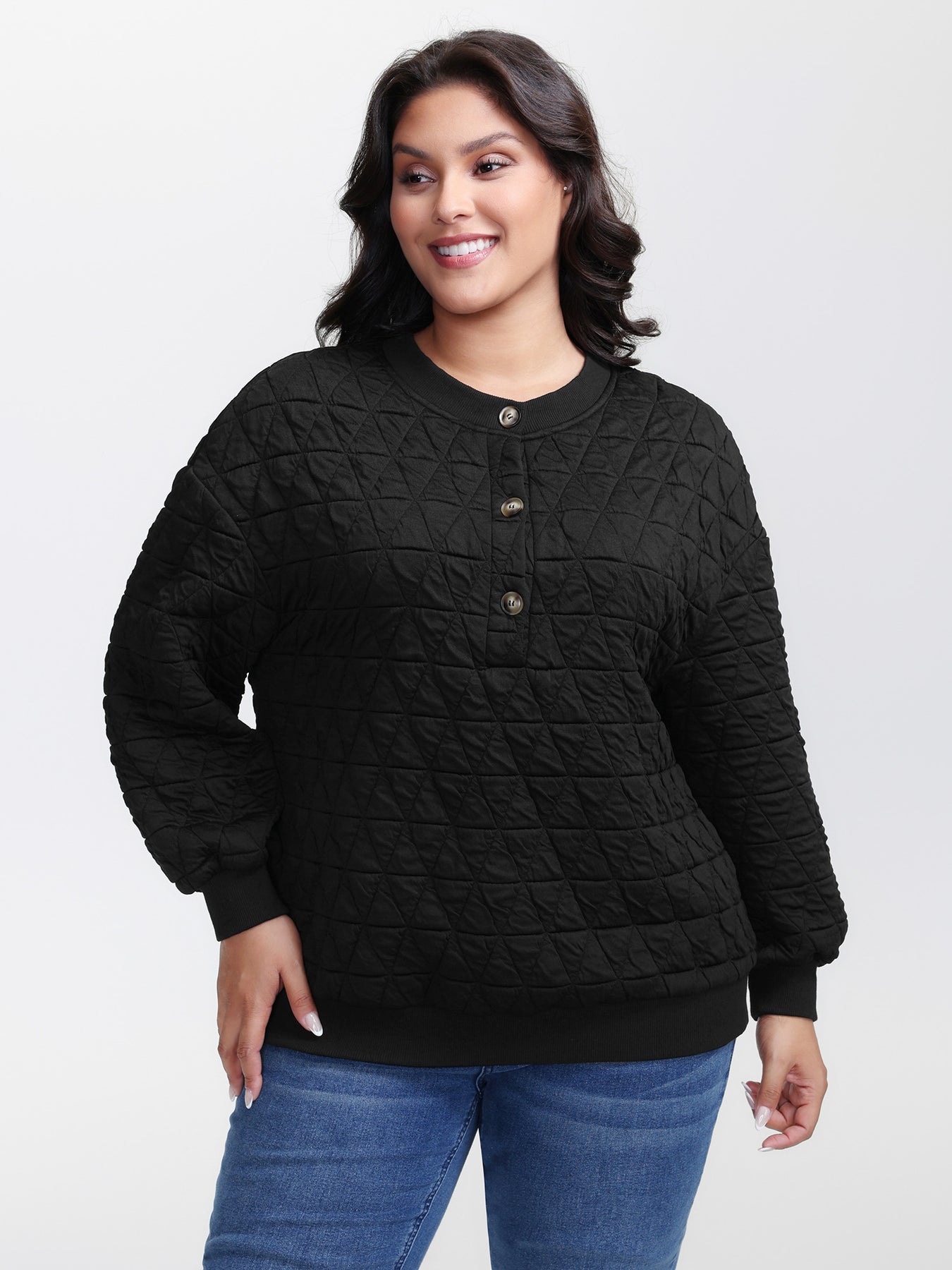 Quilted Cotton Placket Button Sweatshirt