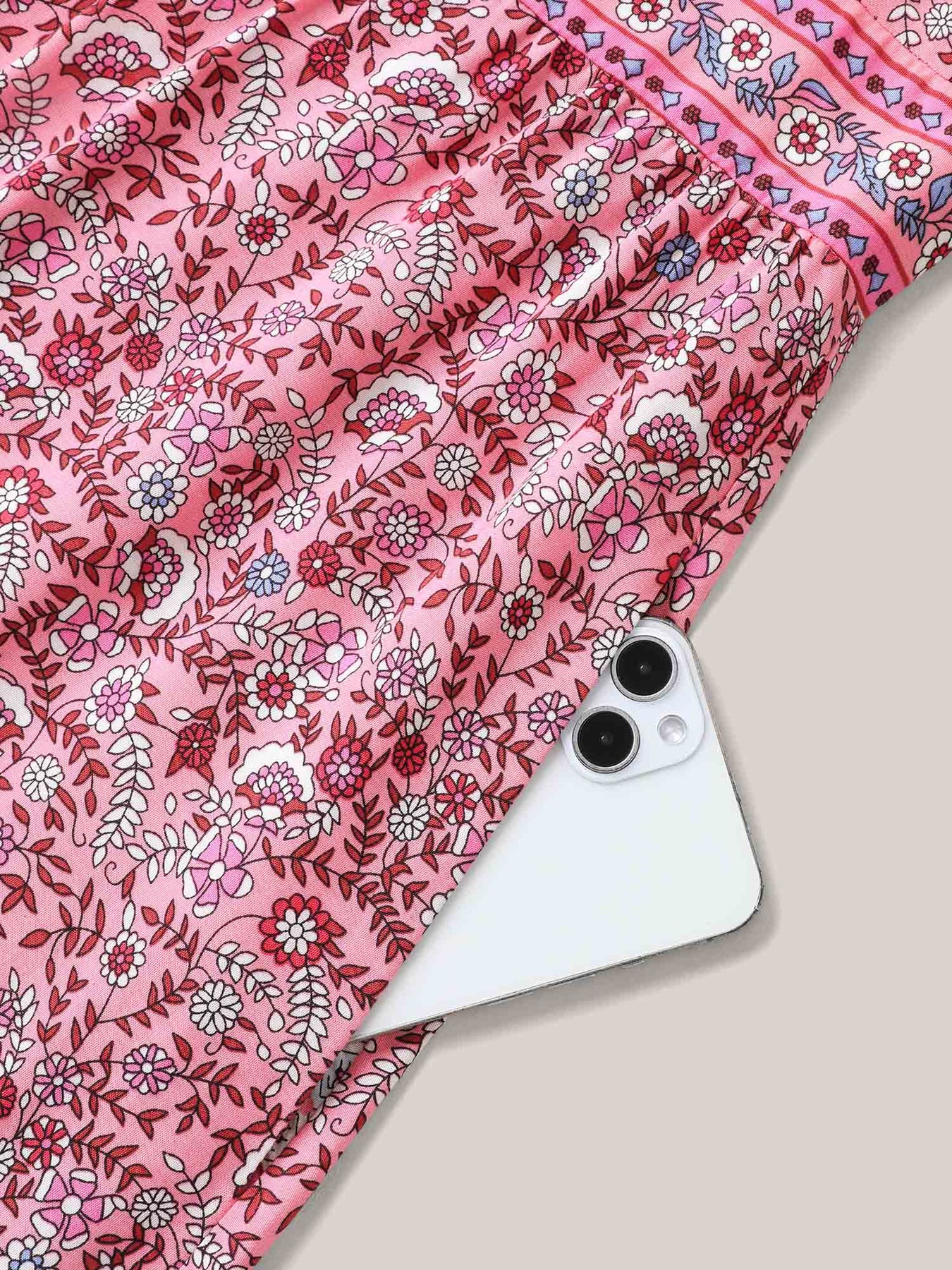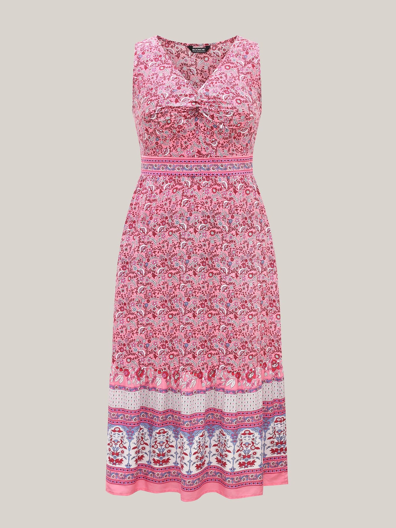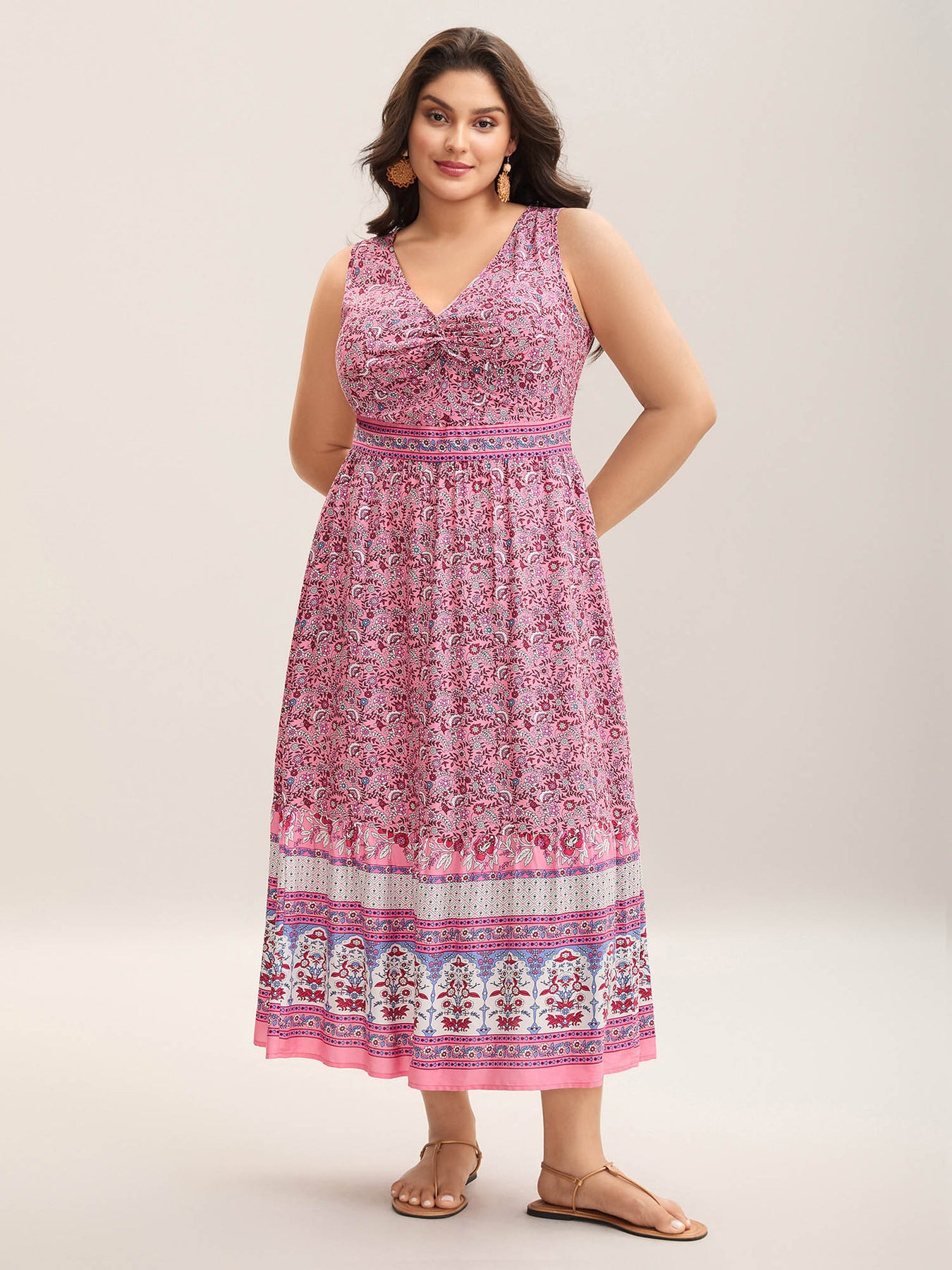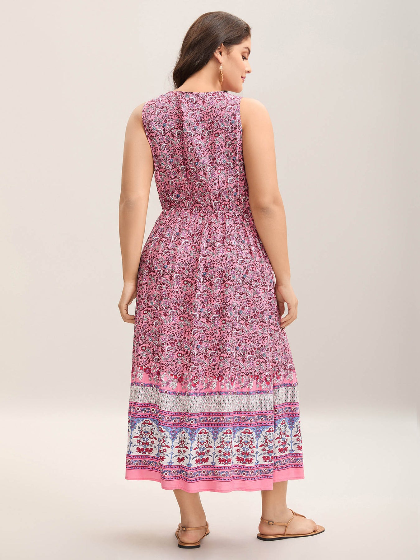Rayon Floral Print Stretchy Waist Maxi Dress