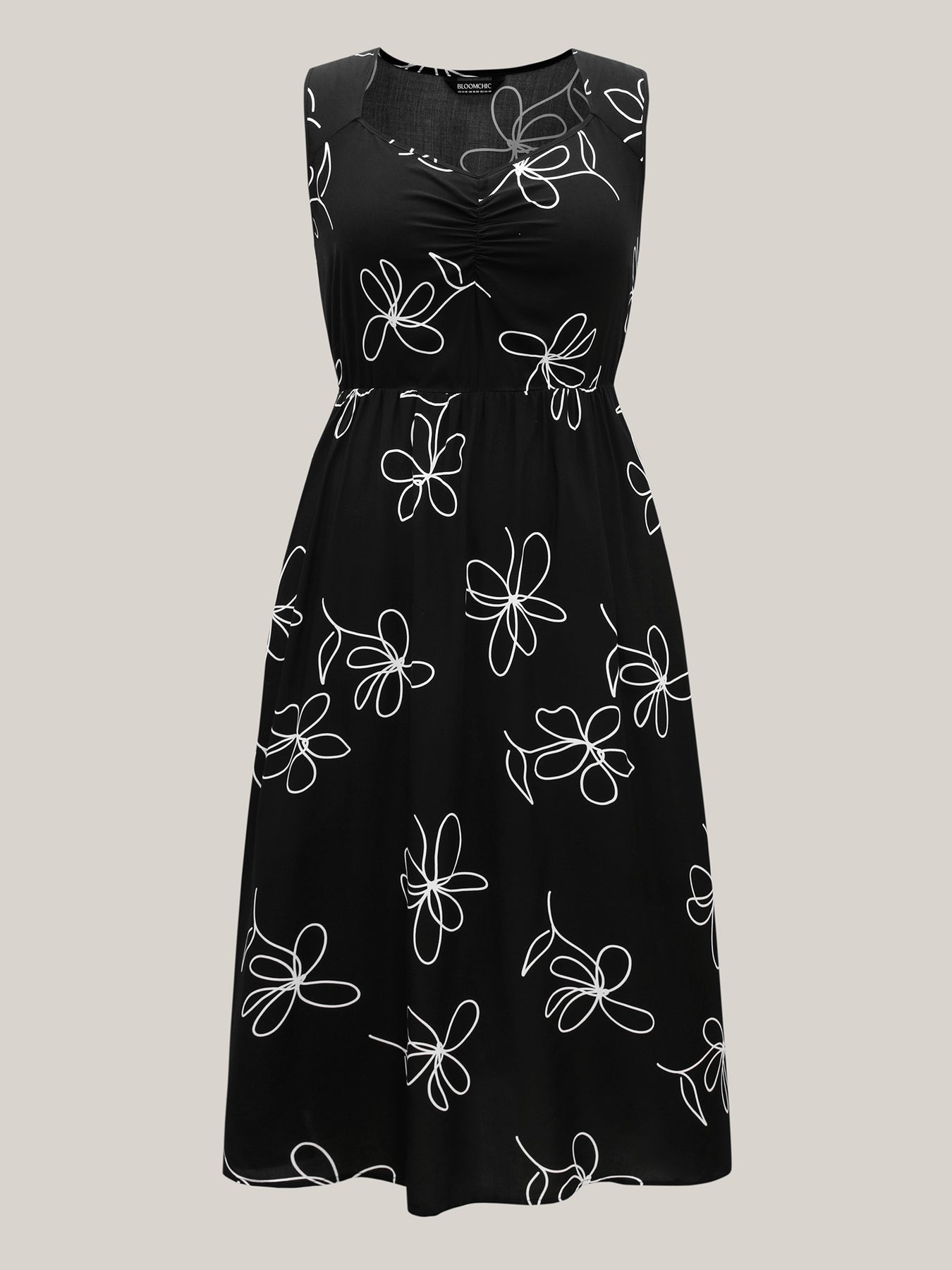 Rayon Floral Print Pockets Sleeveless Midi Dress