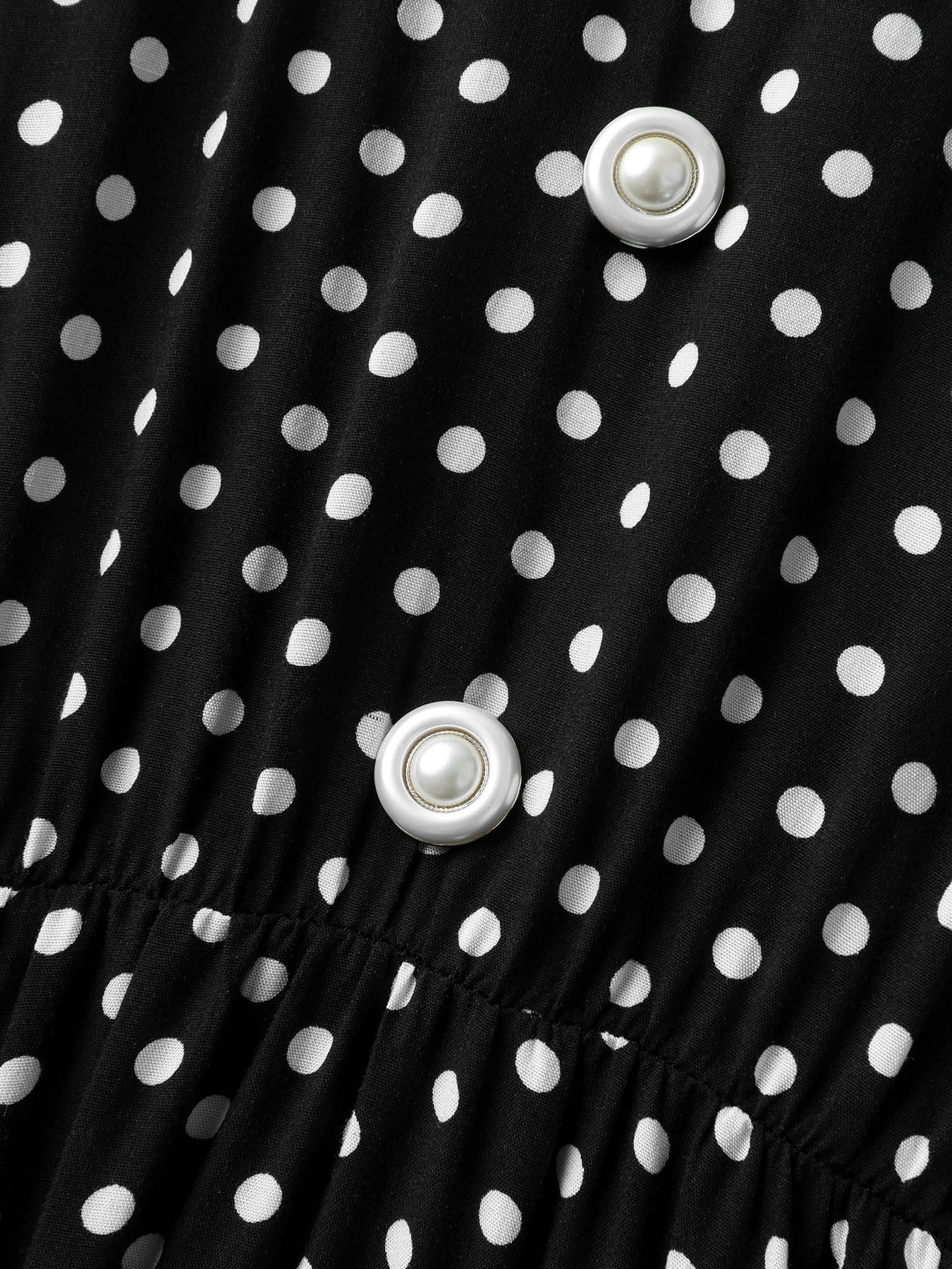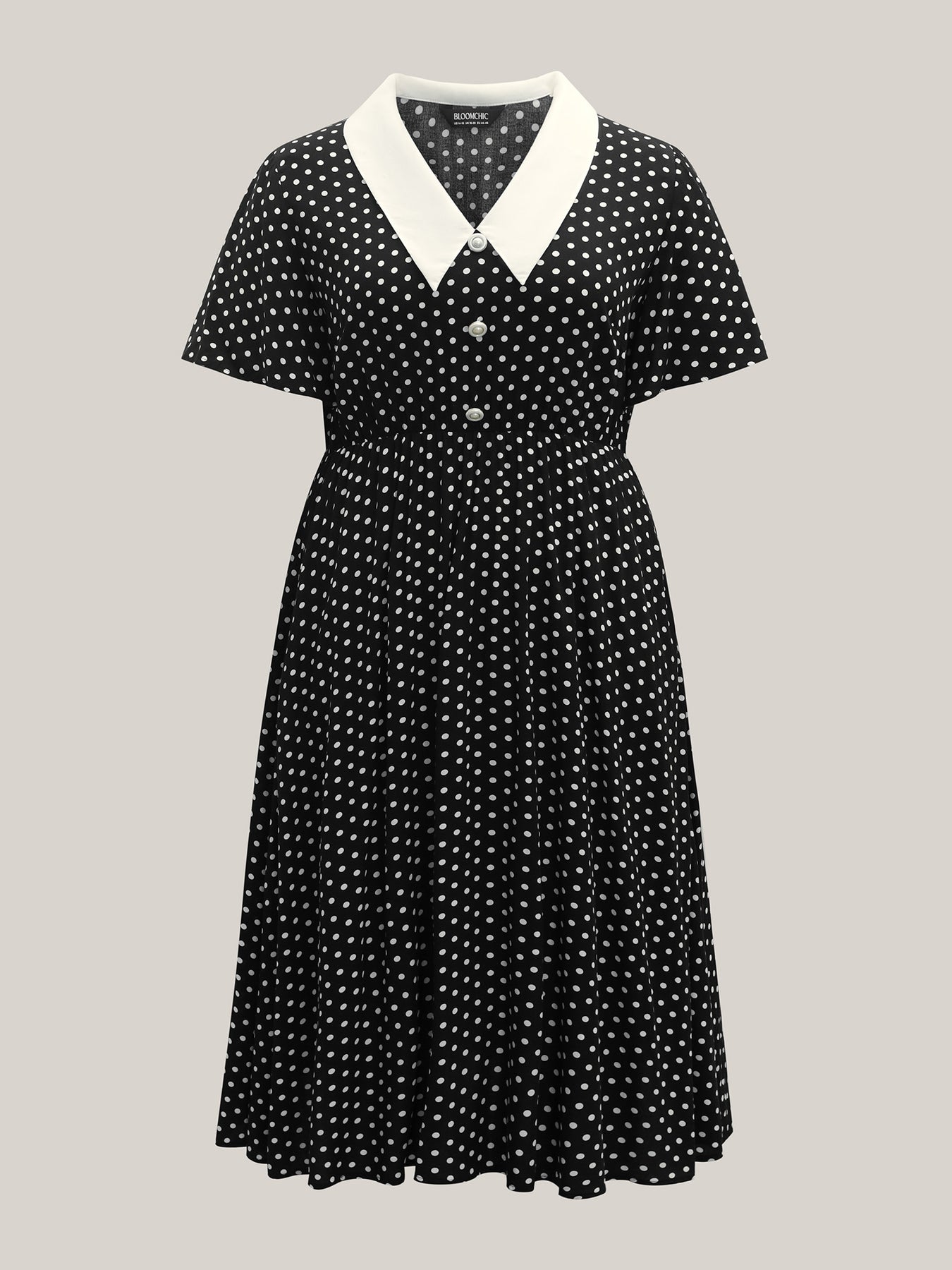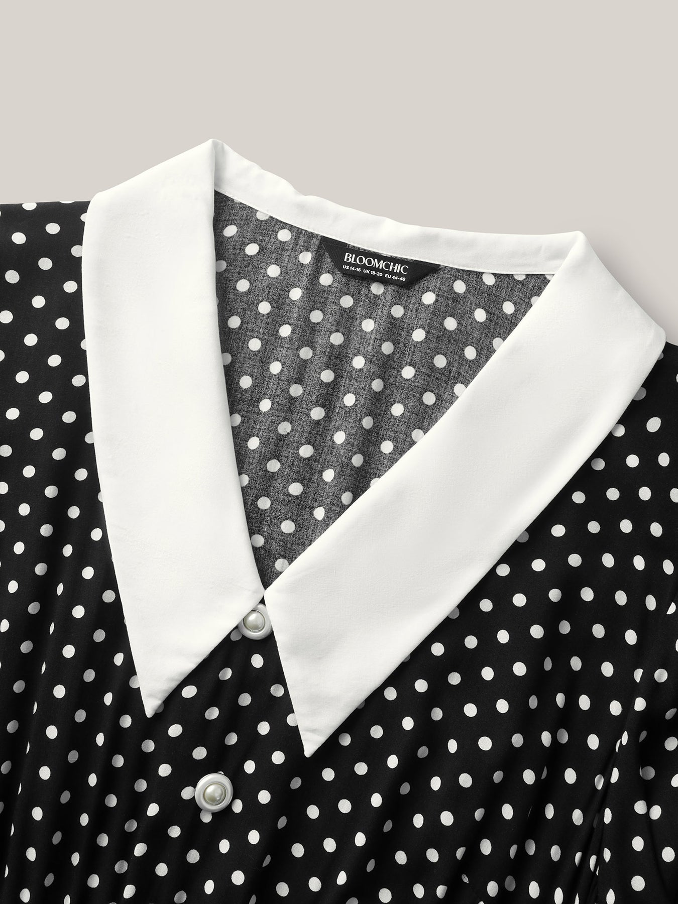 Rayon Pretty Polka Dots Lapel Collar Dress