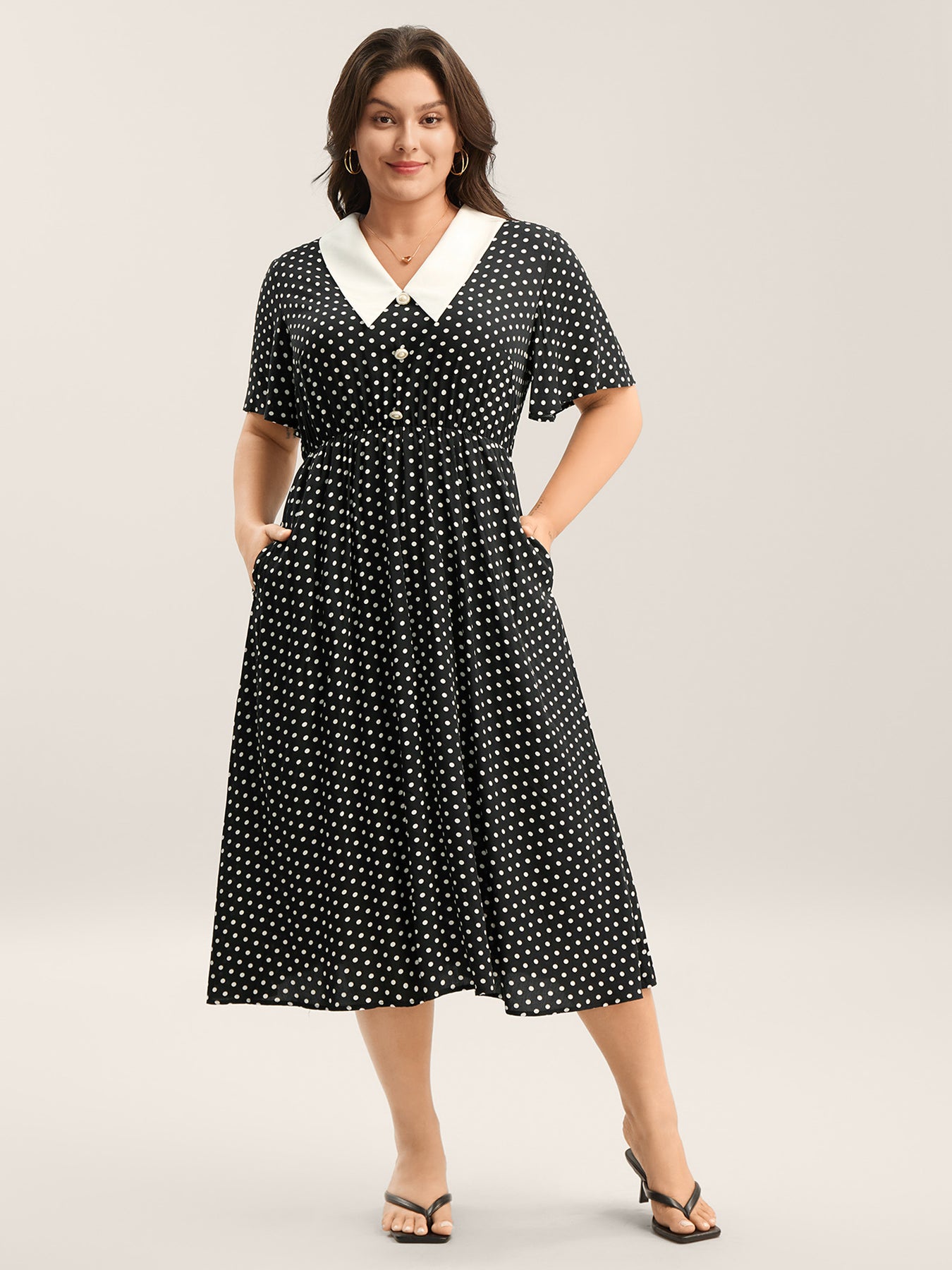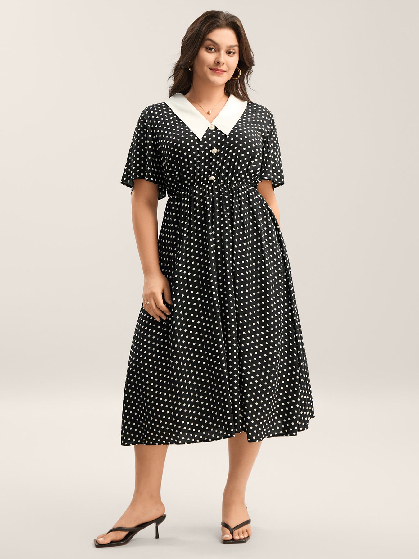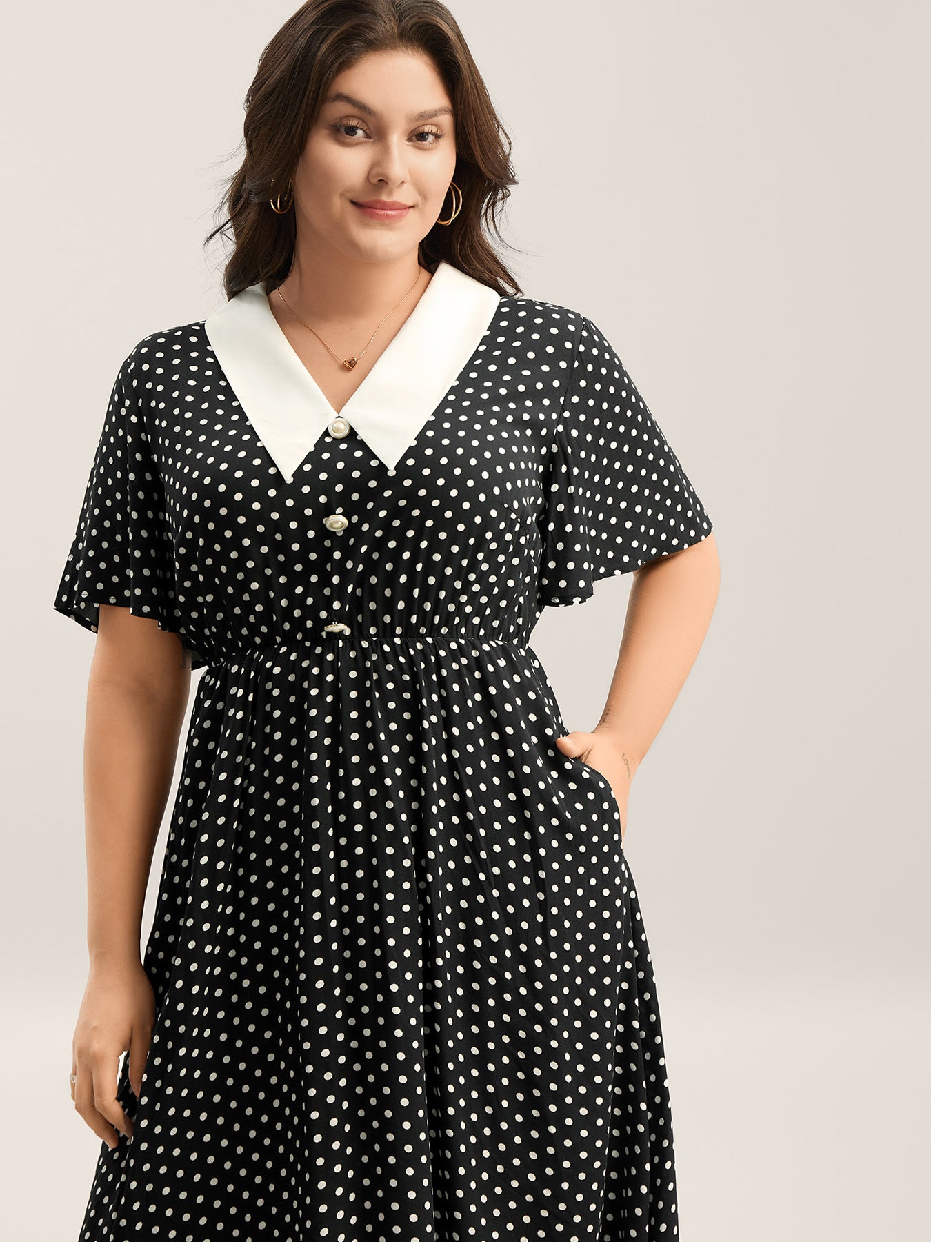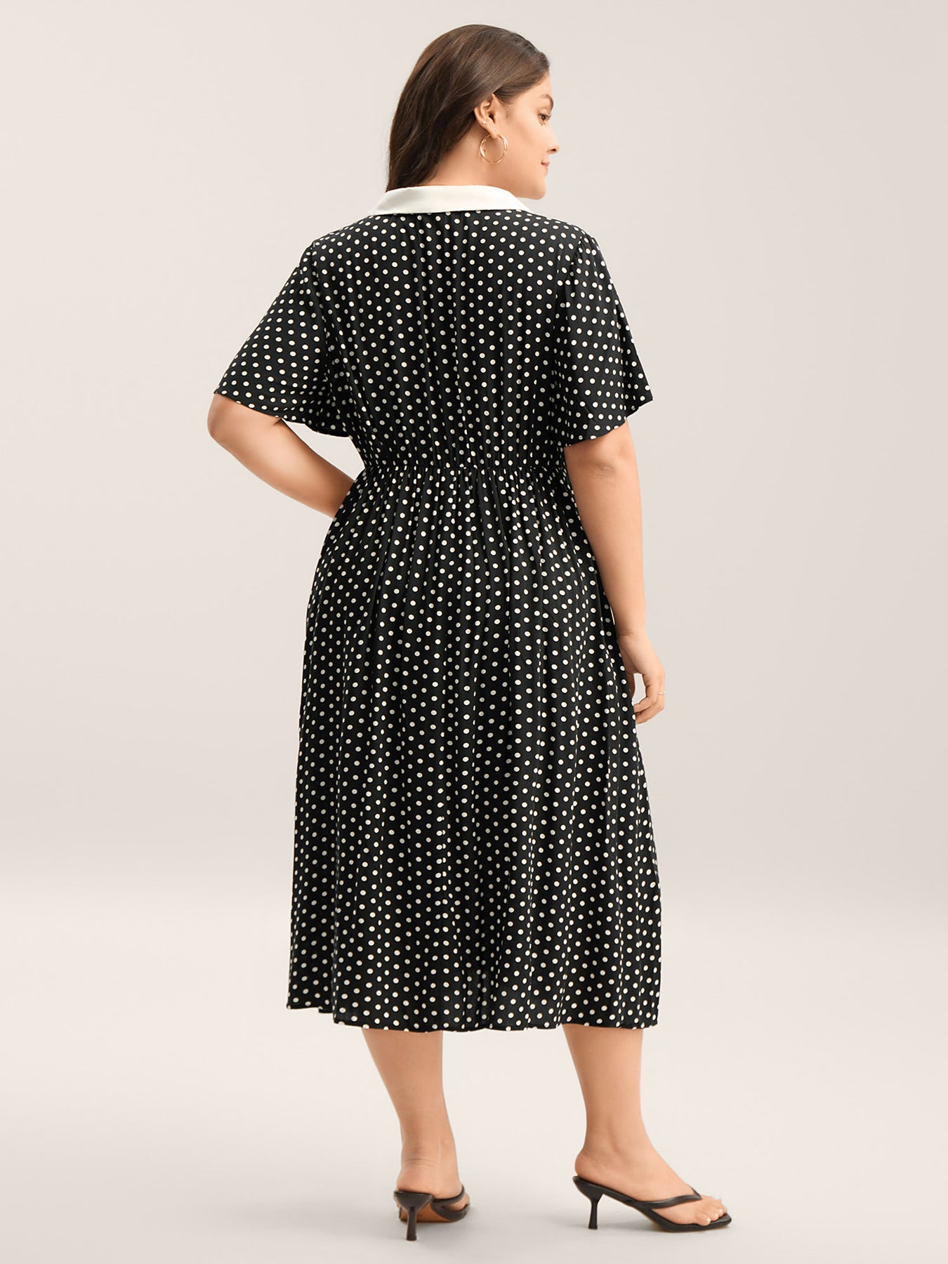 Rayon Pretty Polka Dots Lapel Collar Dress