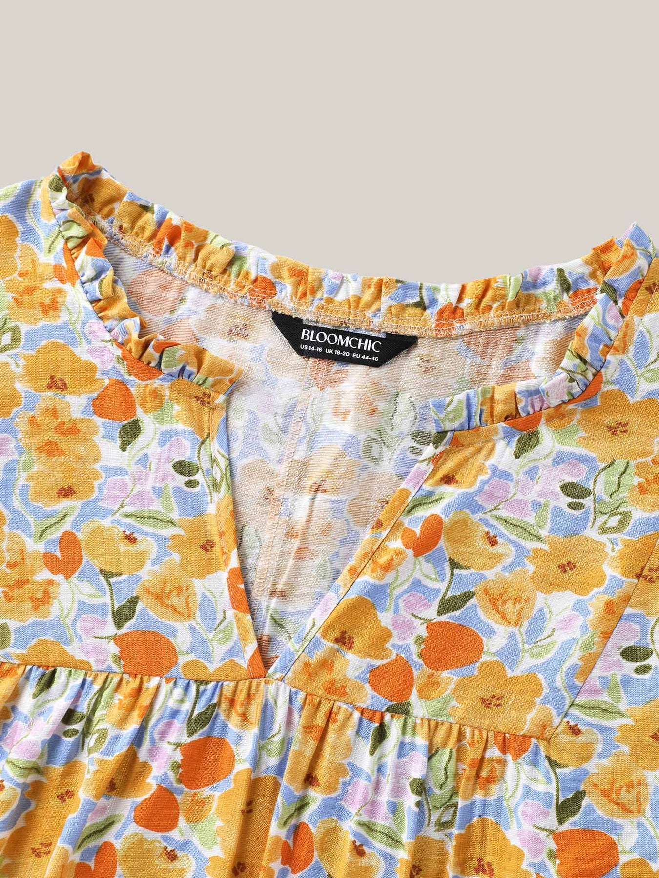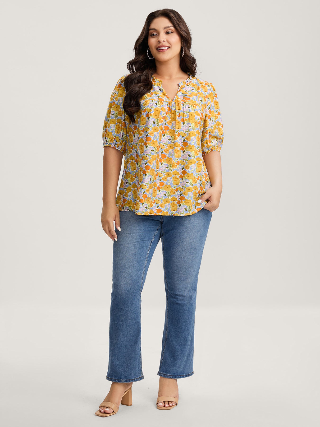 Rayon Ruffled Notched Collar Blouse