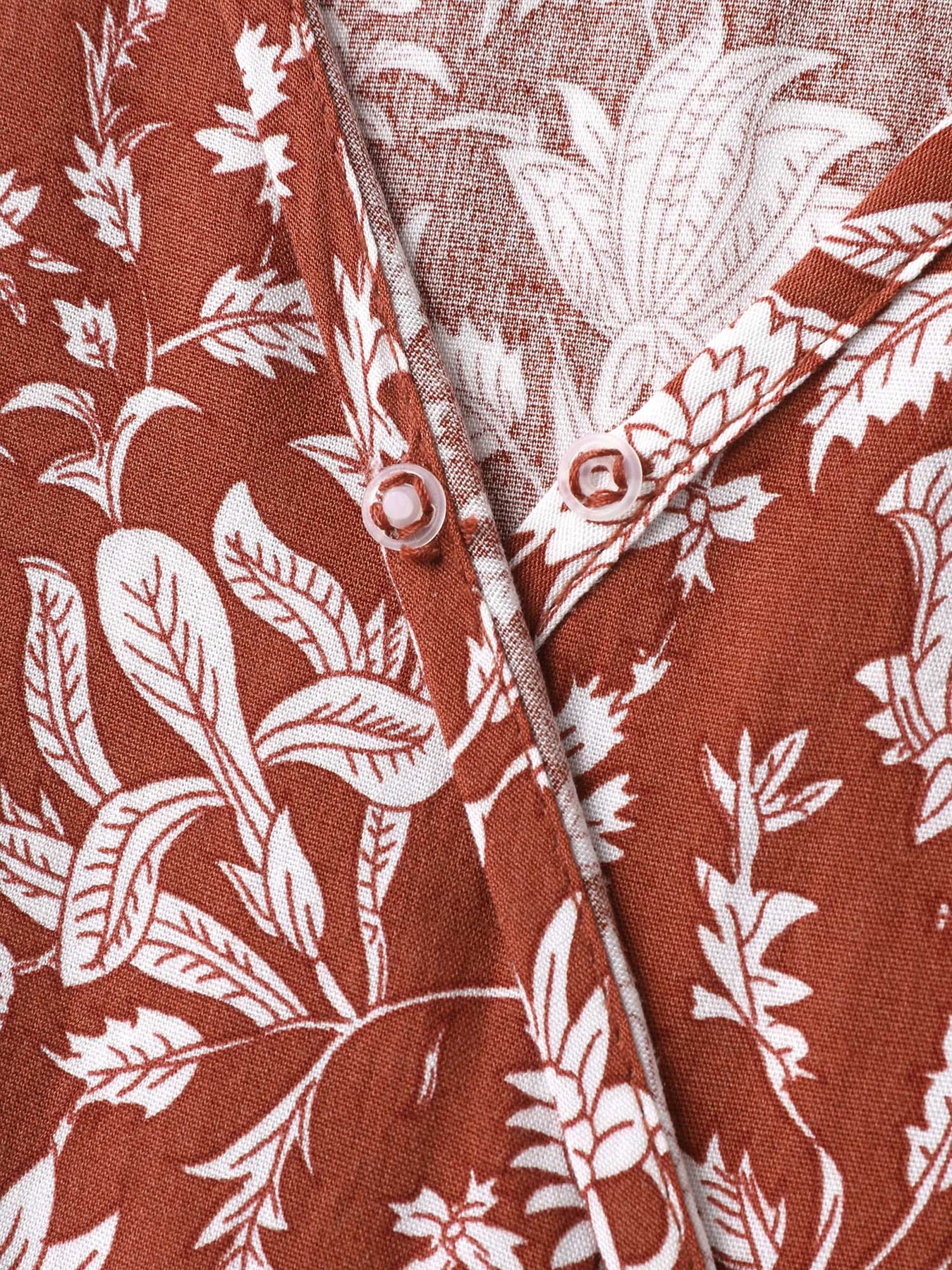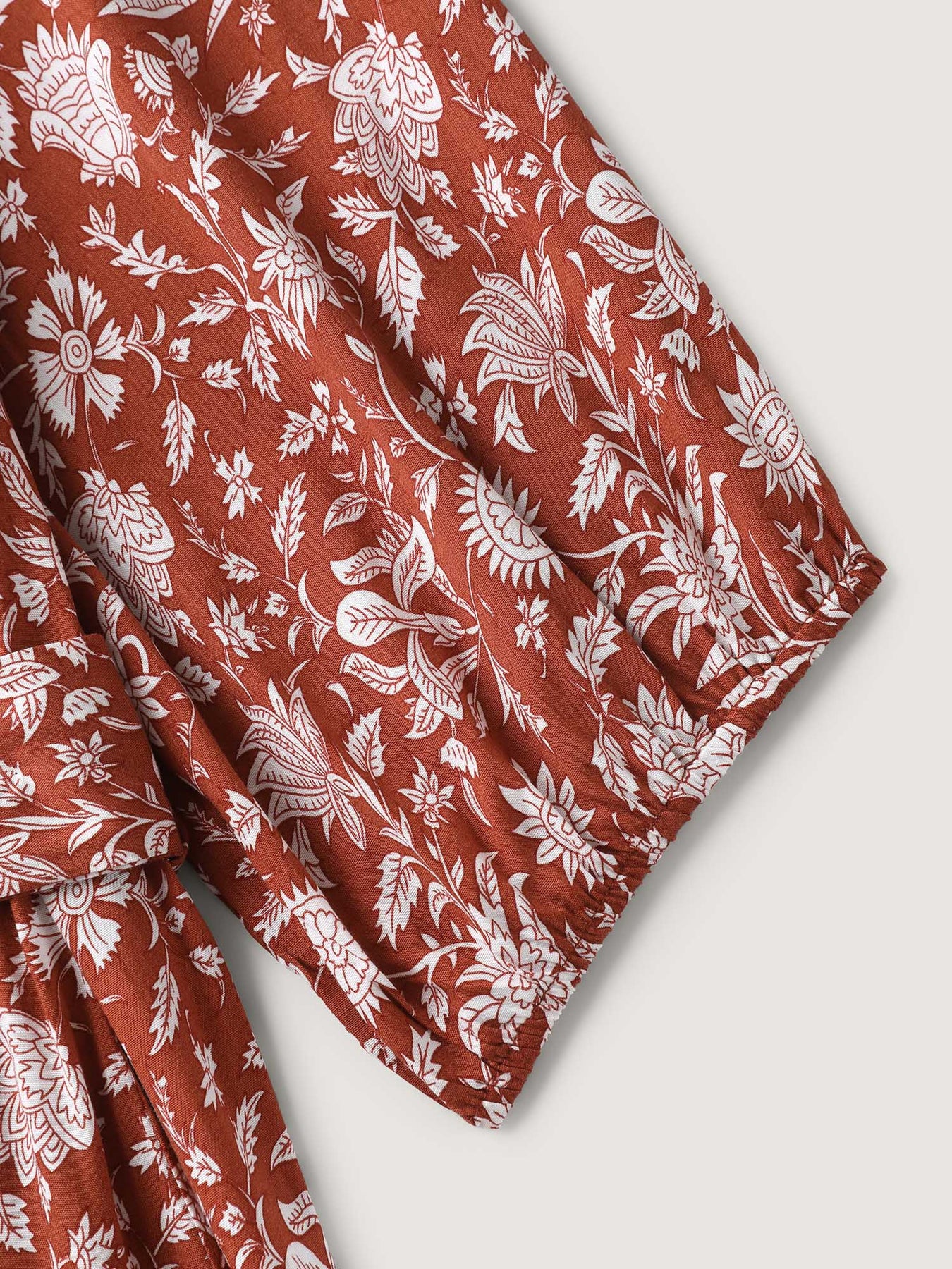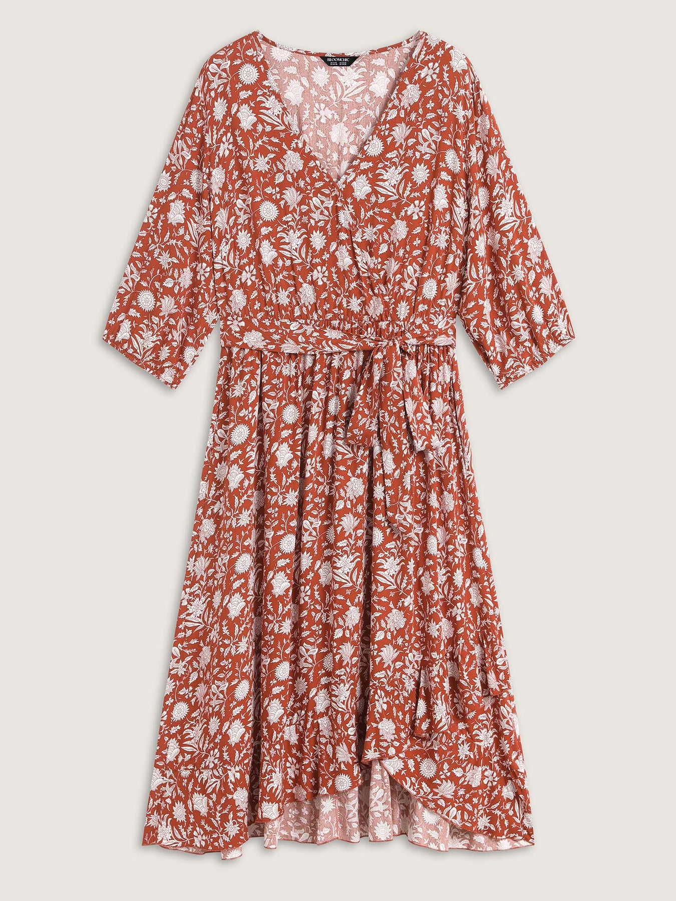 Rayon Silhouette Flower Side-Tie Midi Dress