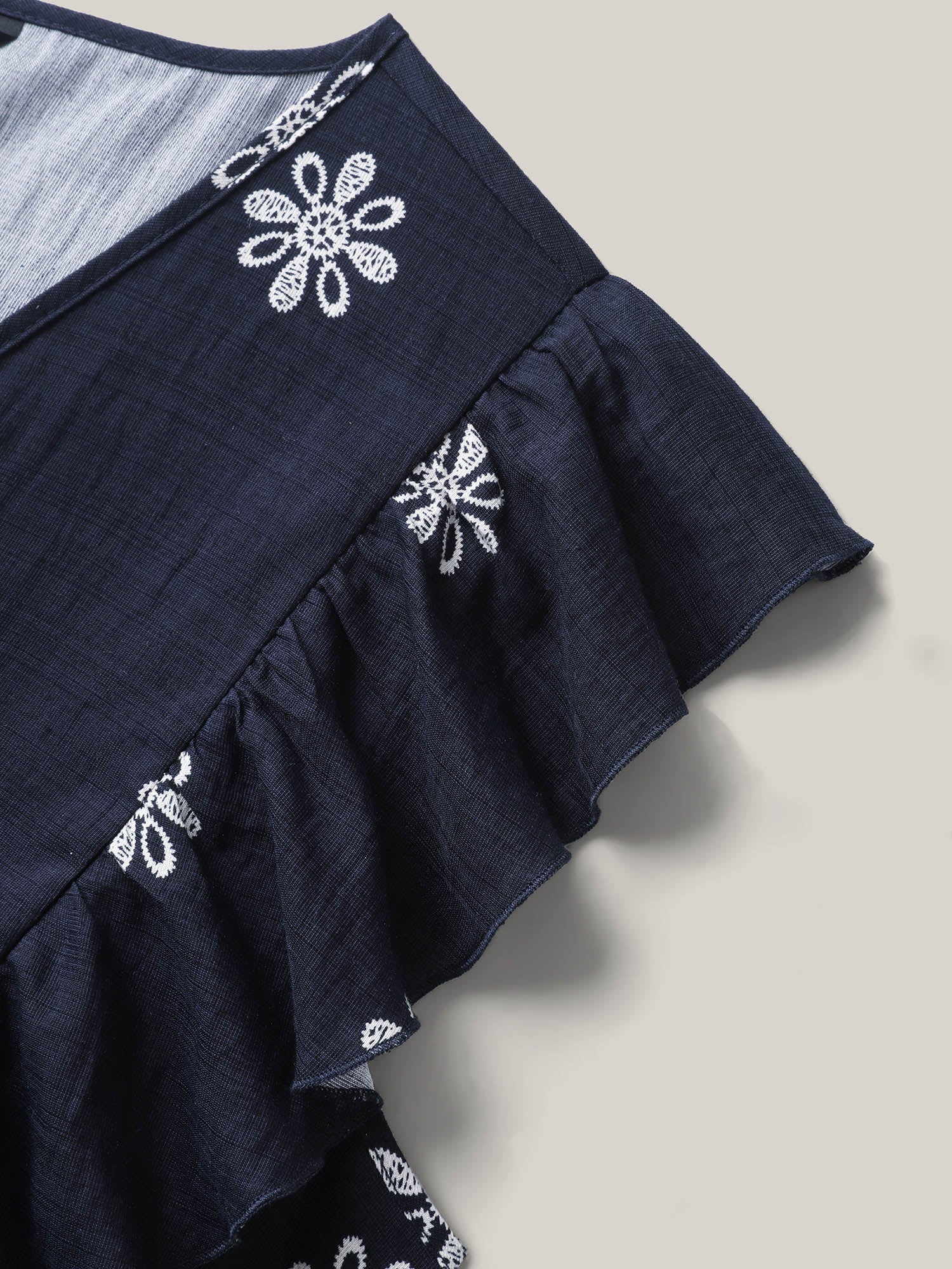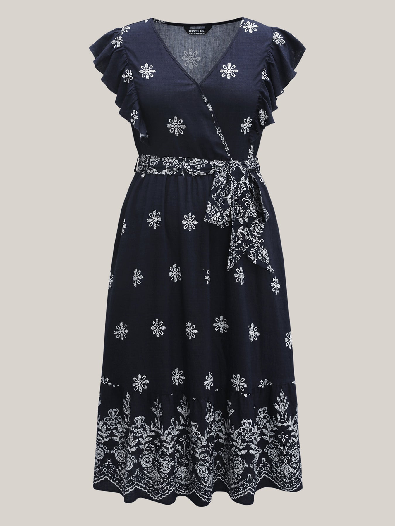 Rayon Stretchy Waist Pockets Flutter Midi Dress