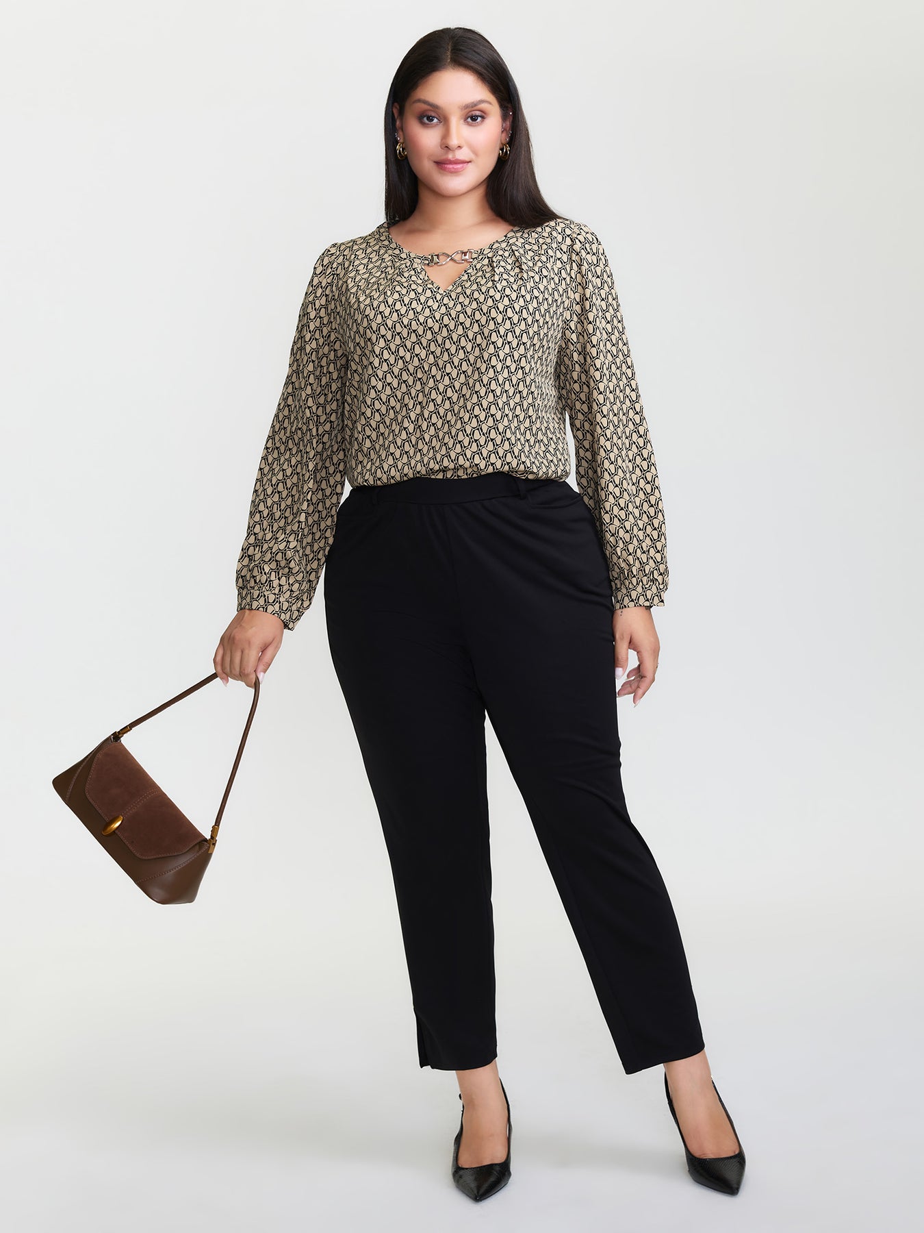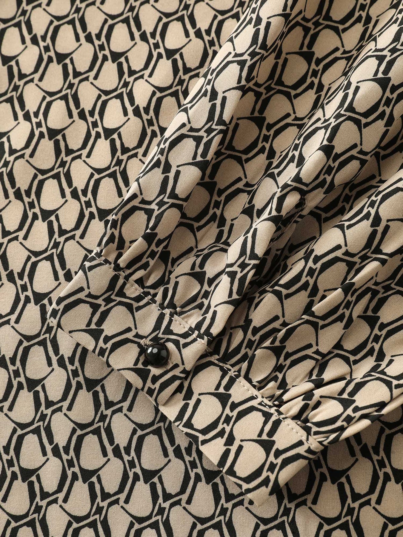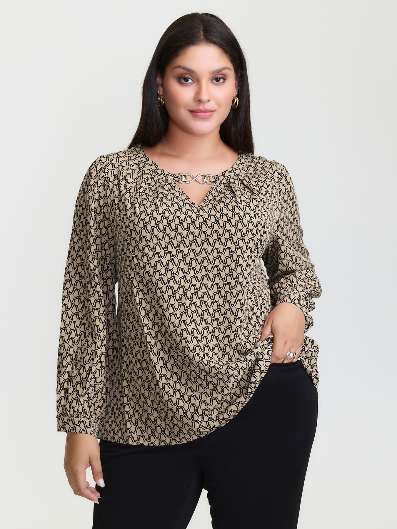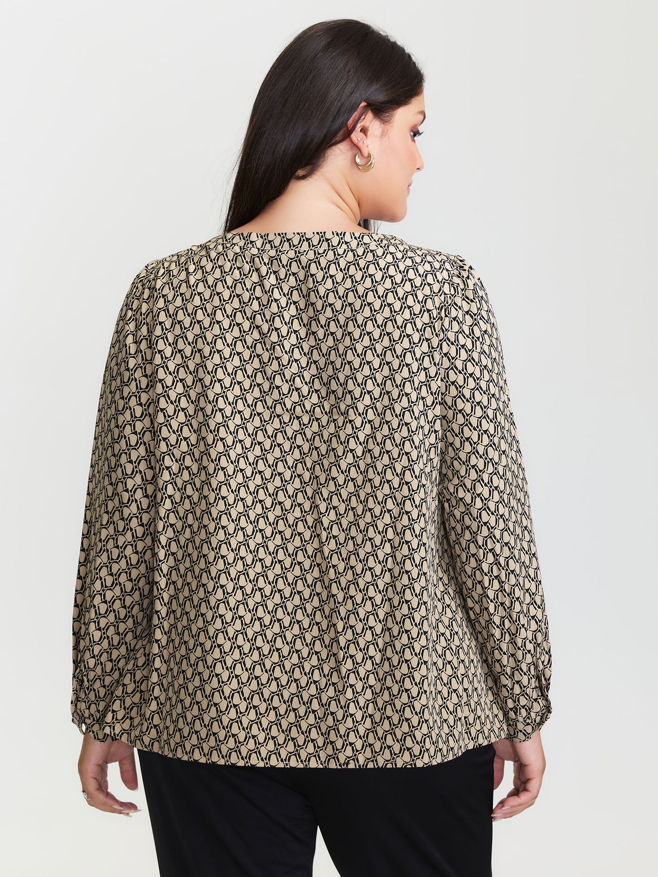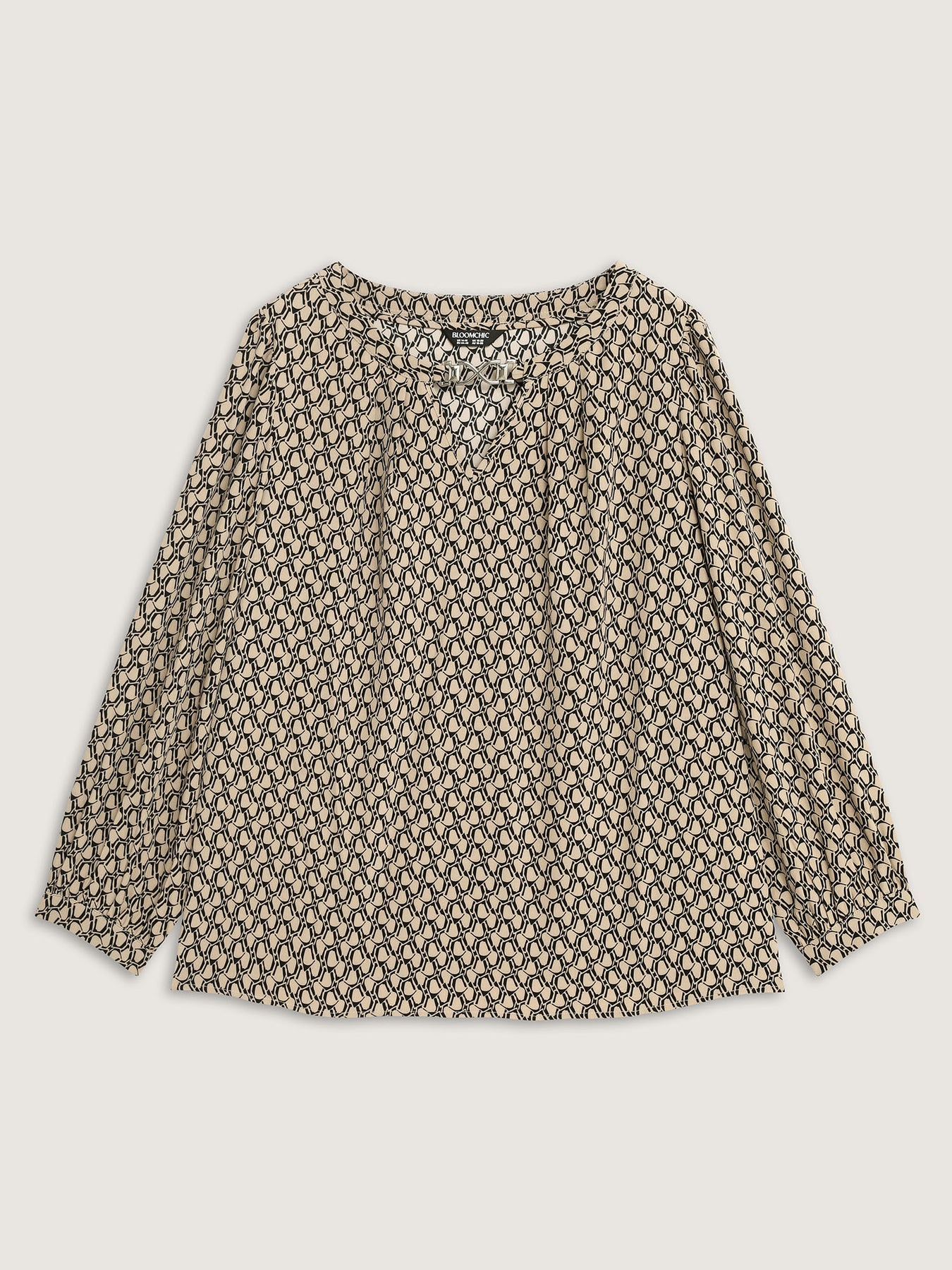 Retro Geometric Print Metallic Detail Blouse