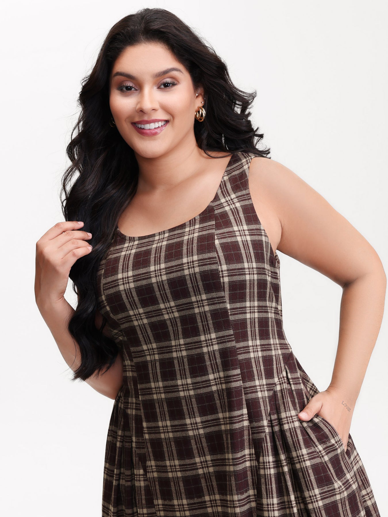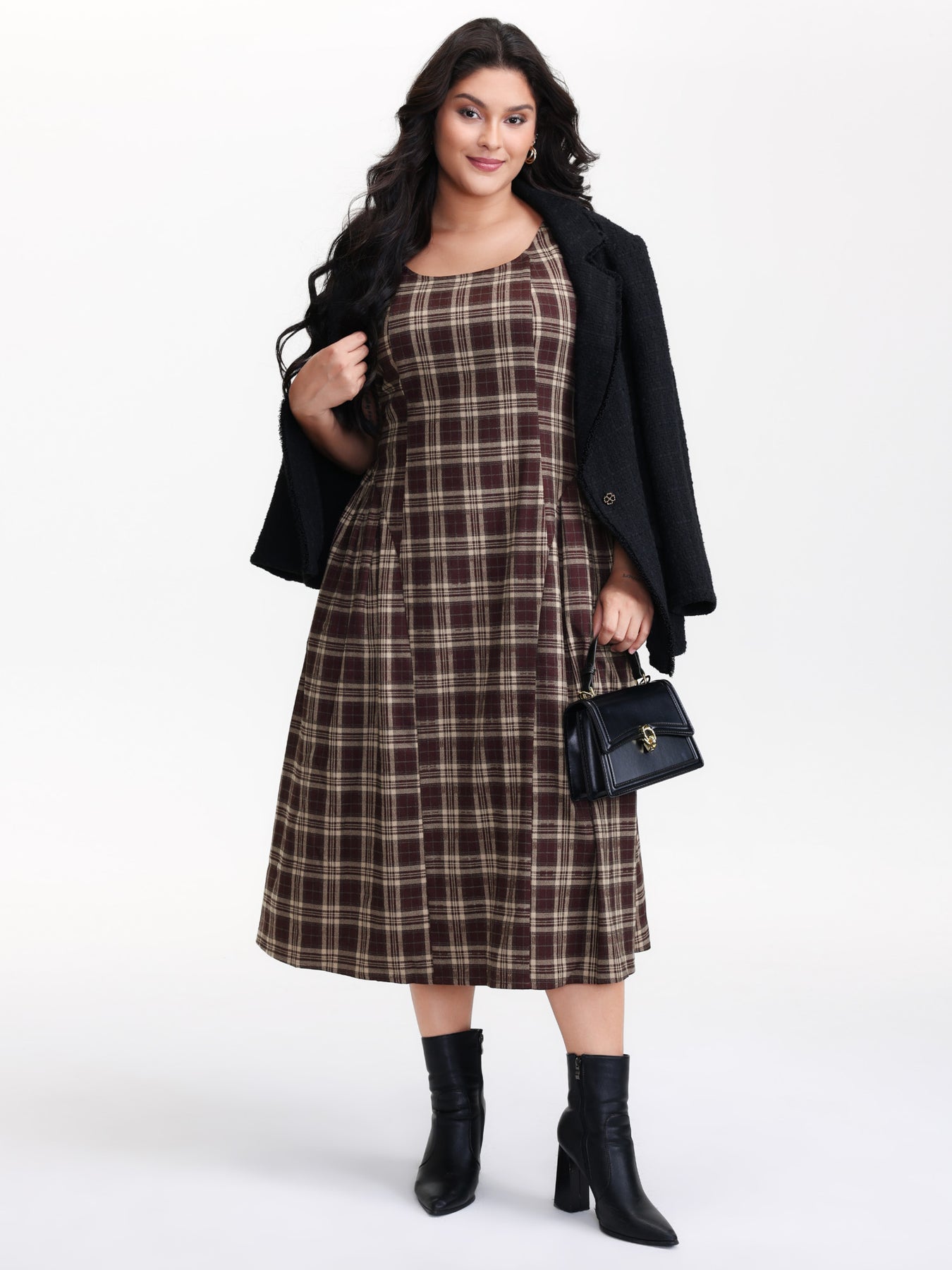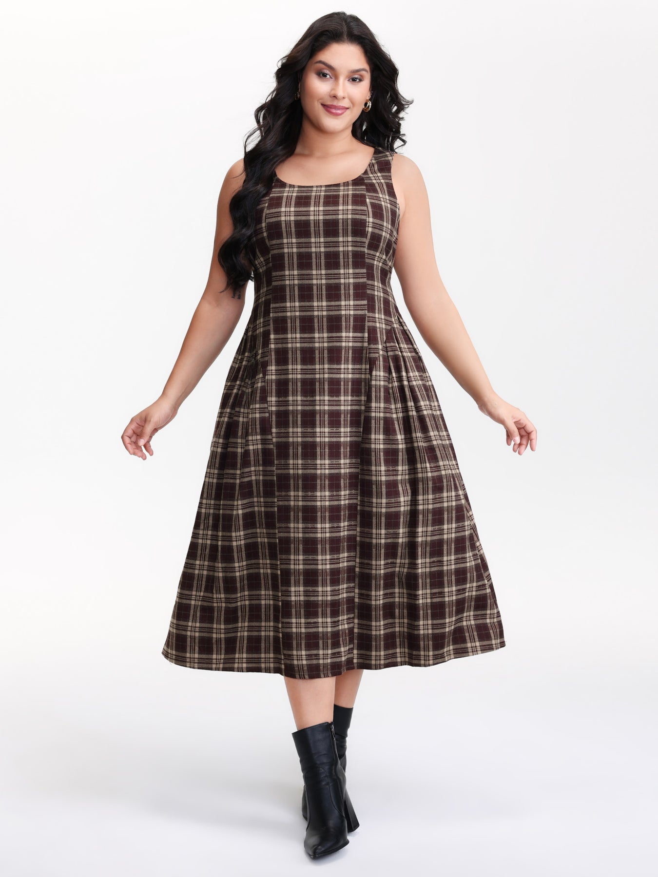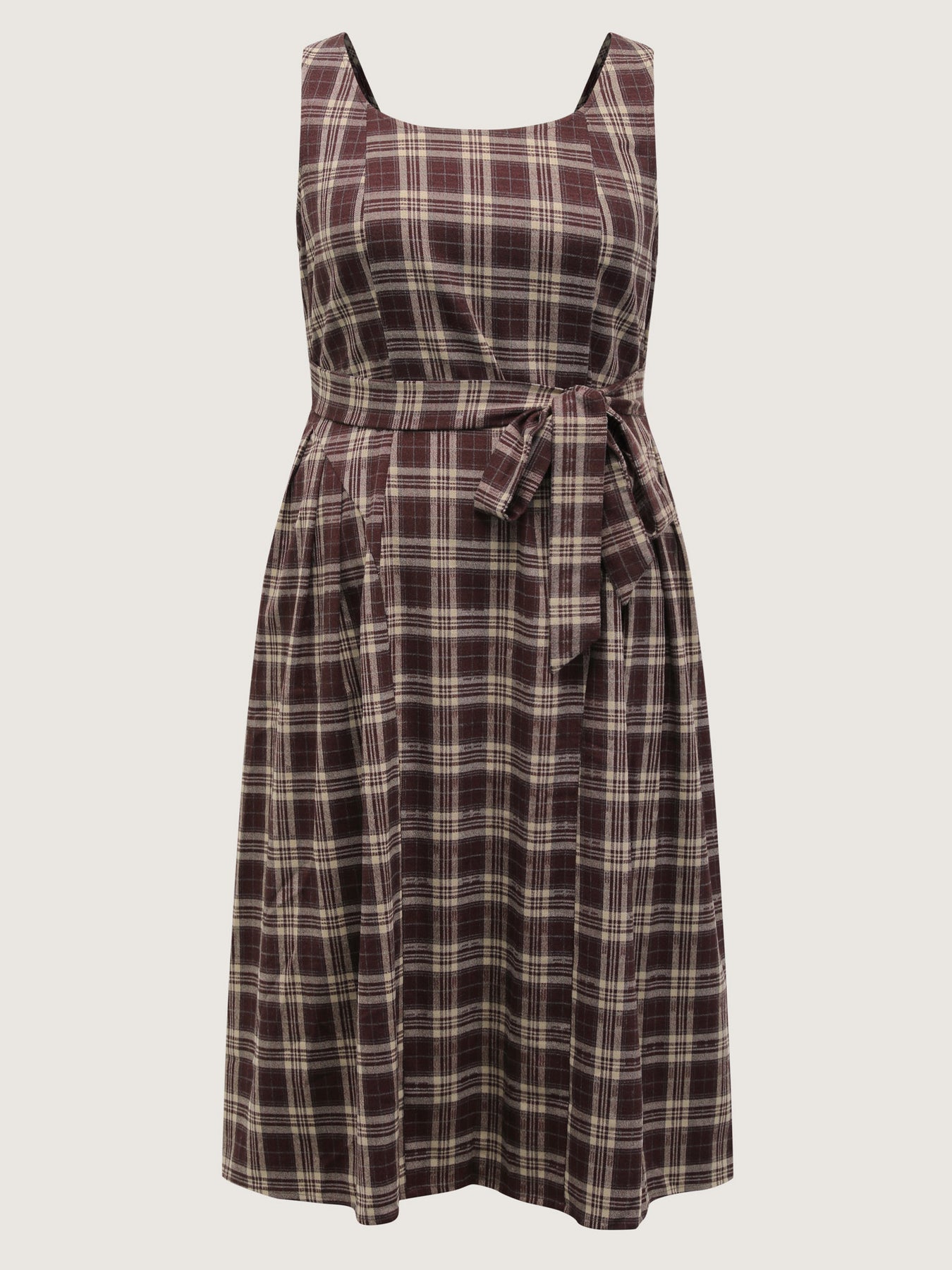 Retro Plaid Drop Waist Tie Midi Dress