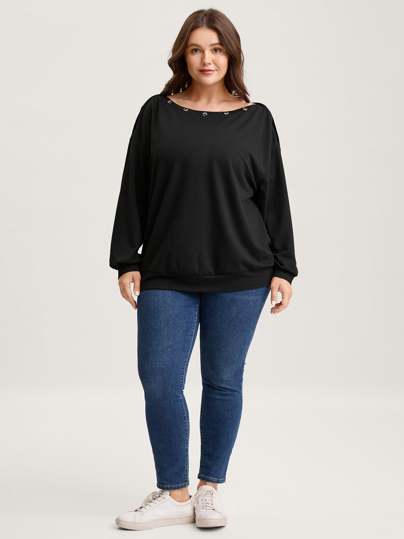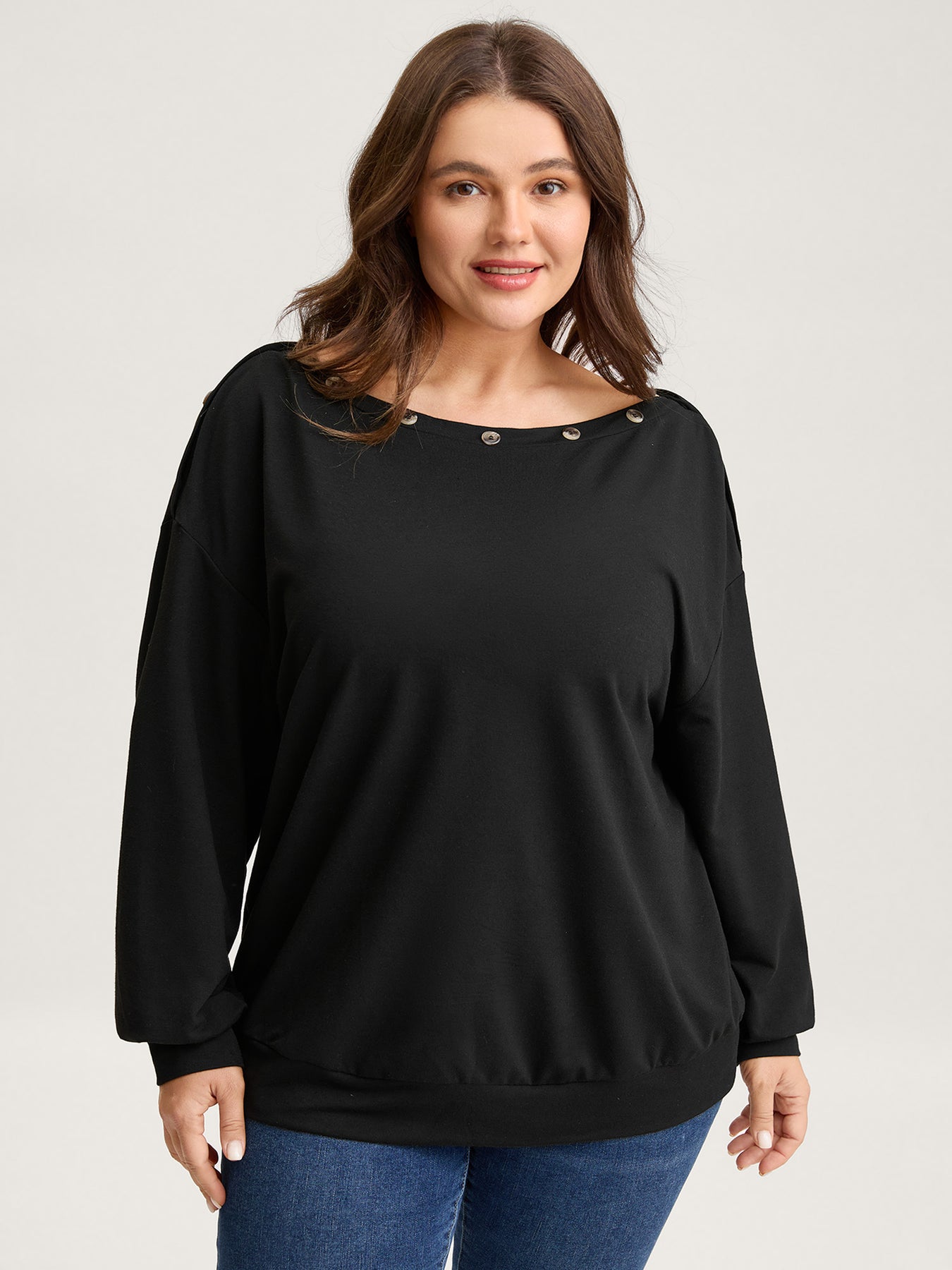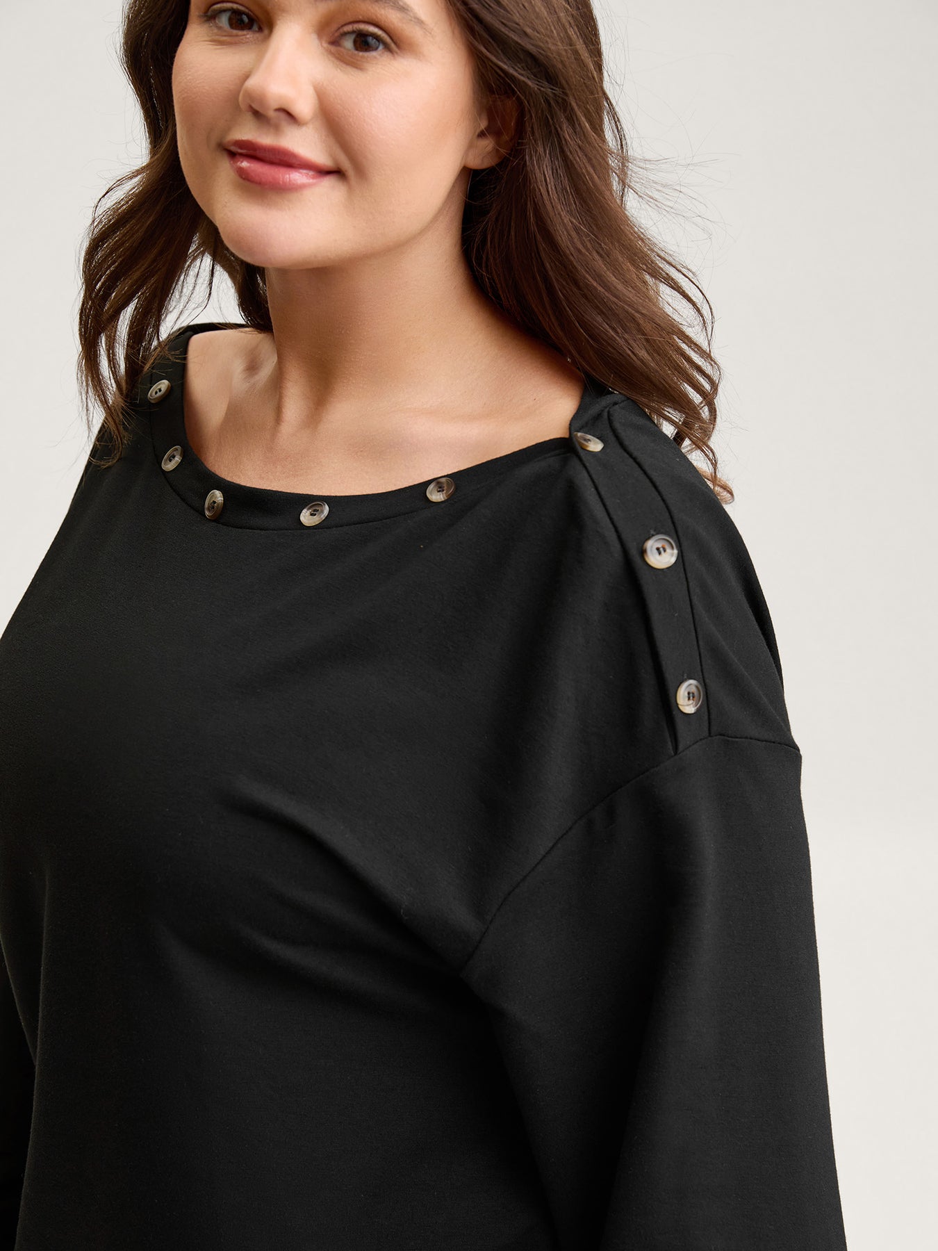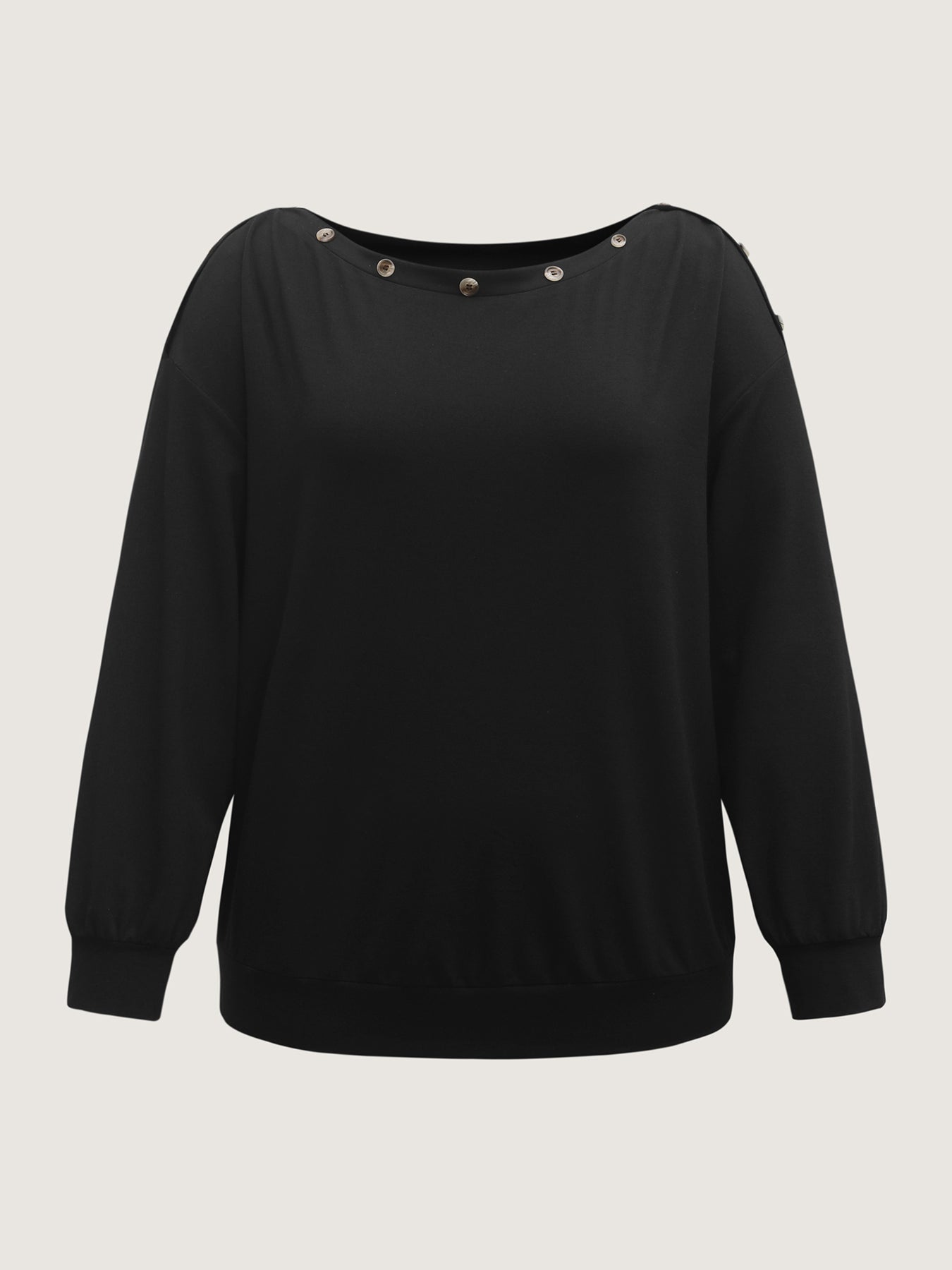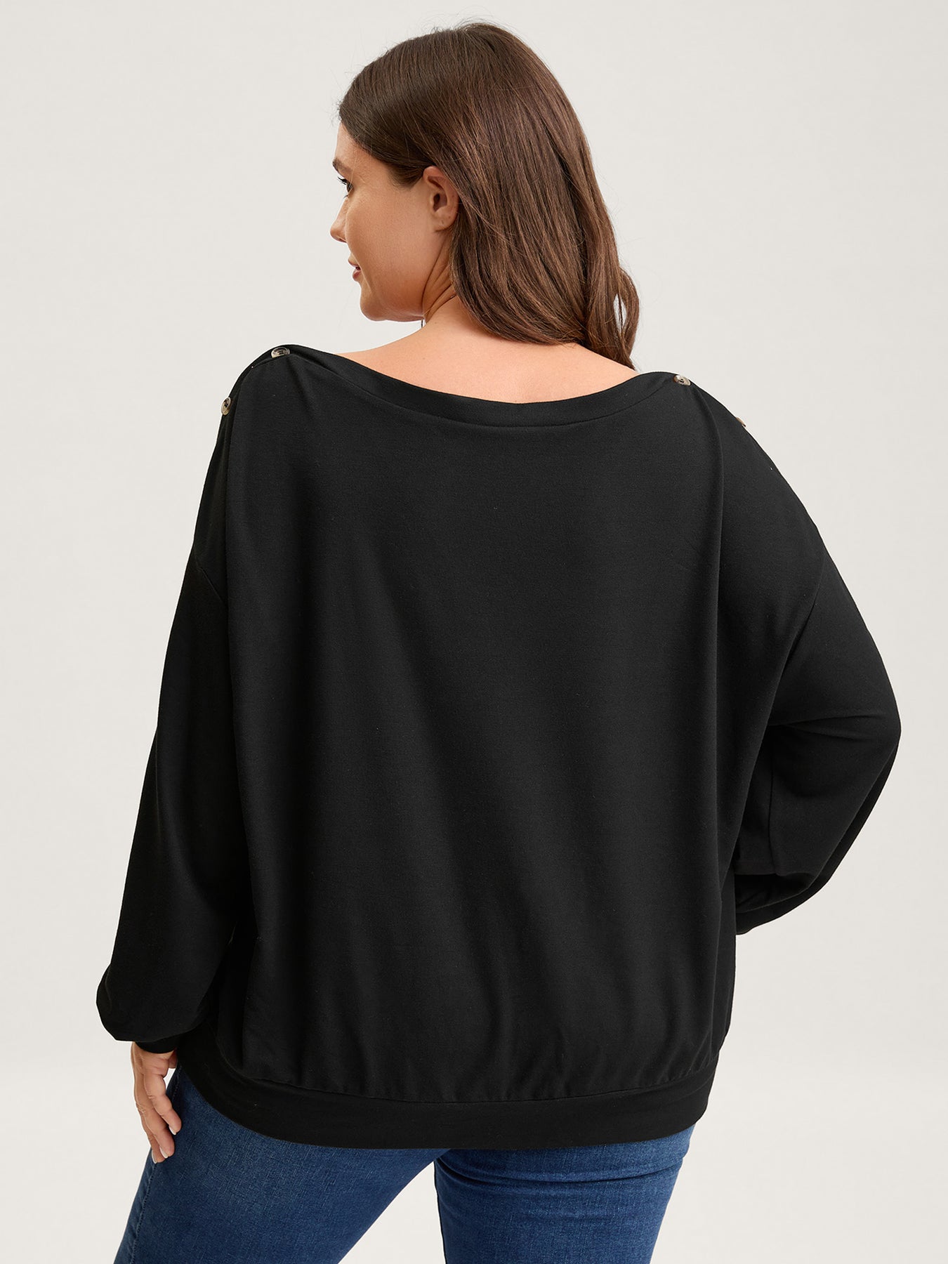 Reversible Off-Shoulder Button Neck Sweatshirt