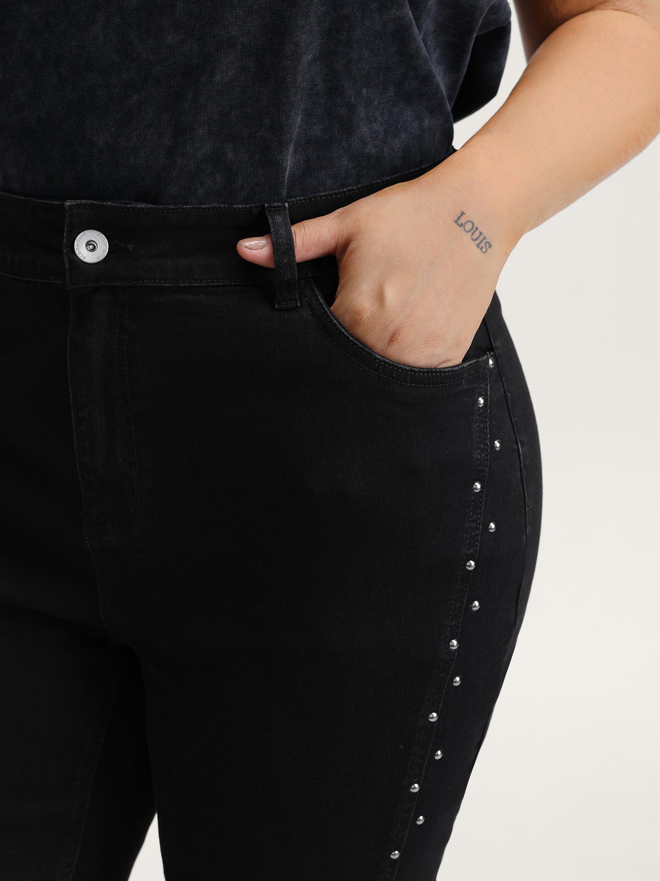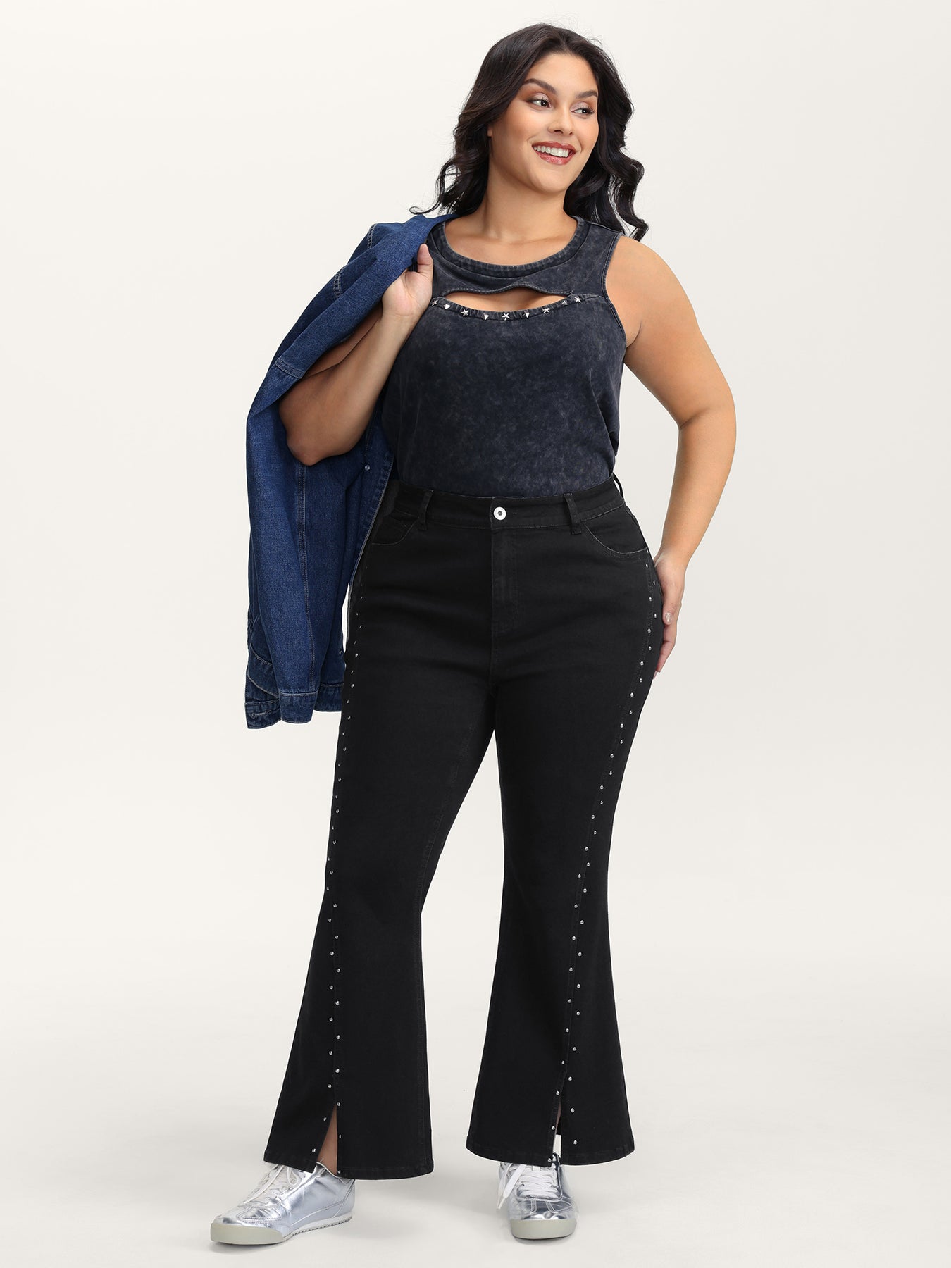 Rhinestone Mid-Rise Flared Hem Jeans