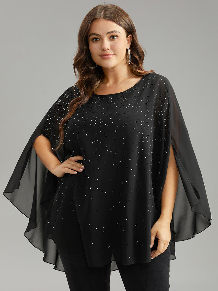 Chiffon Rhinestone Split Dolman Sleeve Blouse