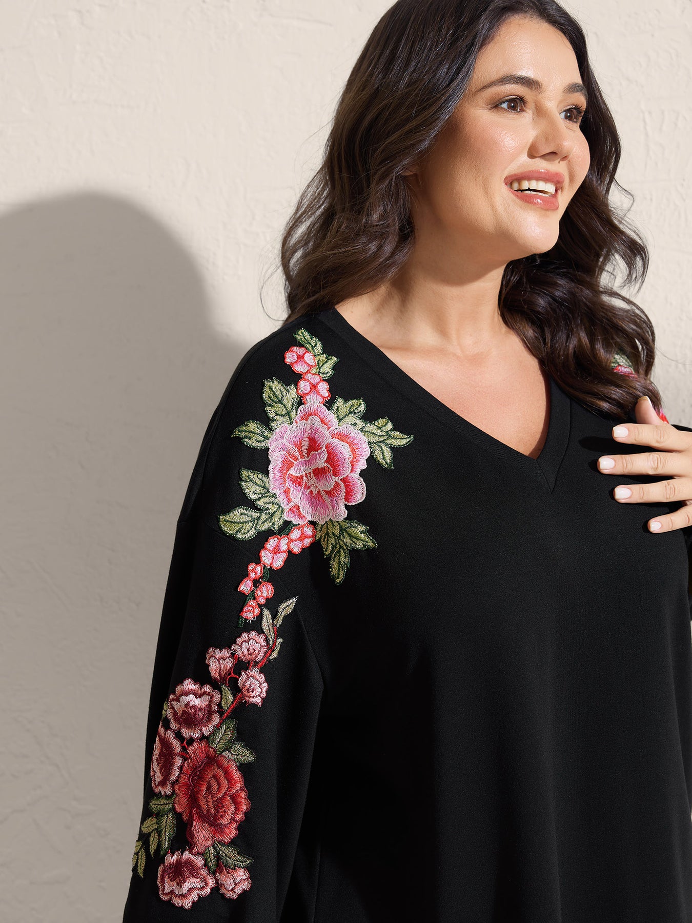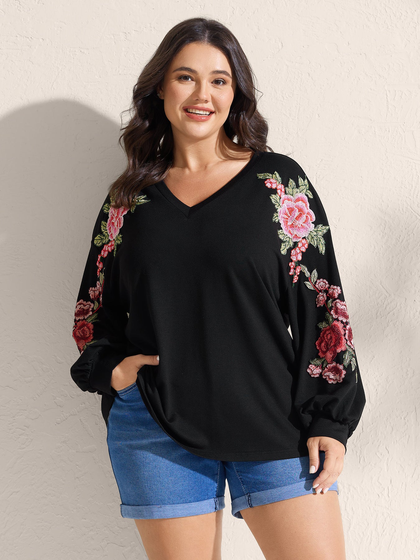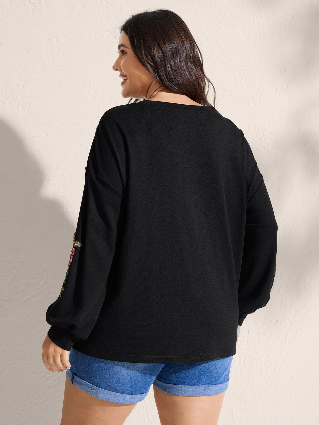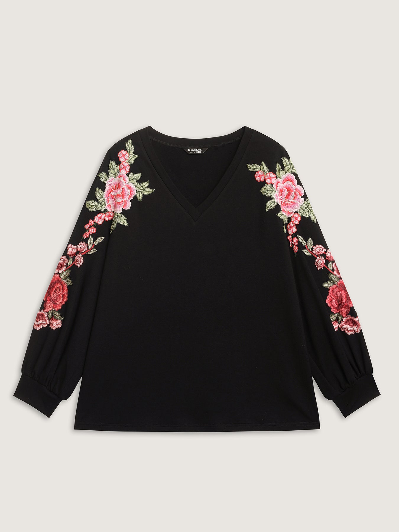 Rosy Embroidered Puffy Sleeve Sweatshirt