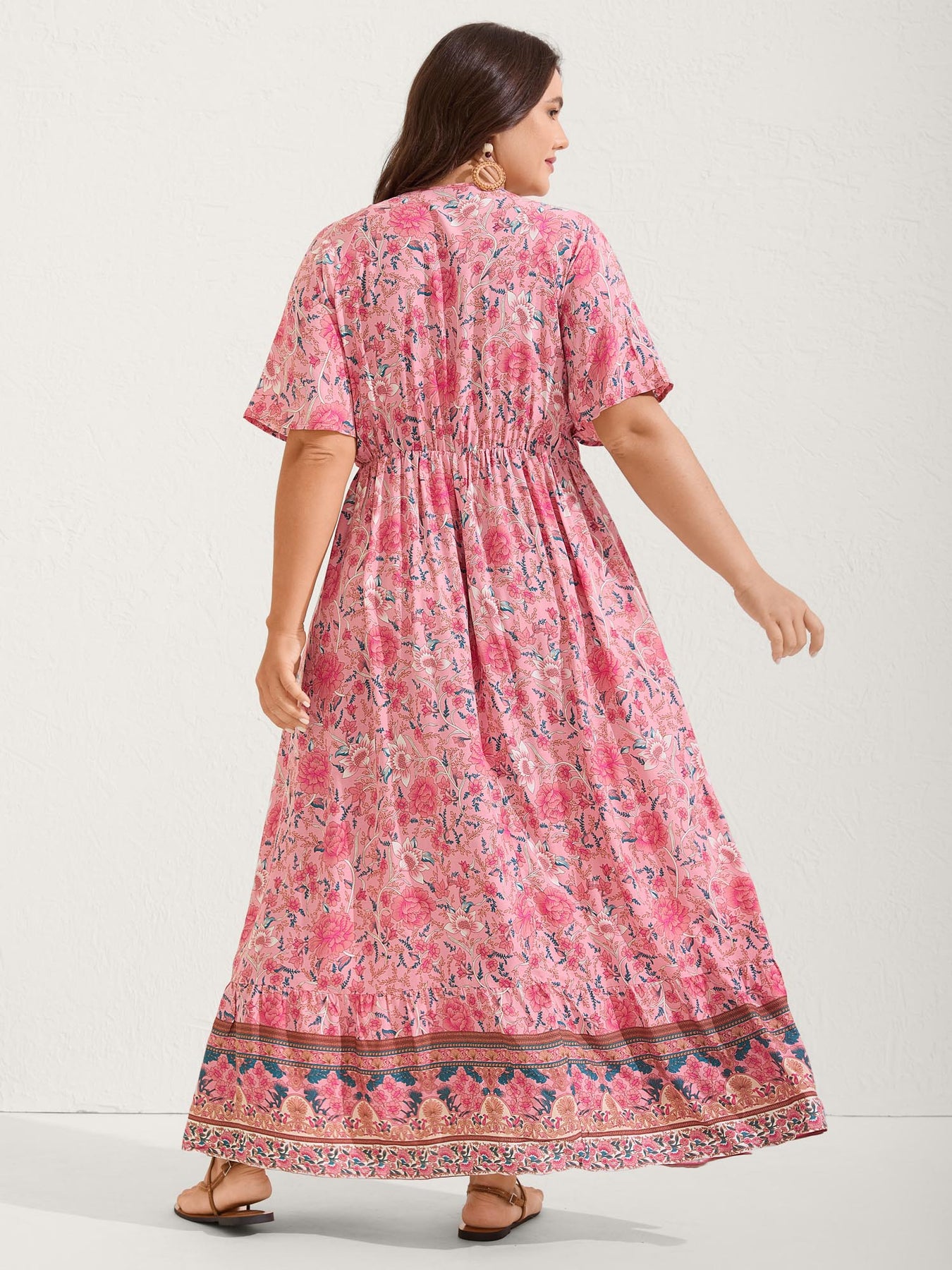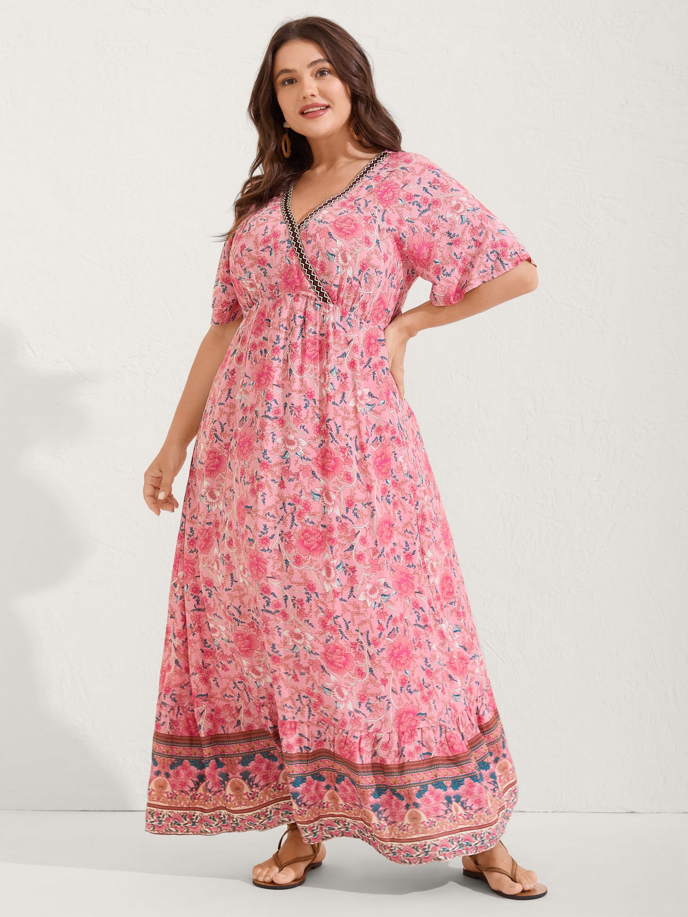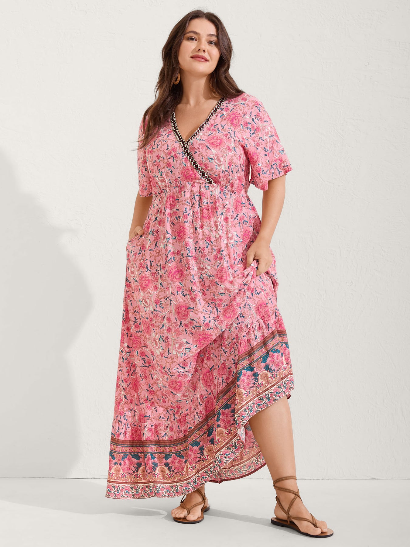 Rosy Floral Print Lace Maxi Dress