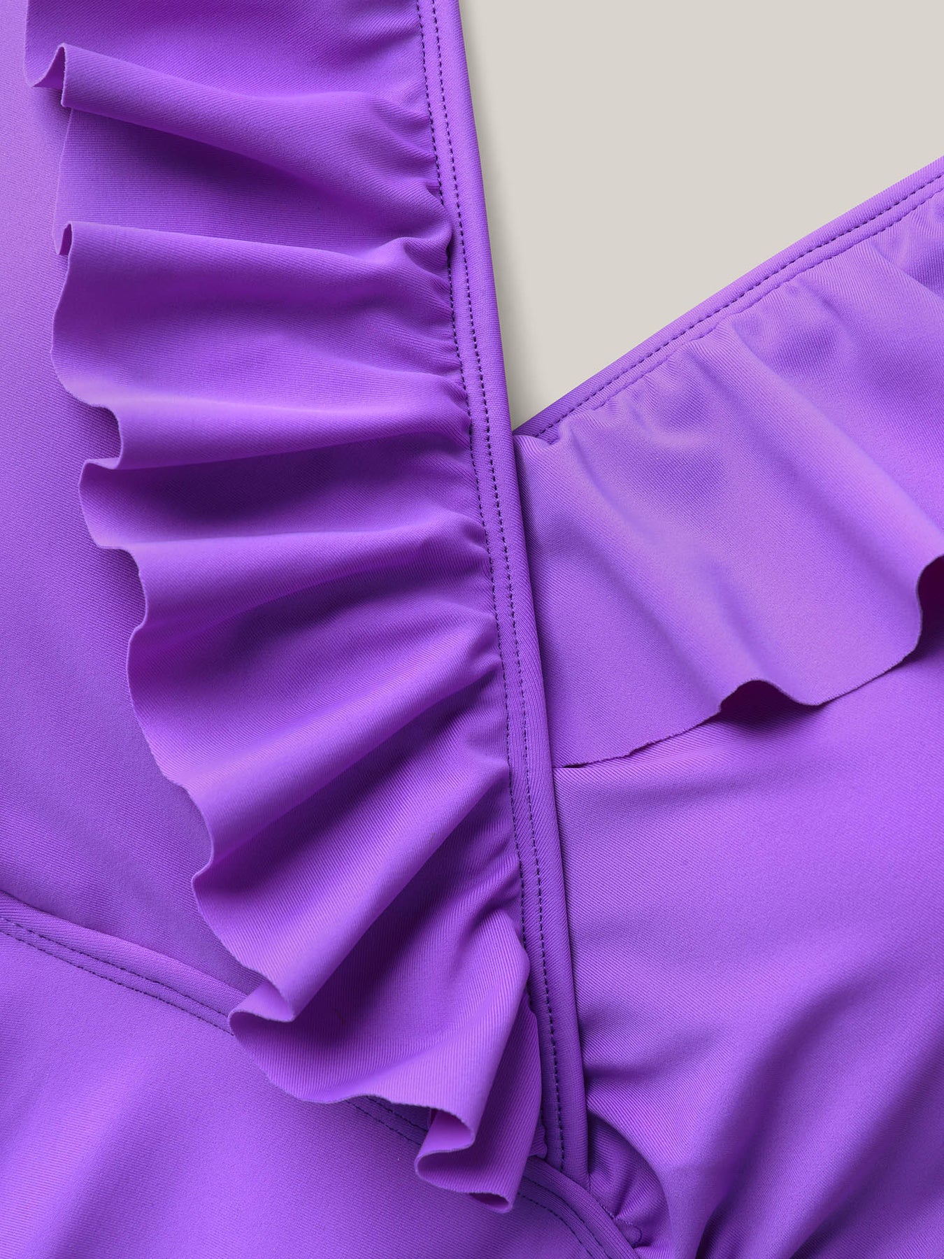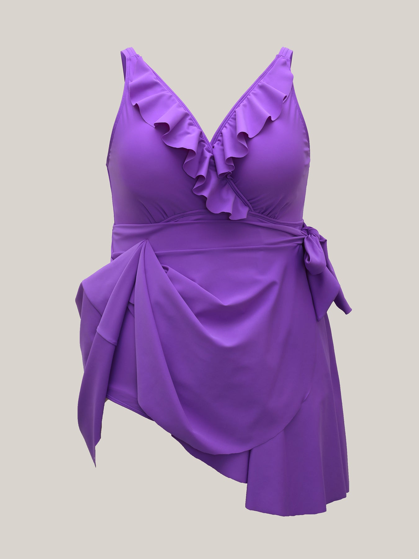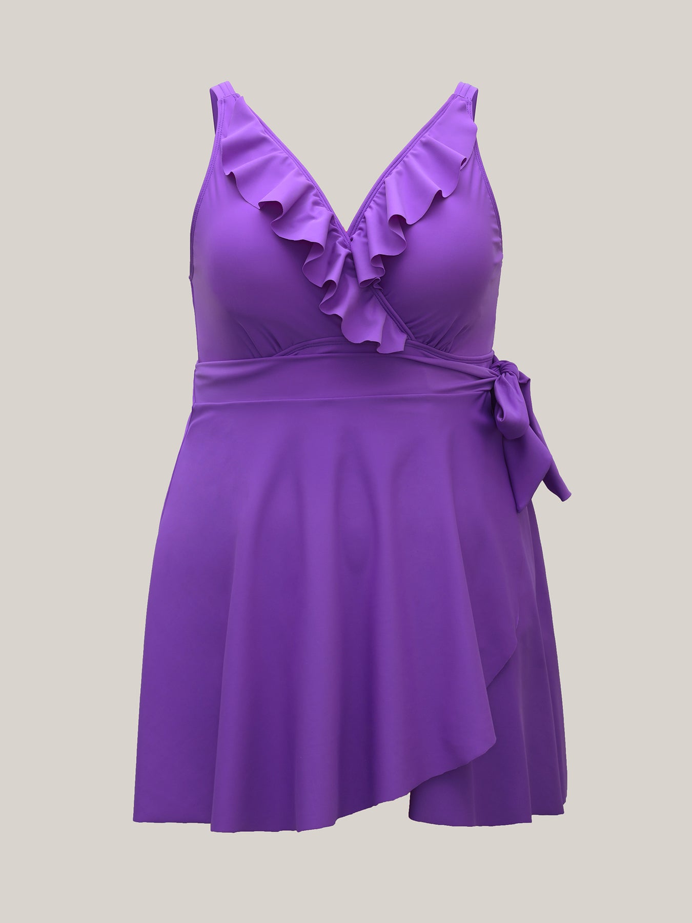 Ruffled Edge Waist-Tie Flared Swim Dress