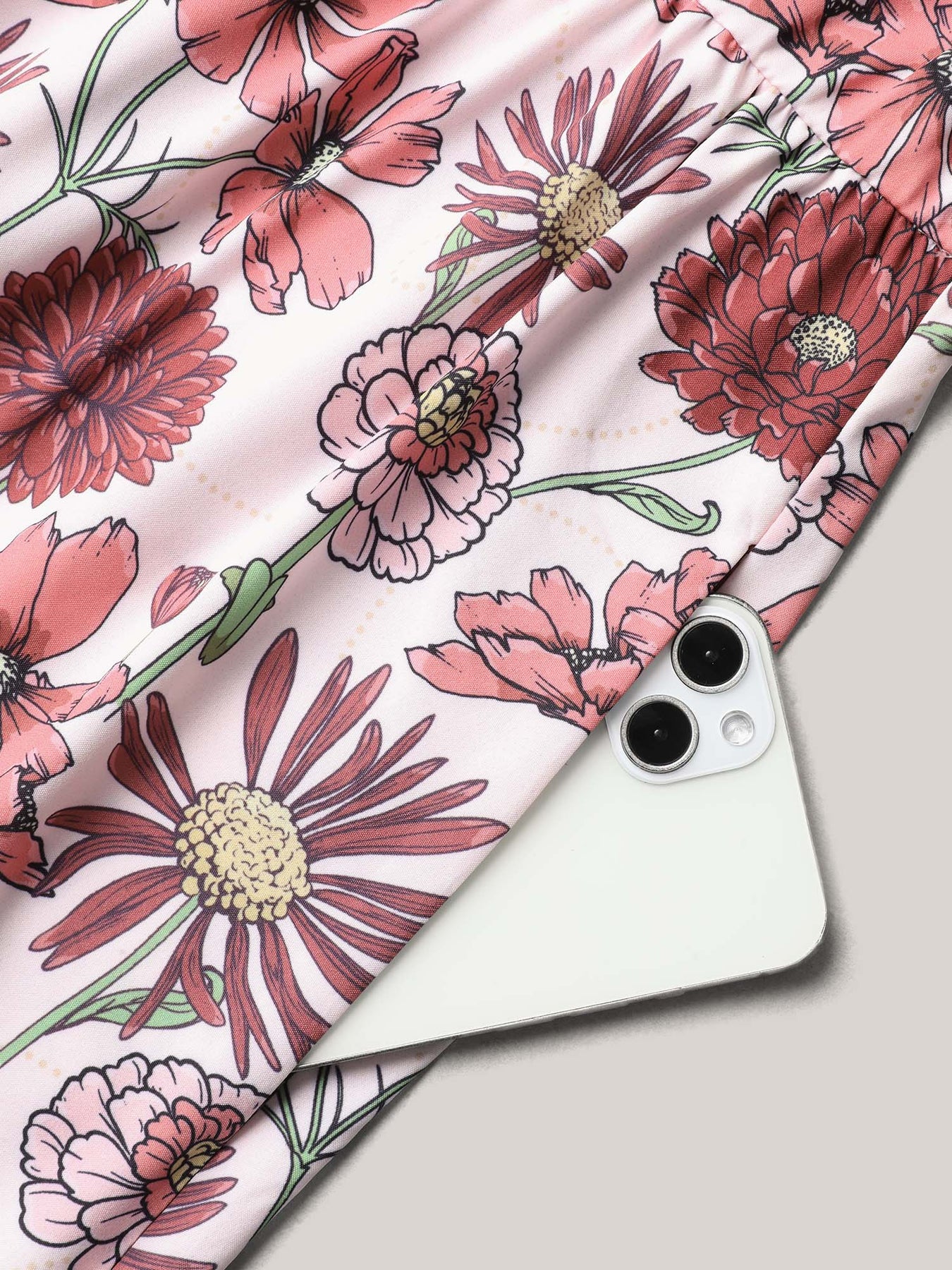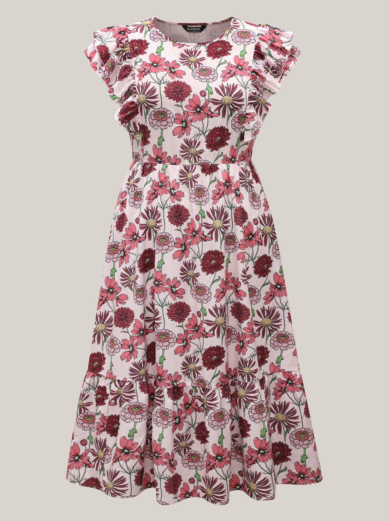 Ruffled Floral Print Stretchy-Waist Midi Dress