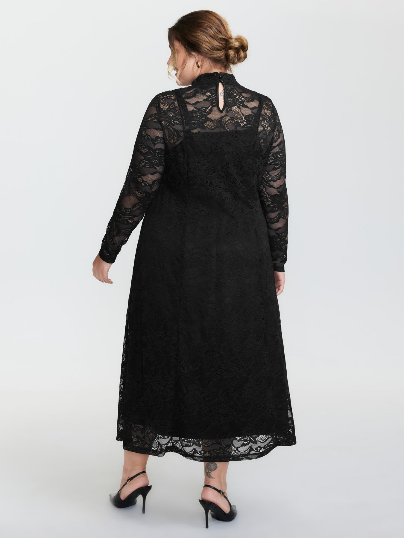 Satin Sheer Two-Piece Lace Maxi Dress