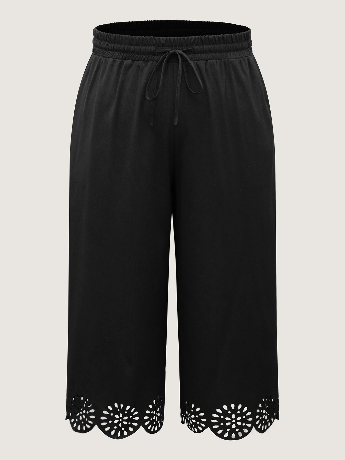 Scalloped Hem Laser Cut Wide-Leg Pants