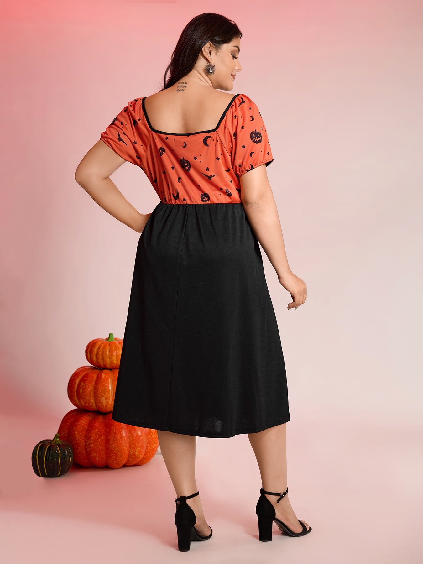 Scary Halloween Print Colorblock Midi Dress